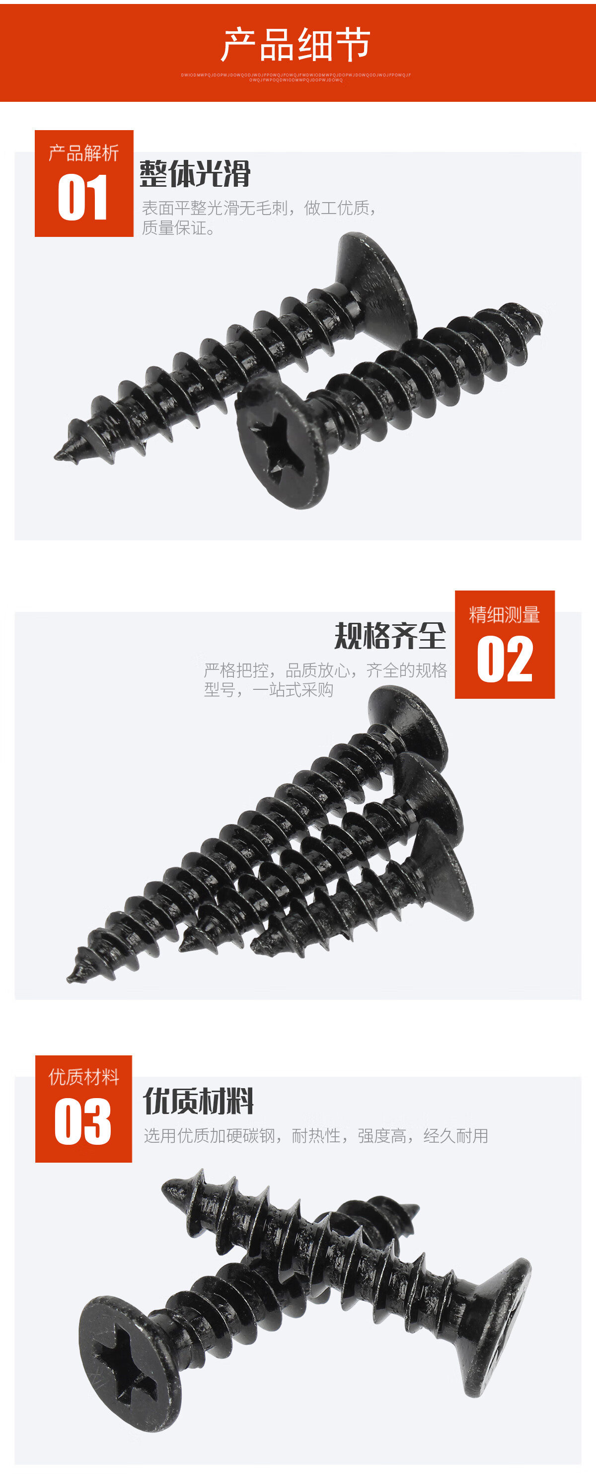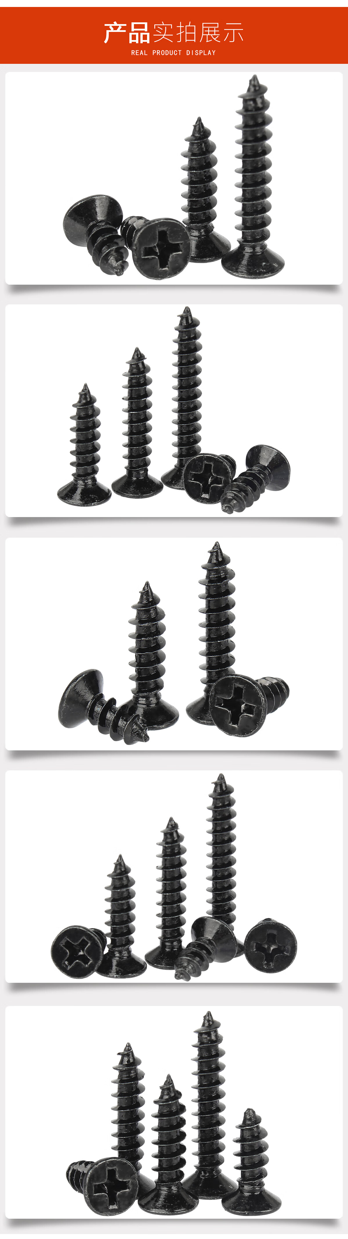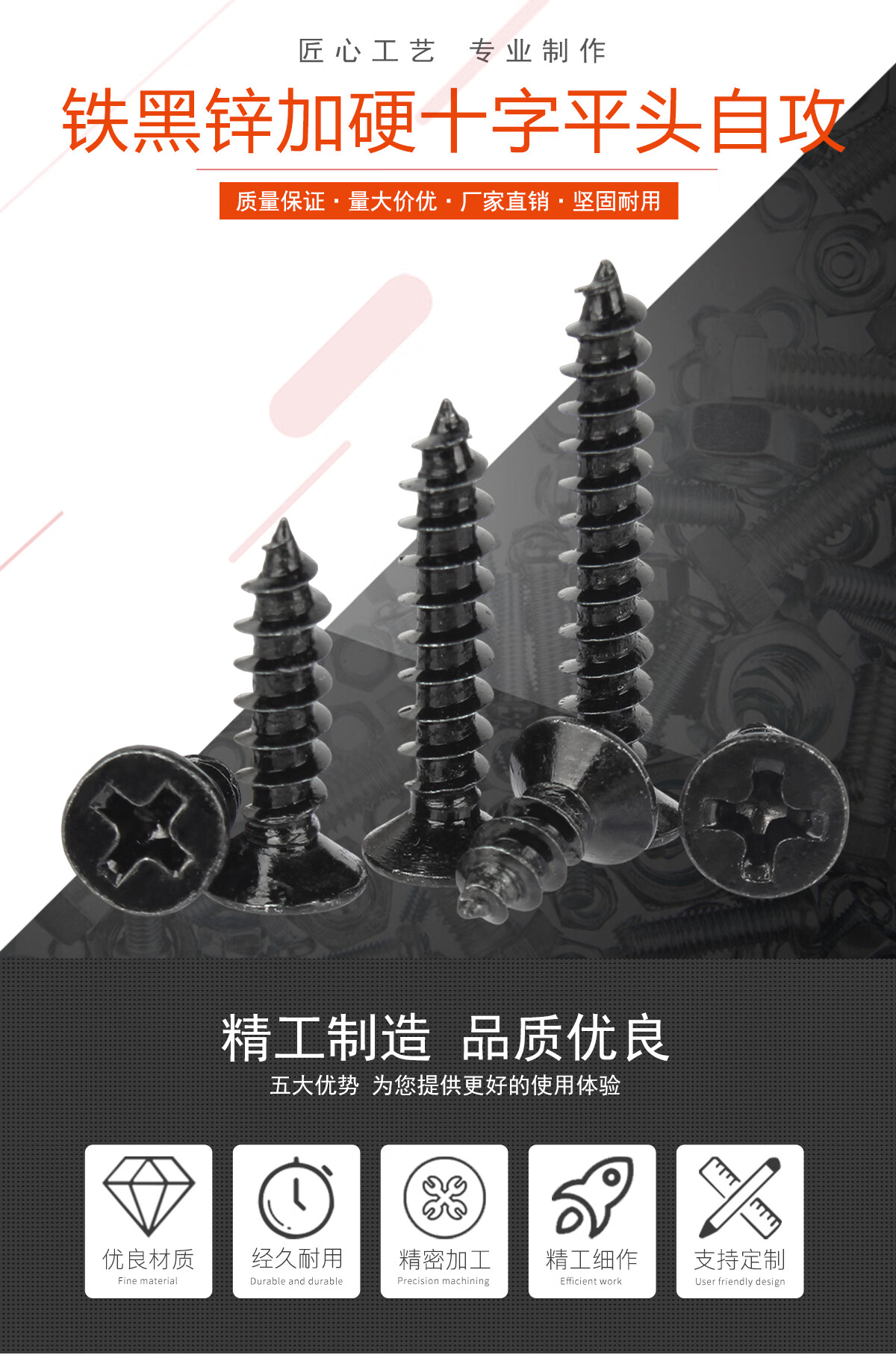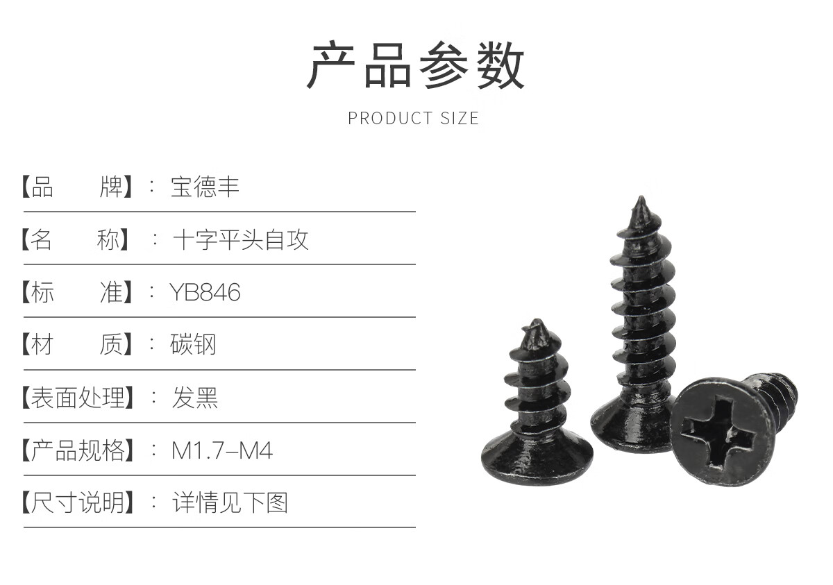 宝德丰KA铁加硬黑色十字平头自攻螺丝沉头小螺钉M1M1.2M1.7M2M2.6M3M4mm M1.7x4头3.2[1000只]