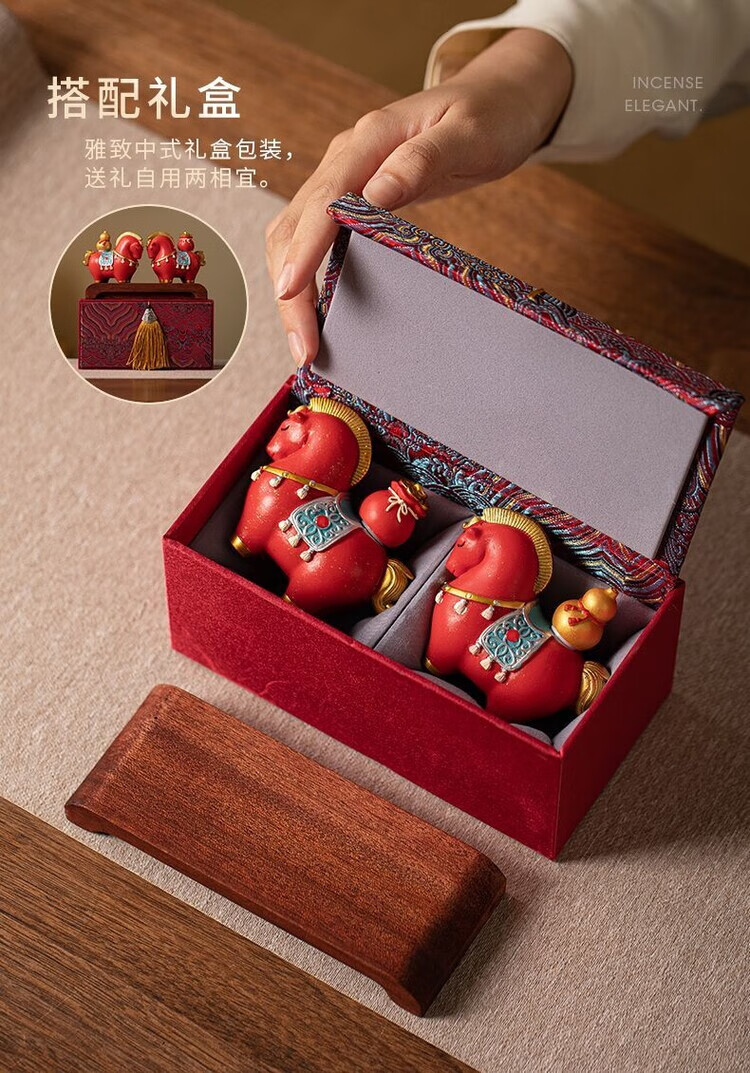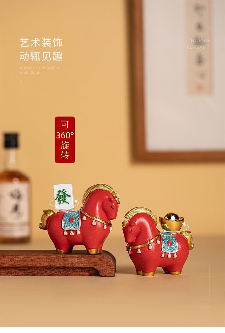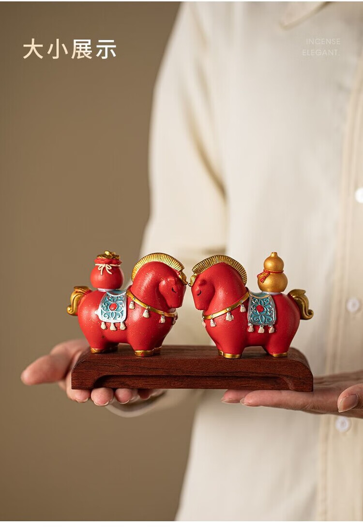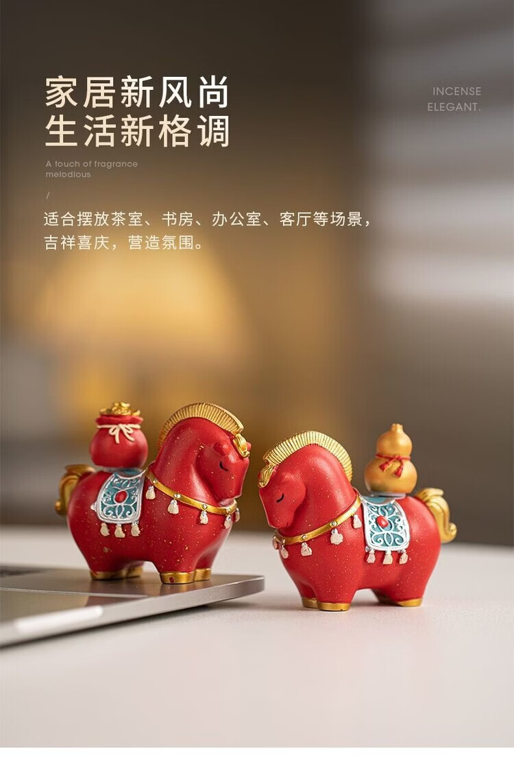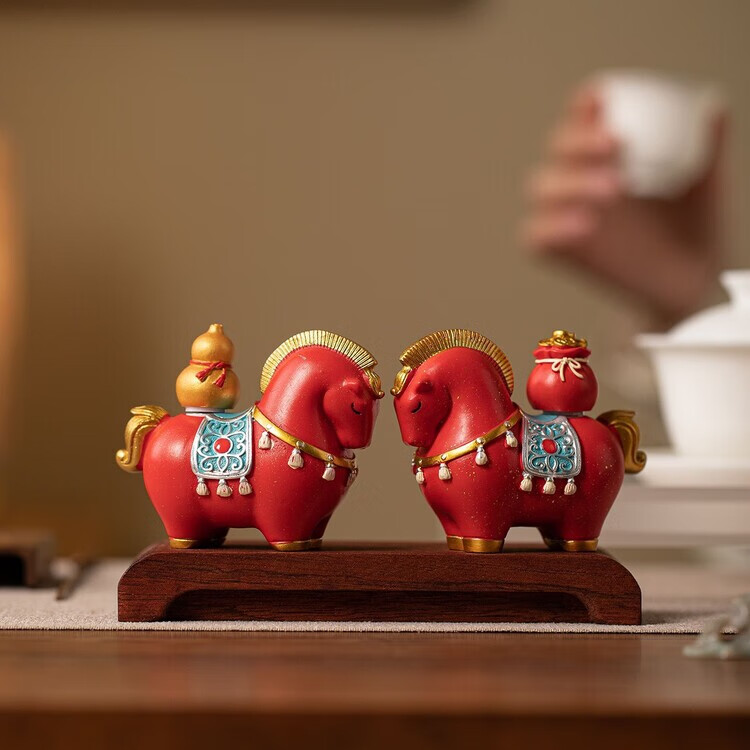 OYKTN国潮马上有钱招财茶宠摆件创意马上发财办公室桌面装饰开业送礼品 (红色)福-禄套装【简装不带底座】