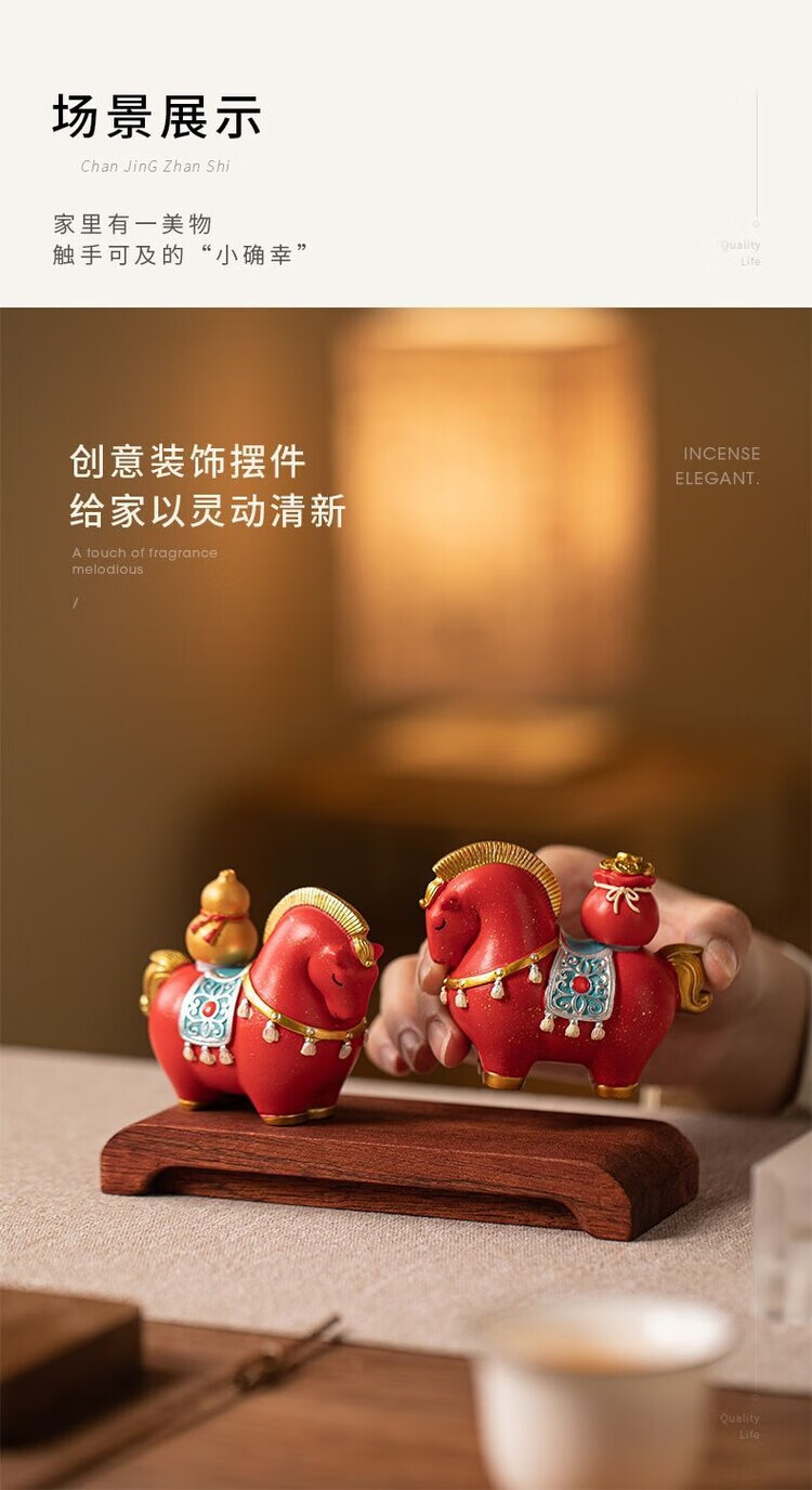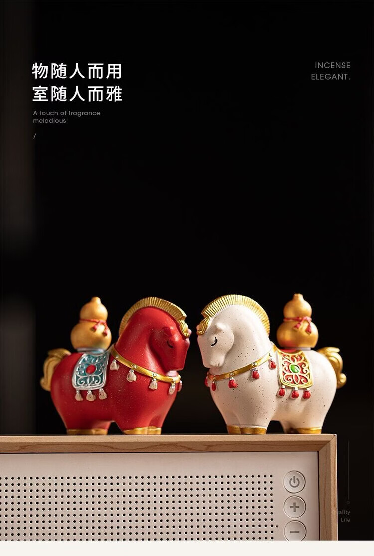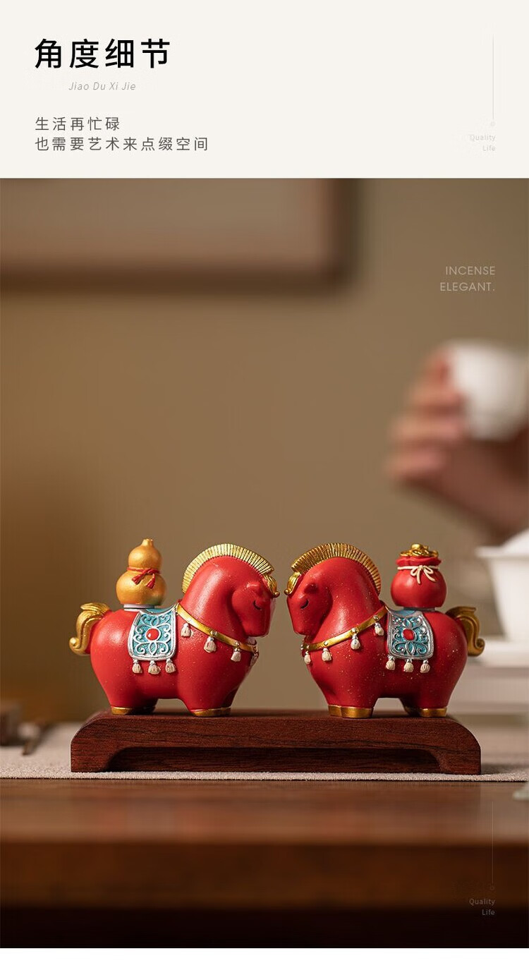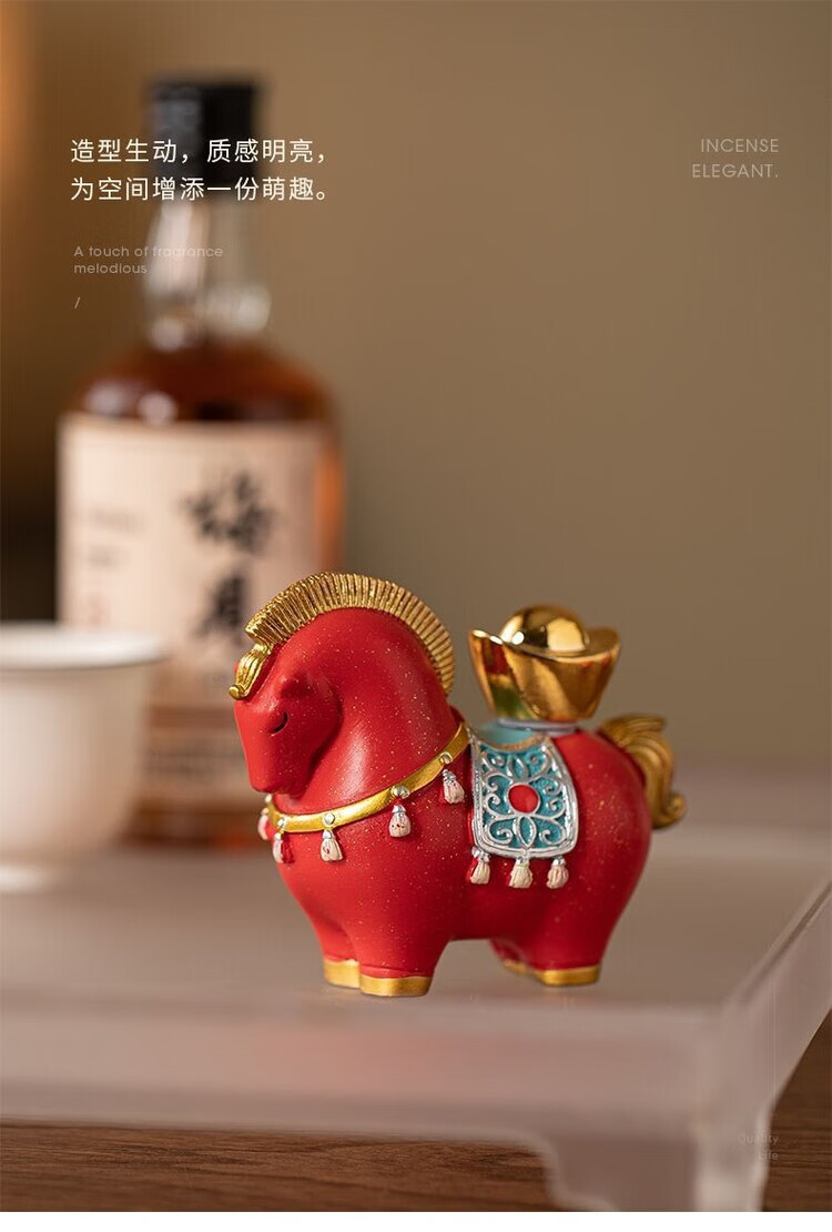 OYKTN国潮马上有钱招财茶宠摆件创意马上发财办公室桌面装饰开业送礼品 (红色)福-禄套装【简装不带底座】