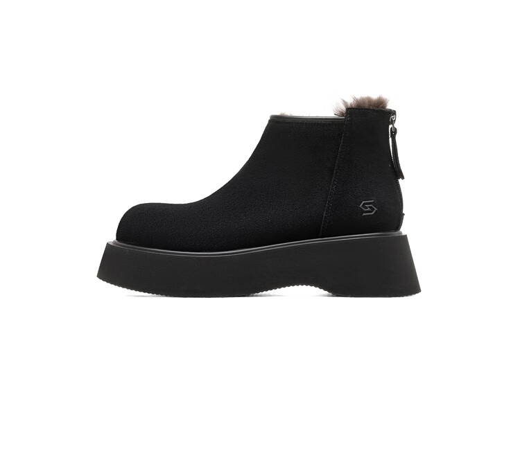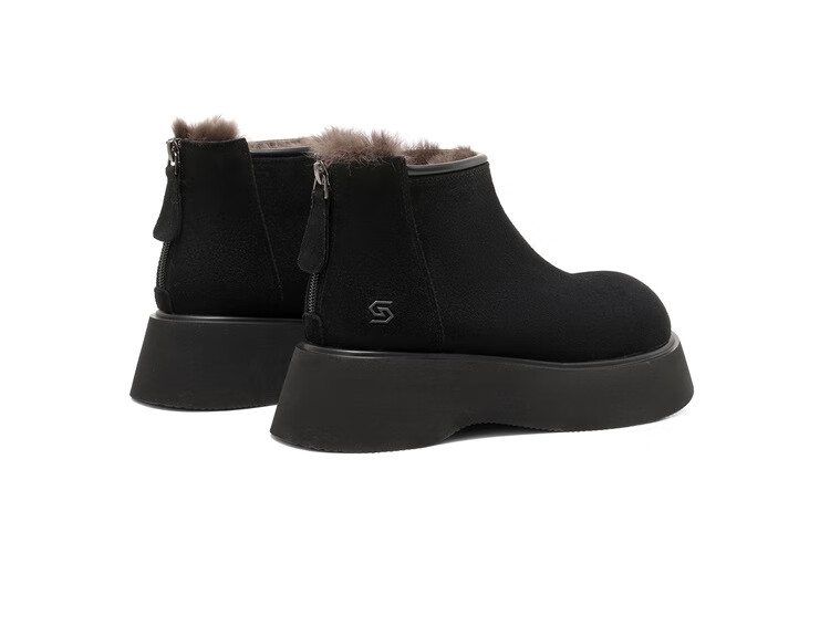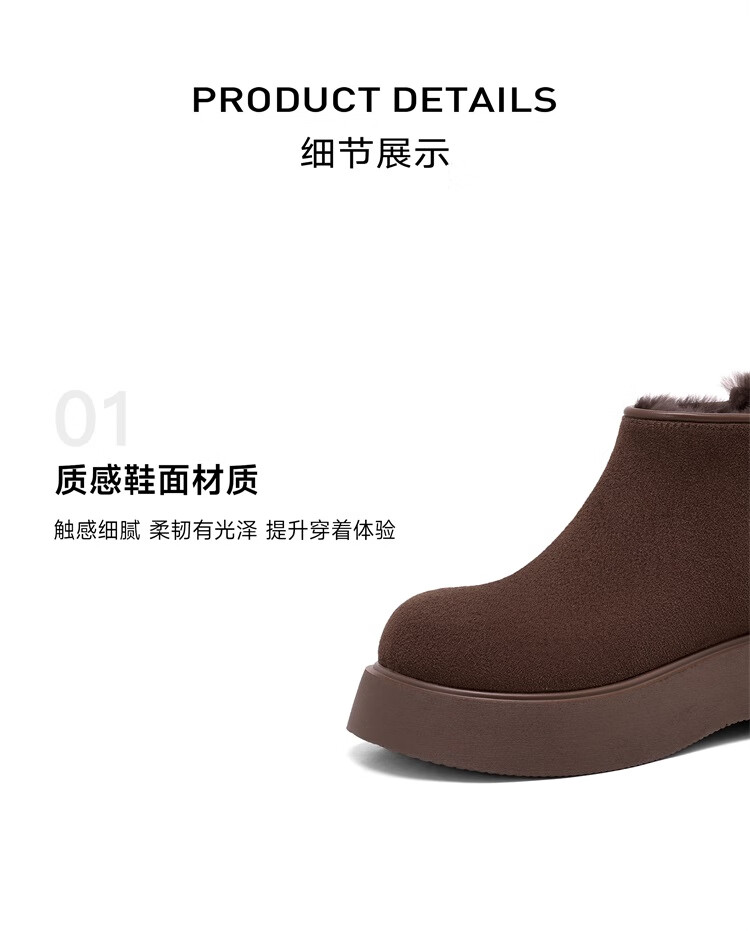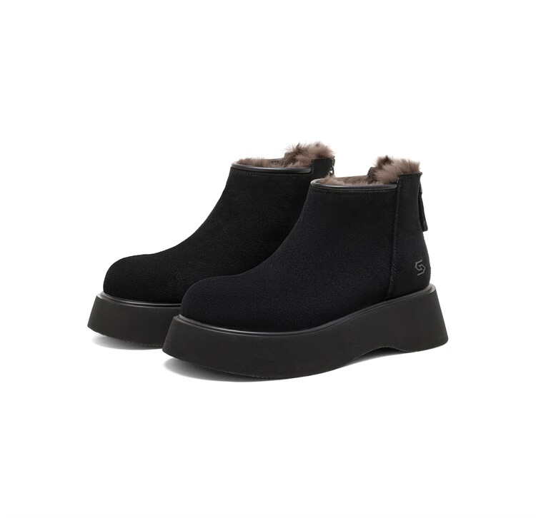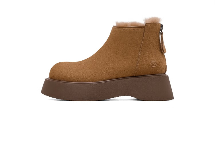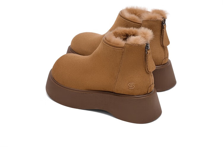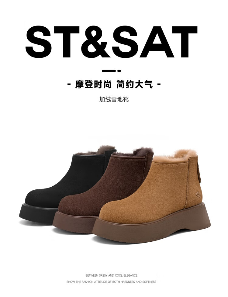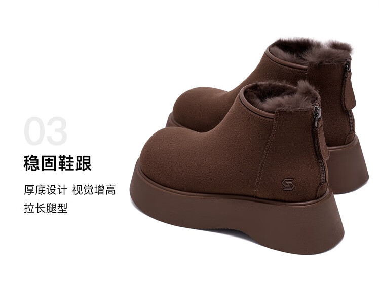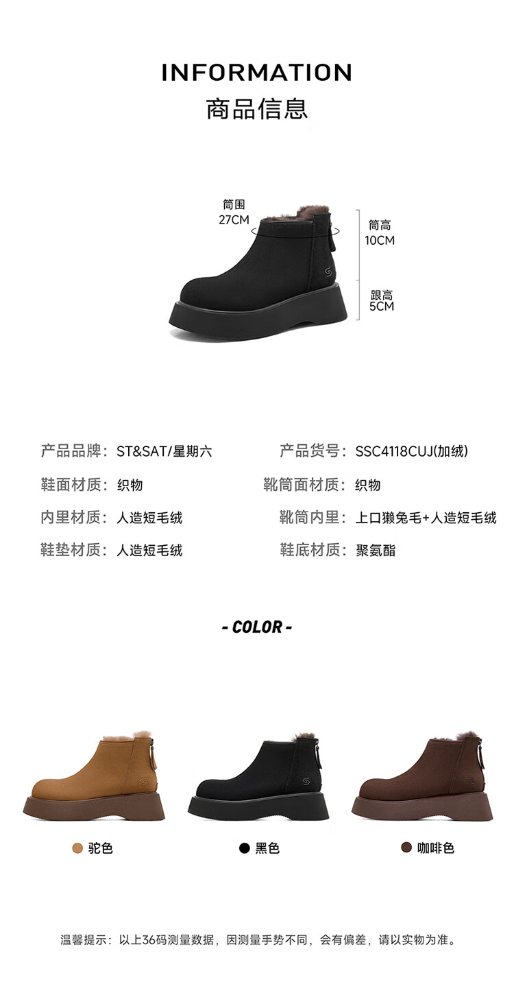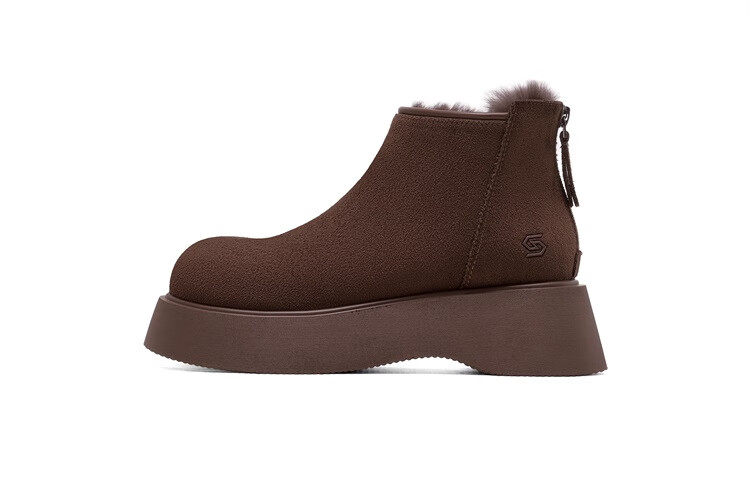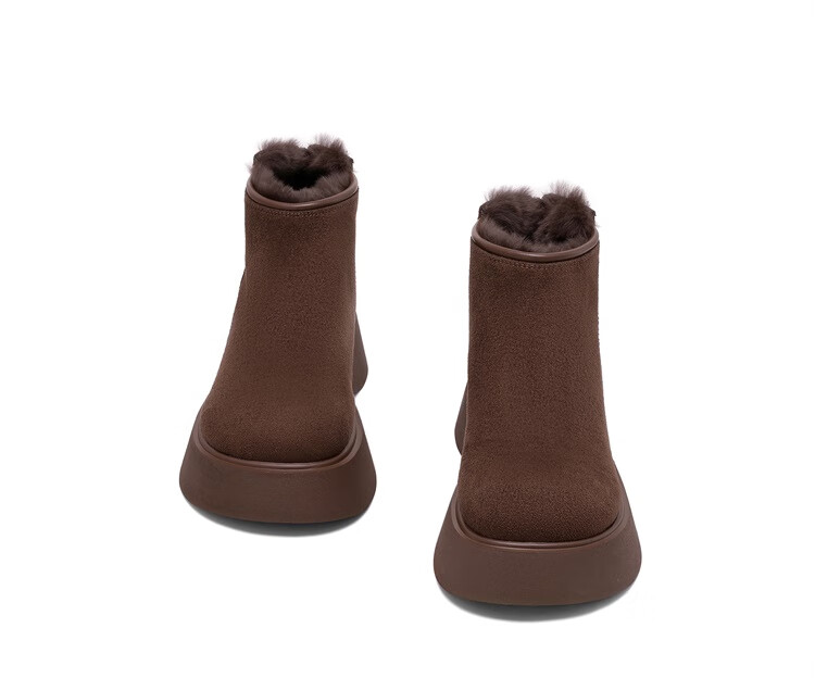 星期六(St&Sat)加绒厚底增高雪地靴2025秋冬新款时尚百搭保暖圆头短靴 咖啡色 36