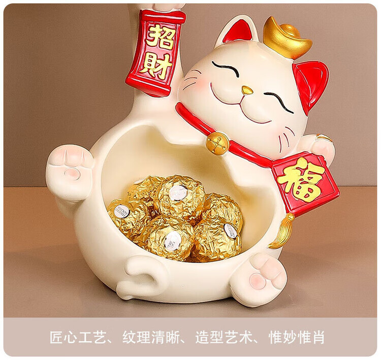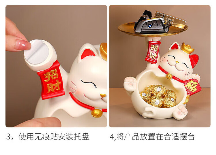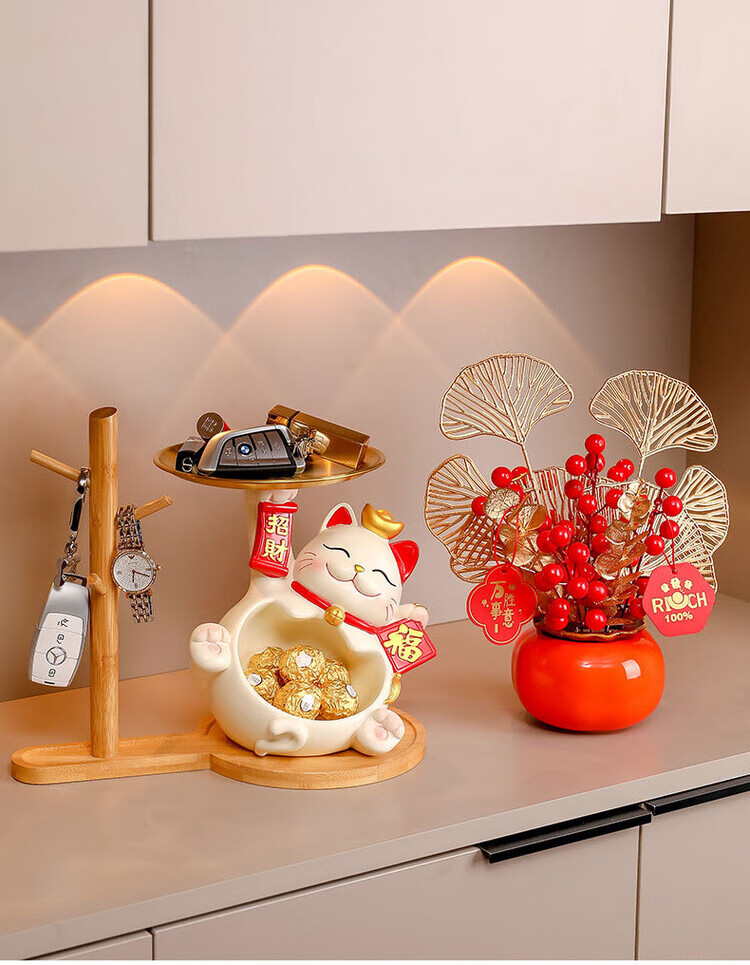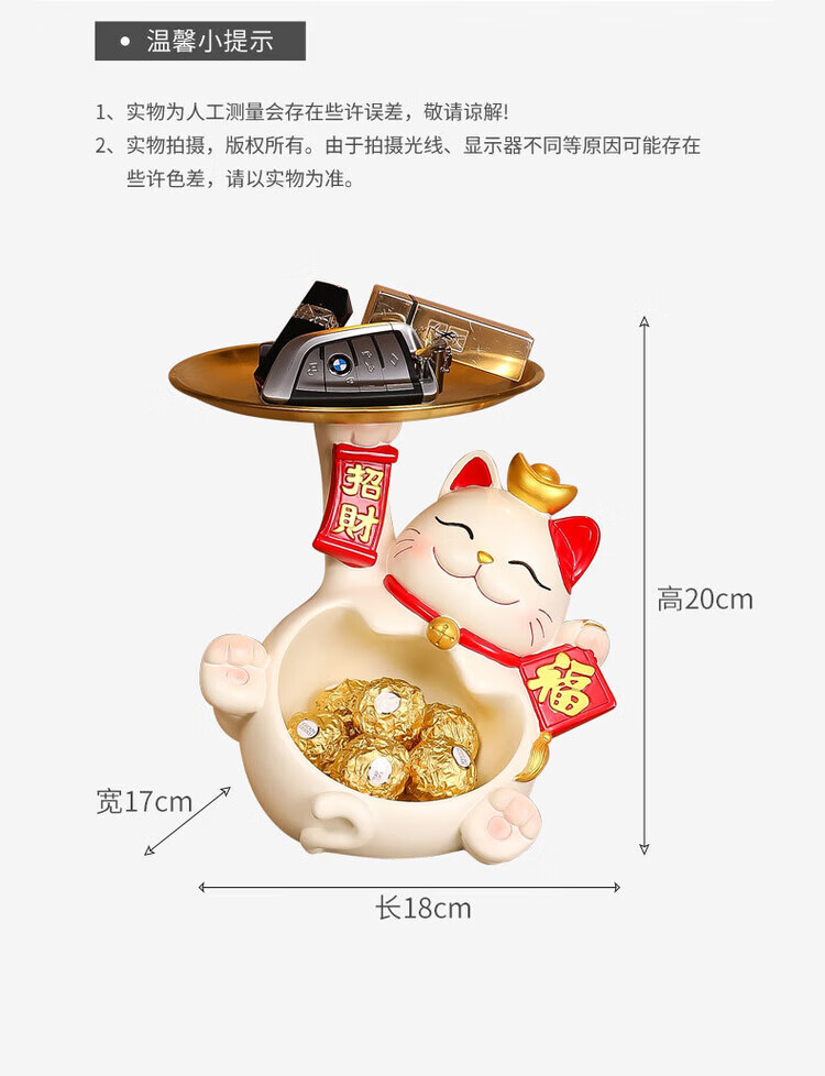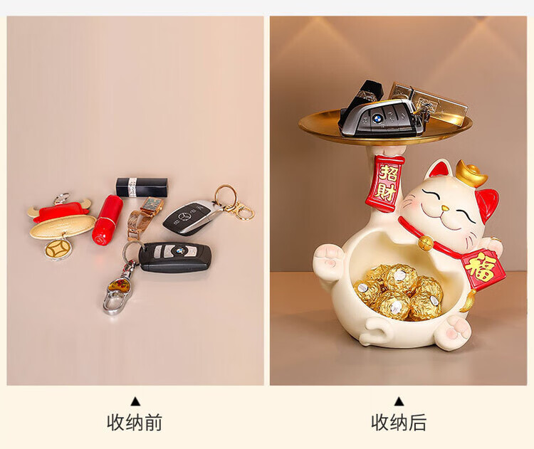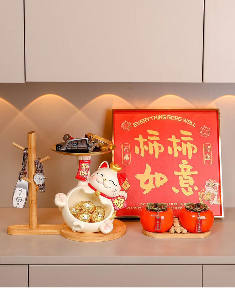 OYKTN招财猫入户摆件装饰创意乔迁新居礼物钥匙收纳托盘新款装饰礼品女 【两件套】托盘大肚收纳招财猫+葫芦木色架
