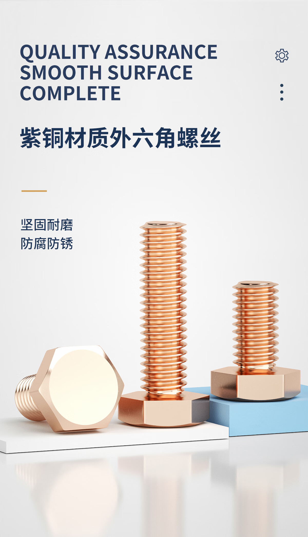 固万基(GUWANJI)国标T2纯紫铜外六角螺丝铜螺栓螺钉加长螺杆全M5M6M8M10M12M16mm M3x4[5只]