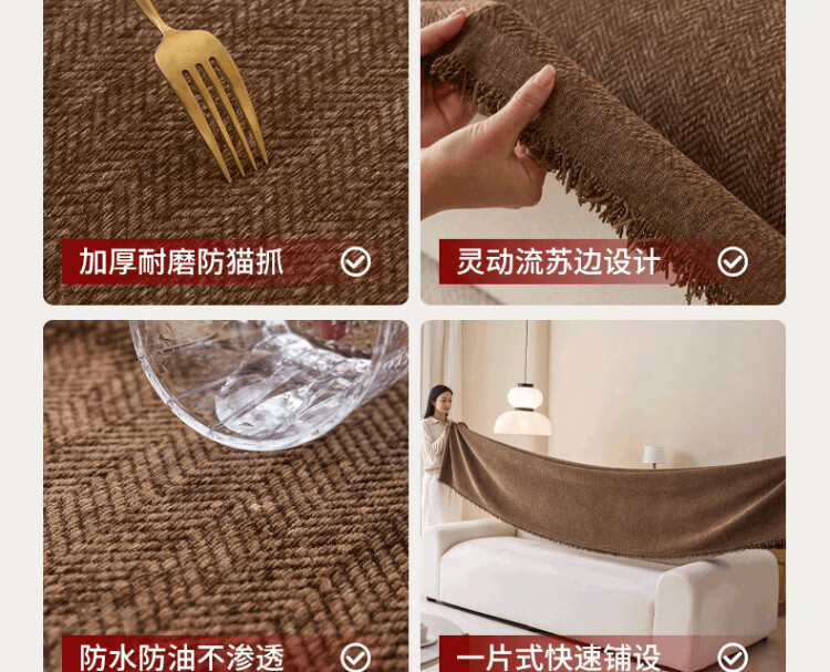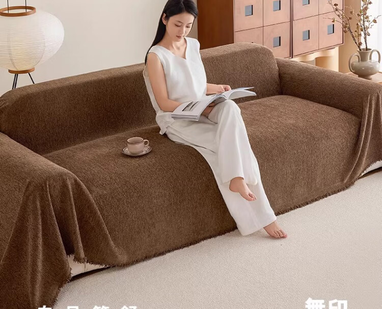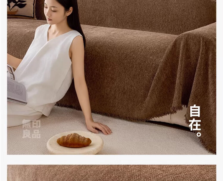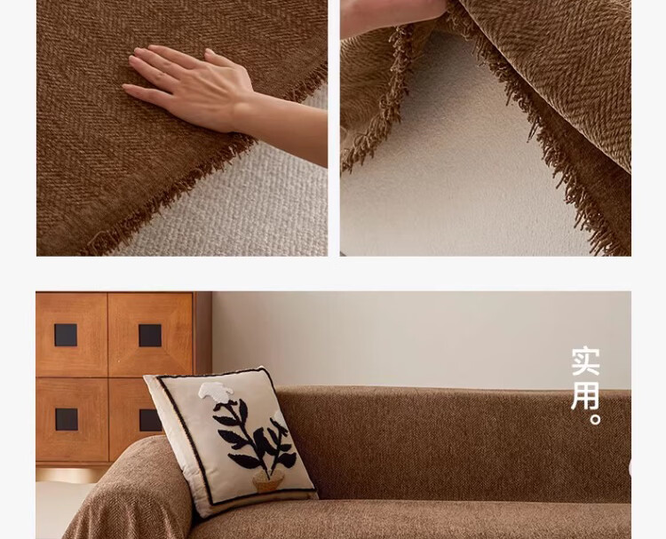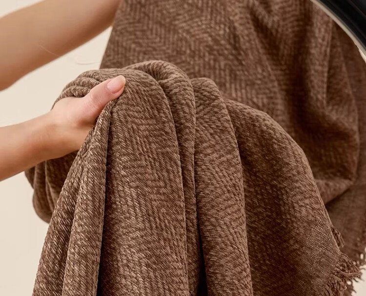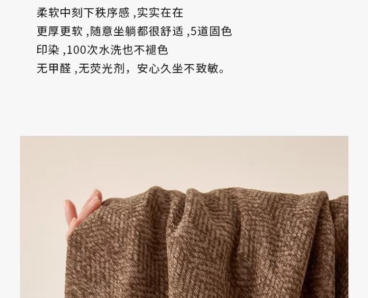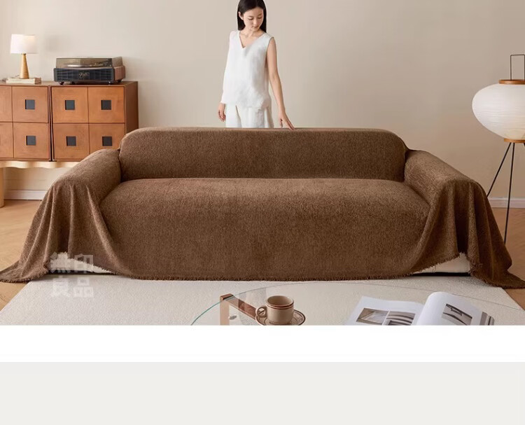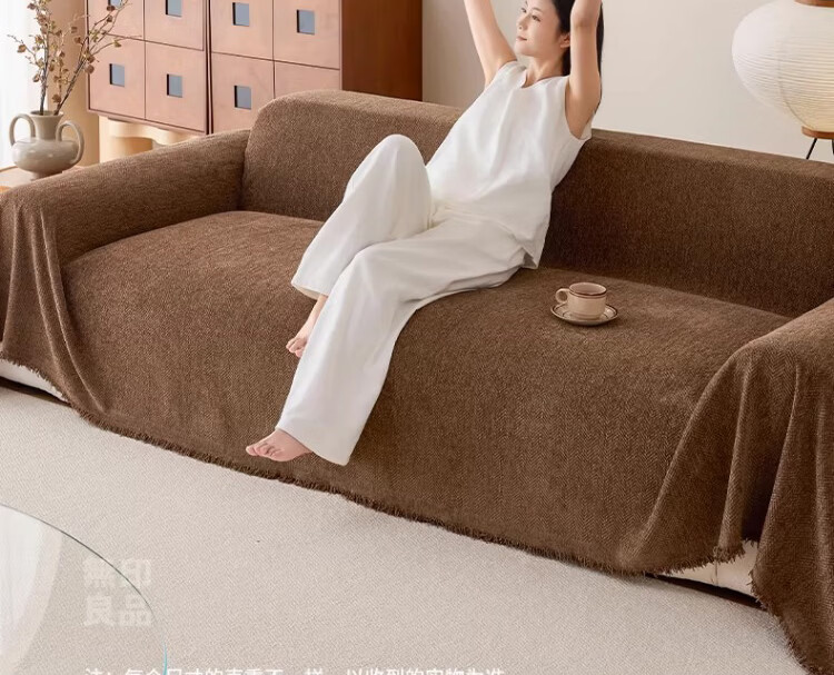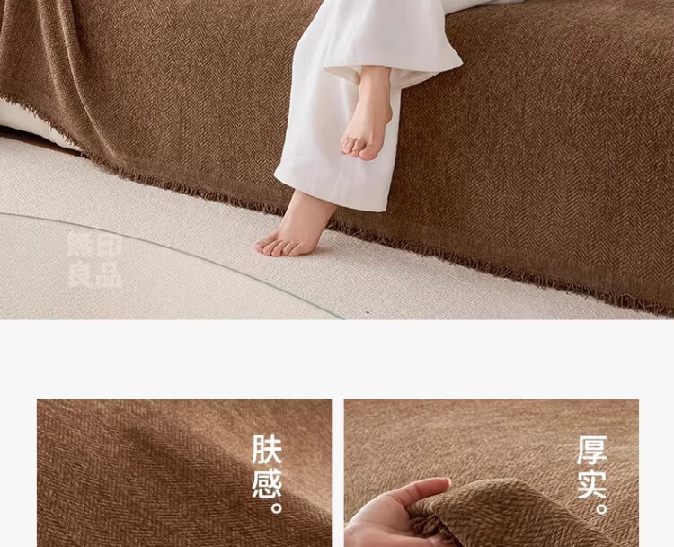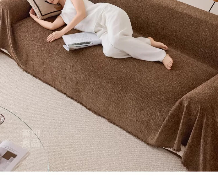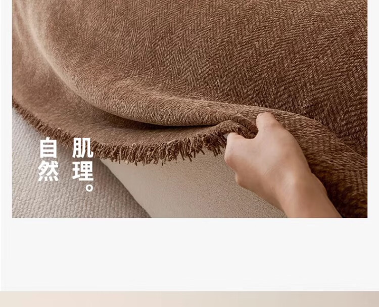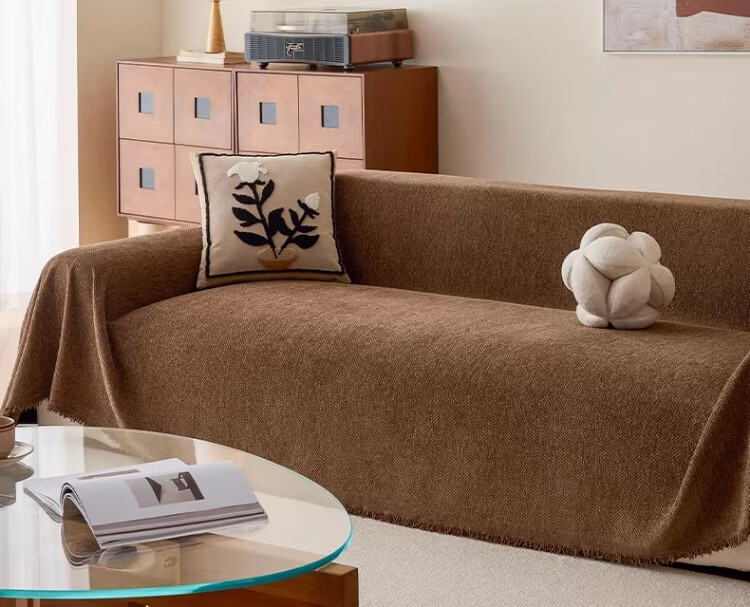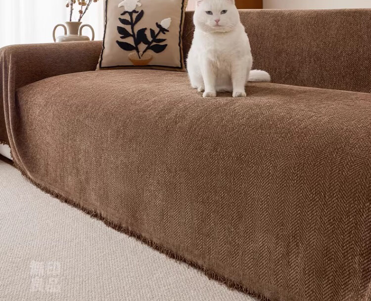 无印良品雪尼尔沙发盖布四季通用中古风沙发巾一整张全盖防猫抓沙发套罩毯 防水人字纹-摩卡棕【中古风必备 耐磨耐用 四季通用】 90*90cm 【适合脚踏】