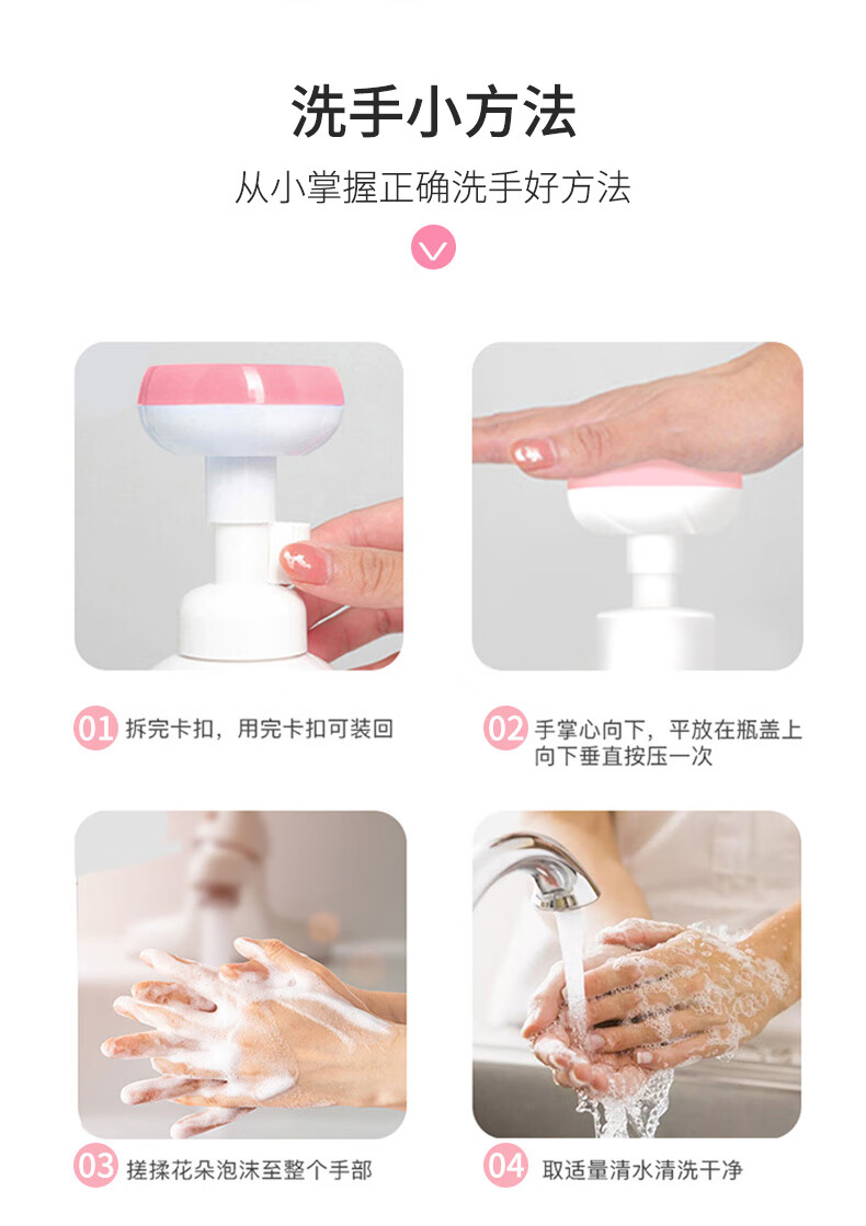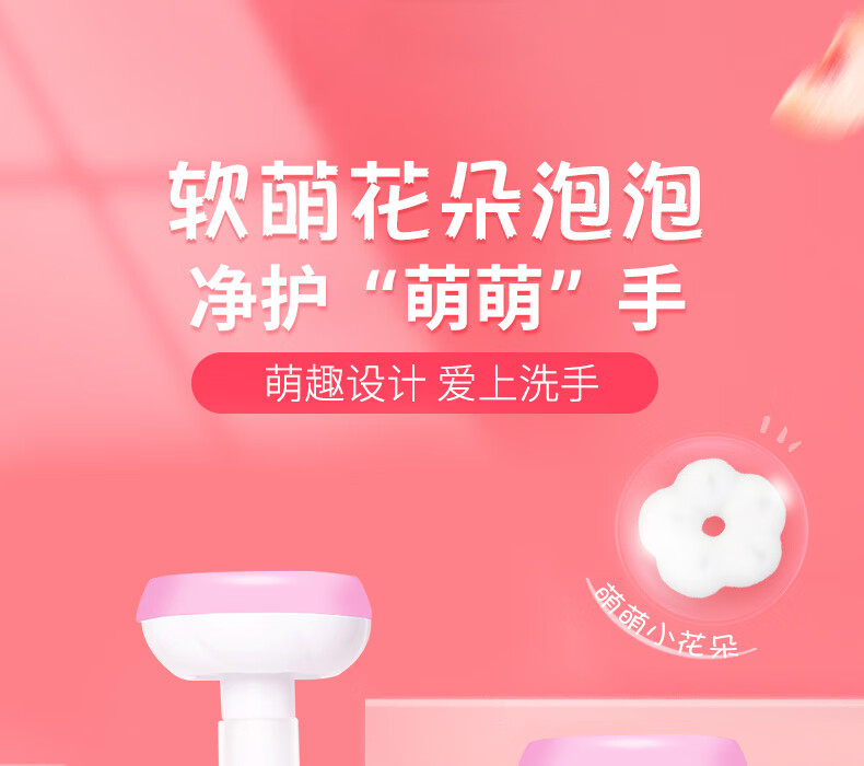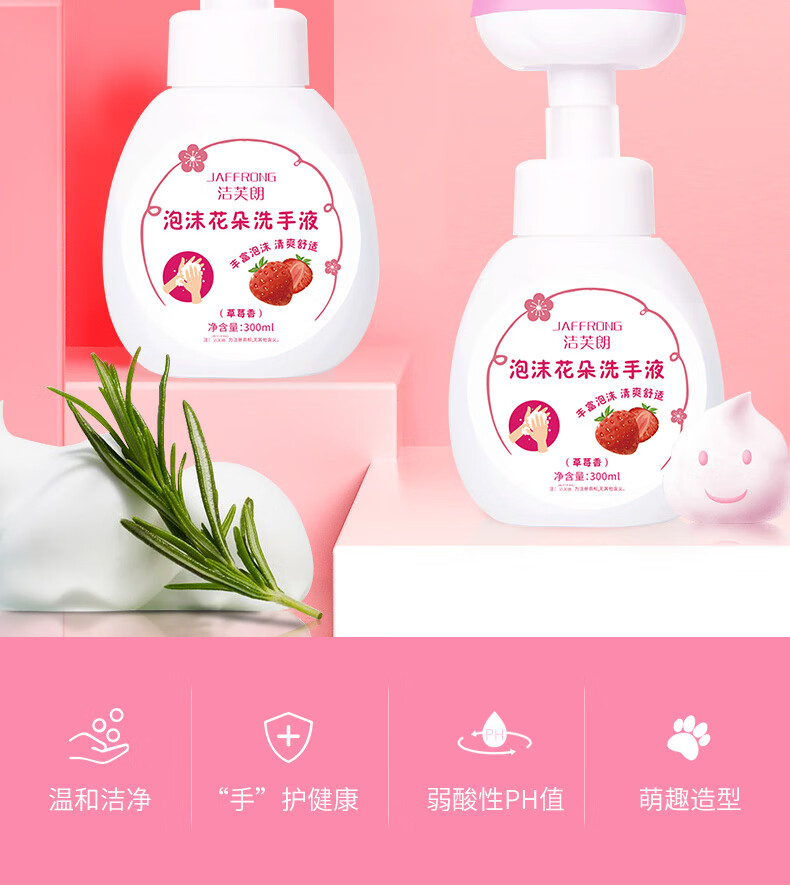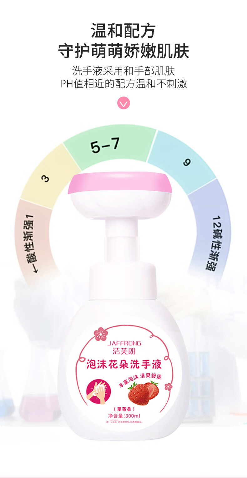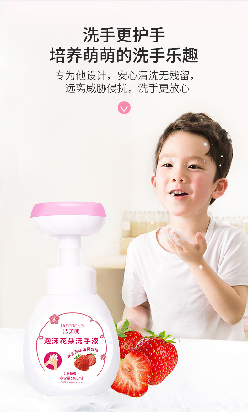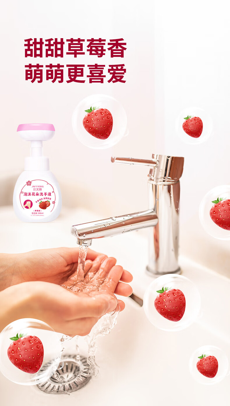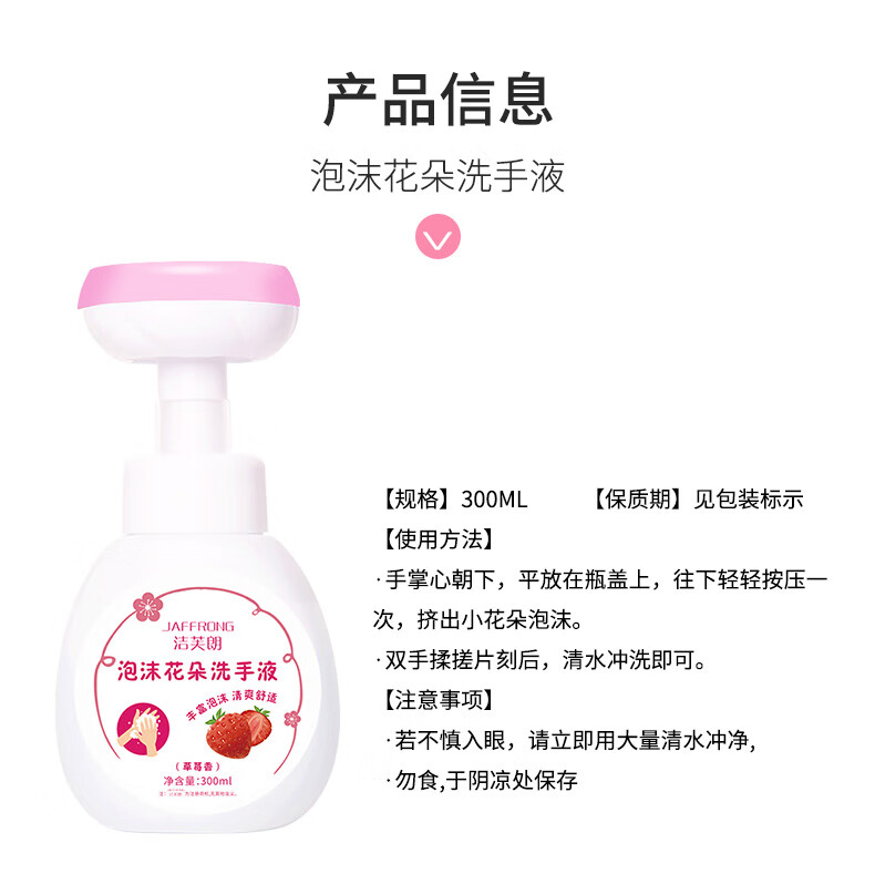 洁芙朗(JAFFRONG)花朵泡泡洗手液300ml 绵密泡沫花瓣形慕斯草莓香味成人家用通用