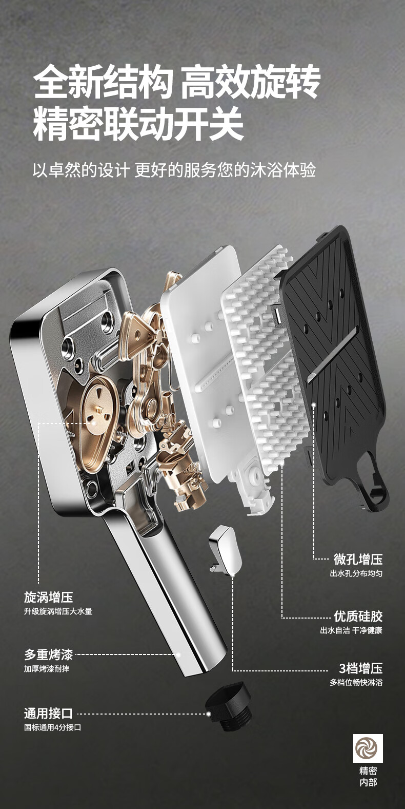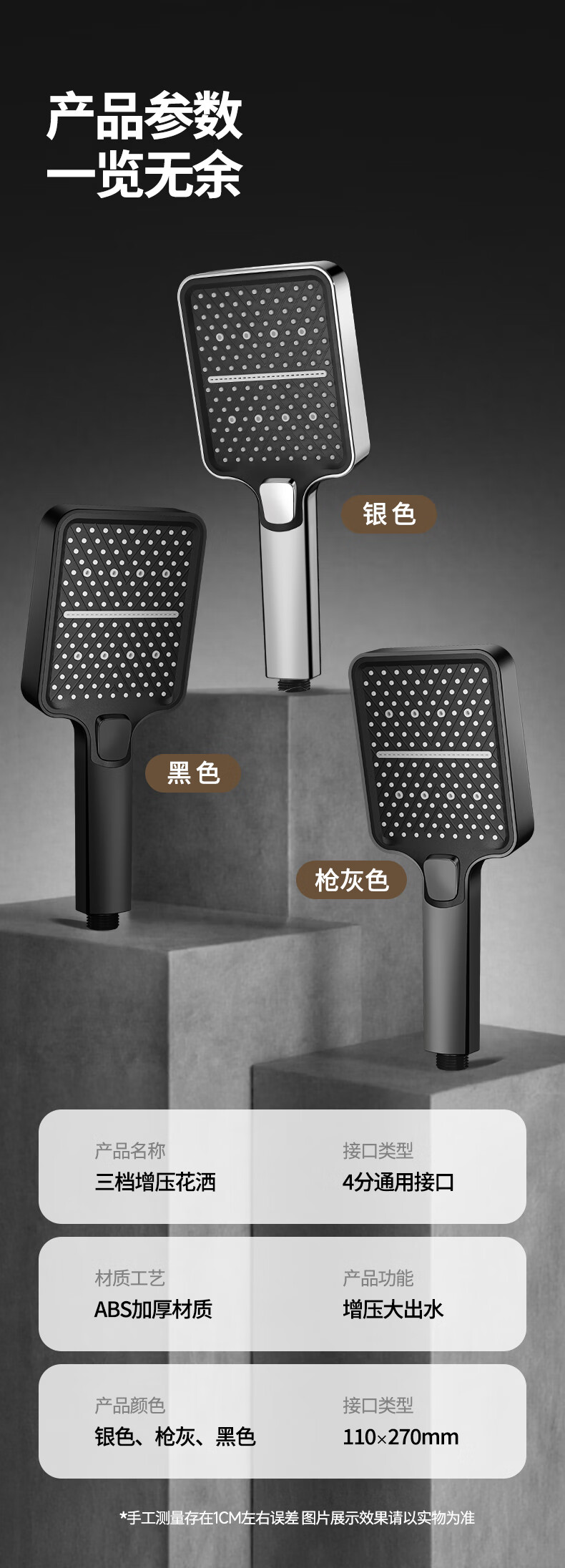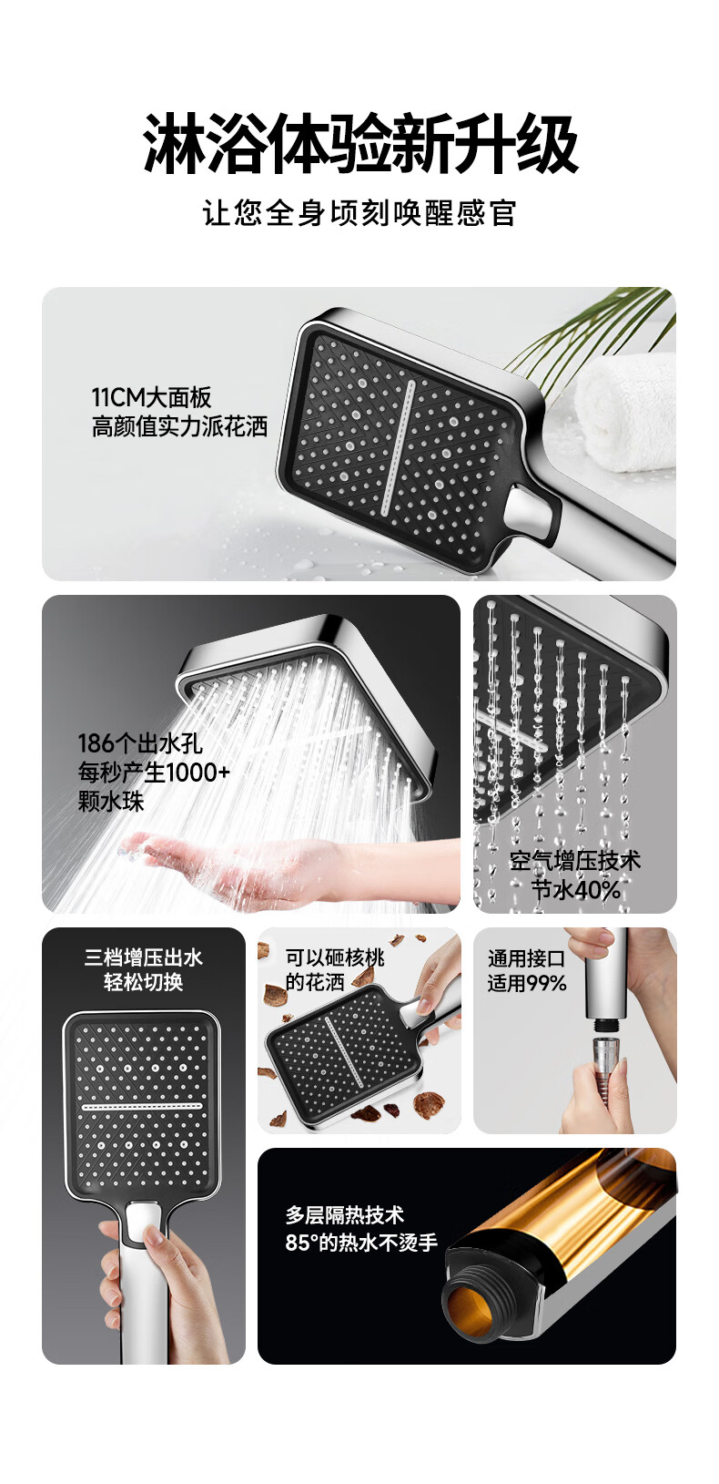 【甄选百货】通用淋浴花洒喷头增压大出水淋雨套装家用洗澡手持花 增压花洒【十年质保】 无规格