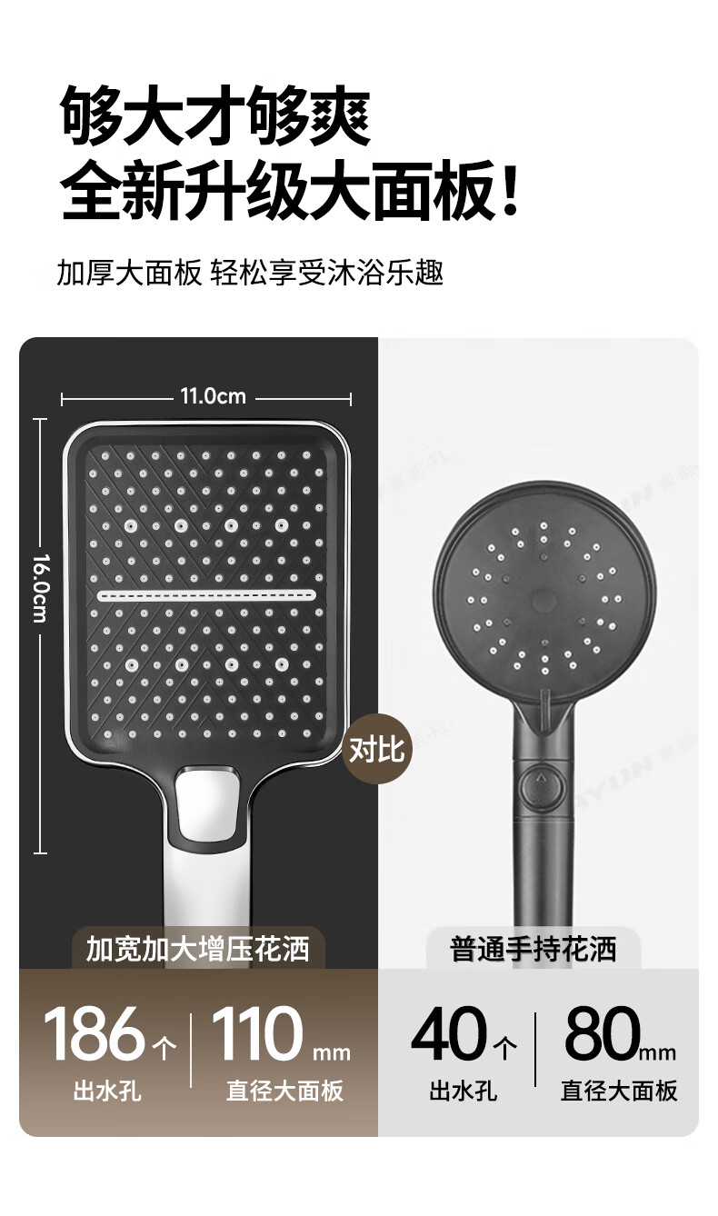 睦歌(MUGE)浴室增压花洒淋浴喷头大面板出水加压手持花洒头洗澡莲蓬头套装 增压单花洒大面板+1.5米防爆管