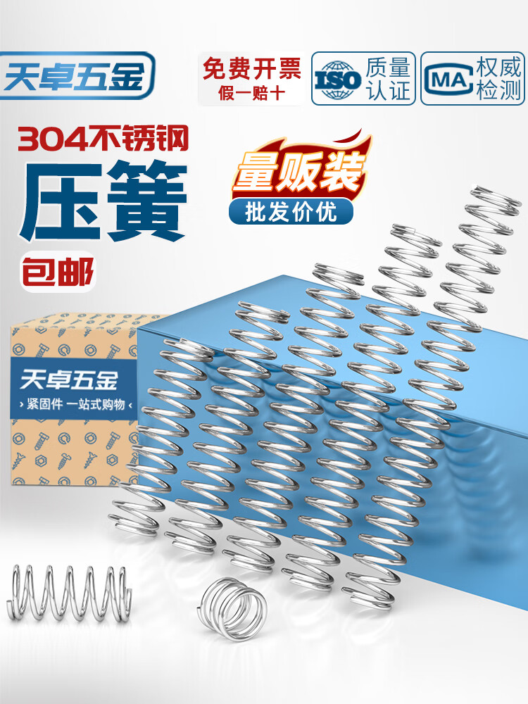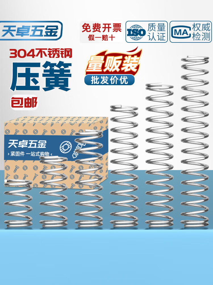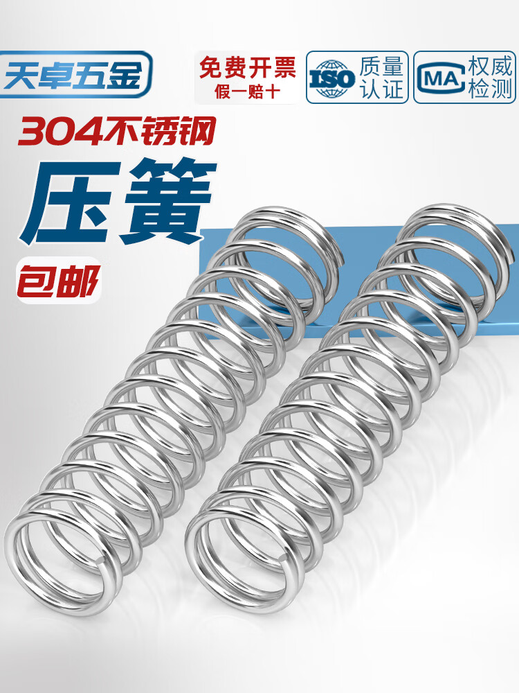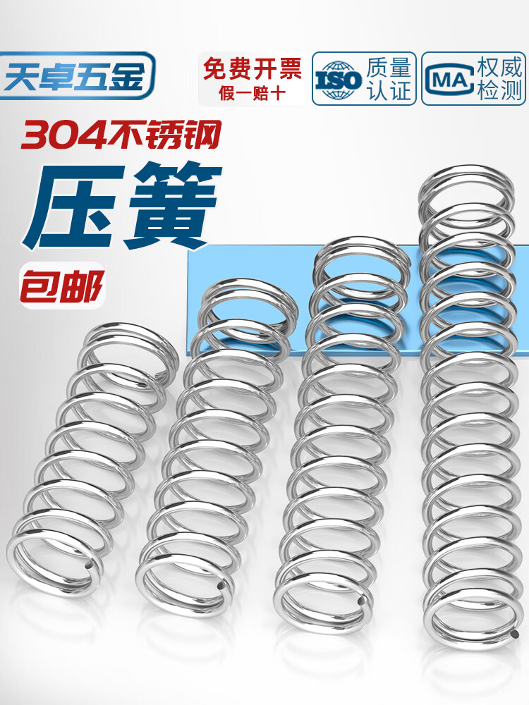 天卓五金线径0.7 0.8 1.0mm 304不锈钢压簧弹簧 压缩簧压力大小减震簧大全 0.8*10*50【10个】