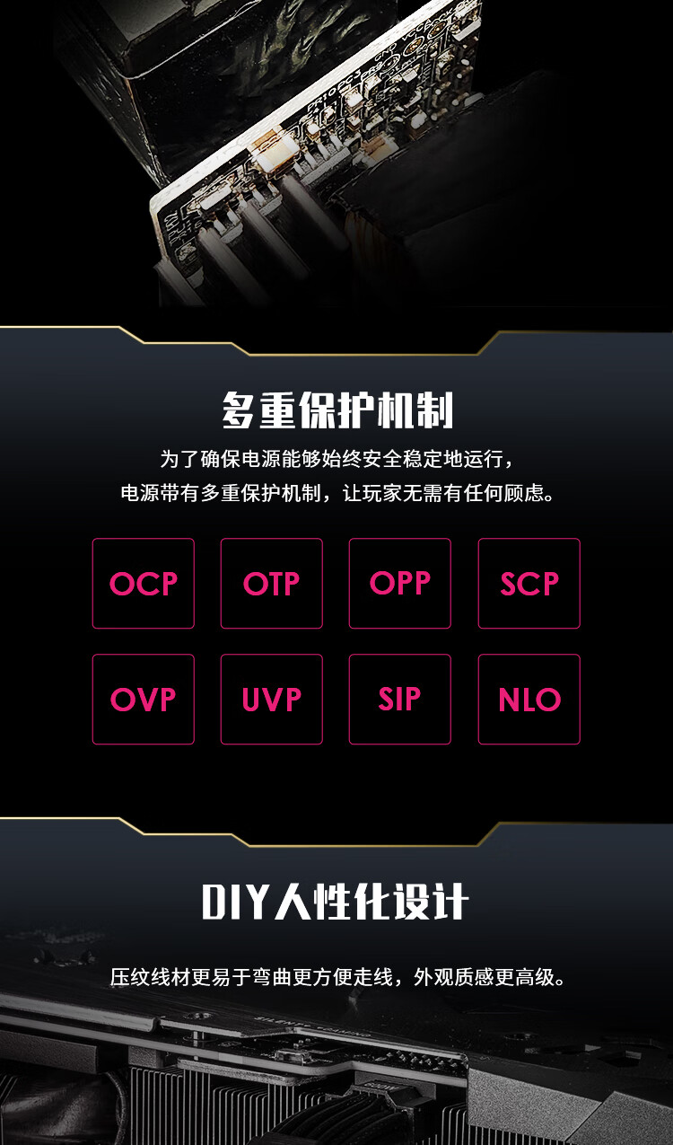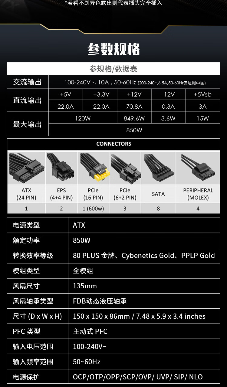 金河田(Golden field)白金A+850W 黑色ATX3.1台式电脑电源白金认证/全日系电容/12V2*6/稳压5070ti 9070xt显卡/软压纹线