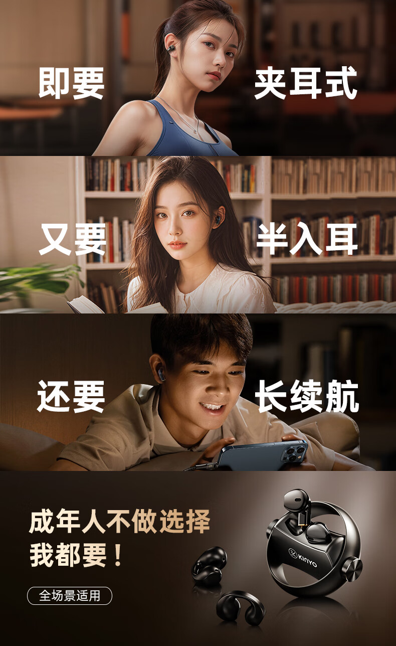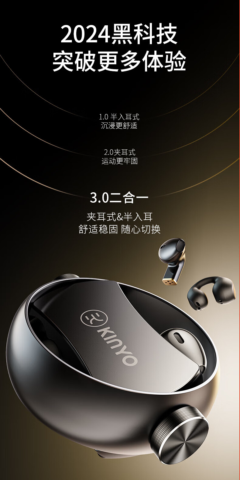 金运【两幅耳机丨25年新升级】A20蓝牙耳机金榜第1名骨传导概念无线耳夹半入耳式电竞游戏超长续航学生 A20【转轴解压款-夜境黑】双耳机 超级单品丨标配版