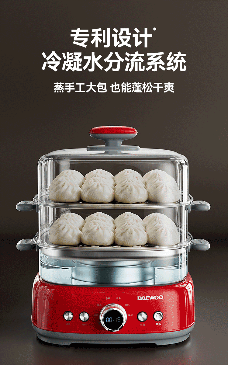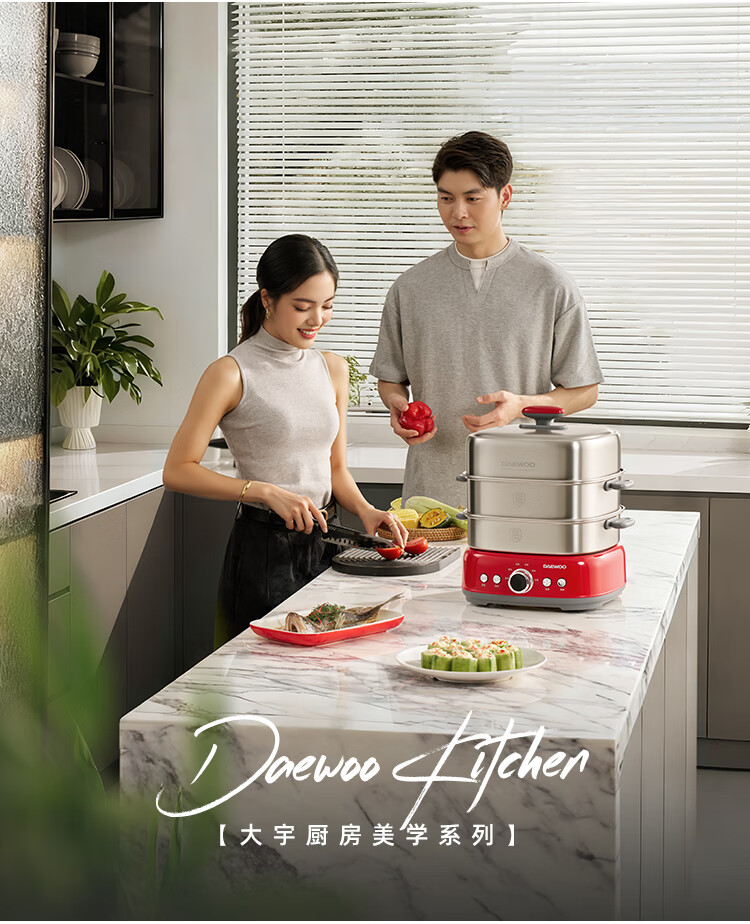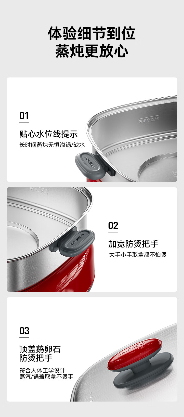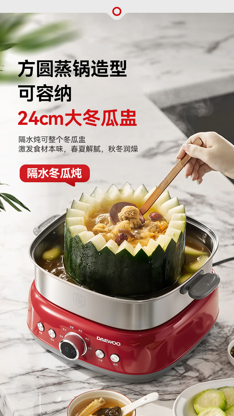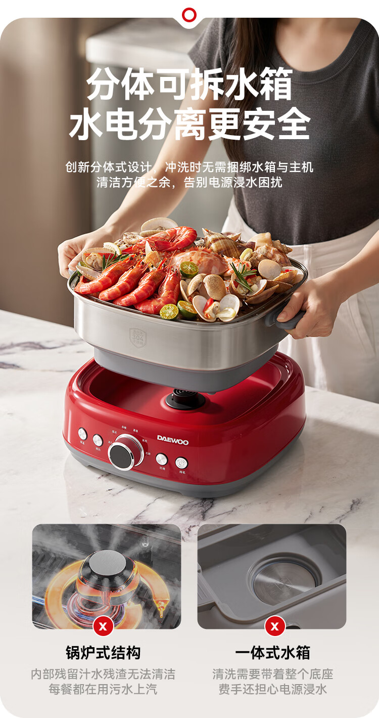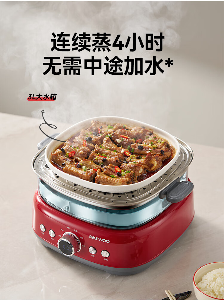 大宇(DAEWOO)电蒸锅火锅蒸炖煮一体多功能汽锅 全304不锈钢0涂层 20升3层大容量家用可拆卸 预约定时 防干烧S38