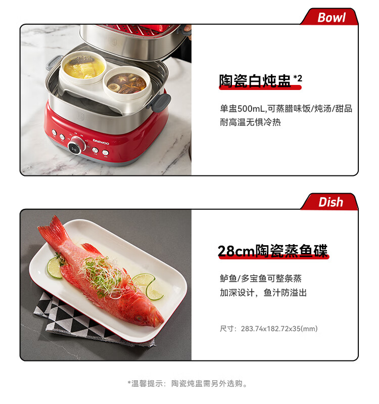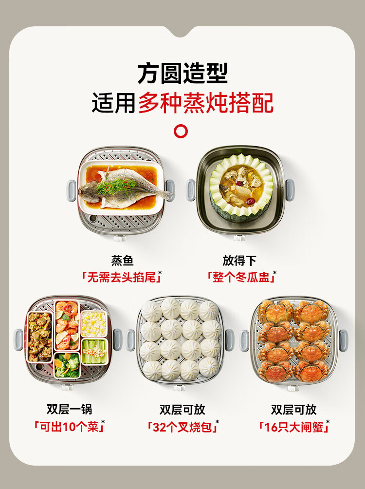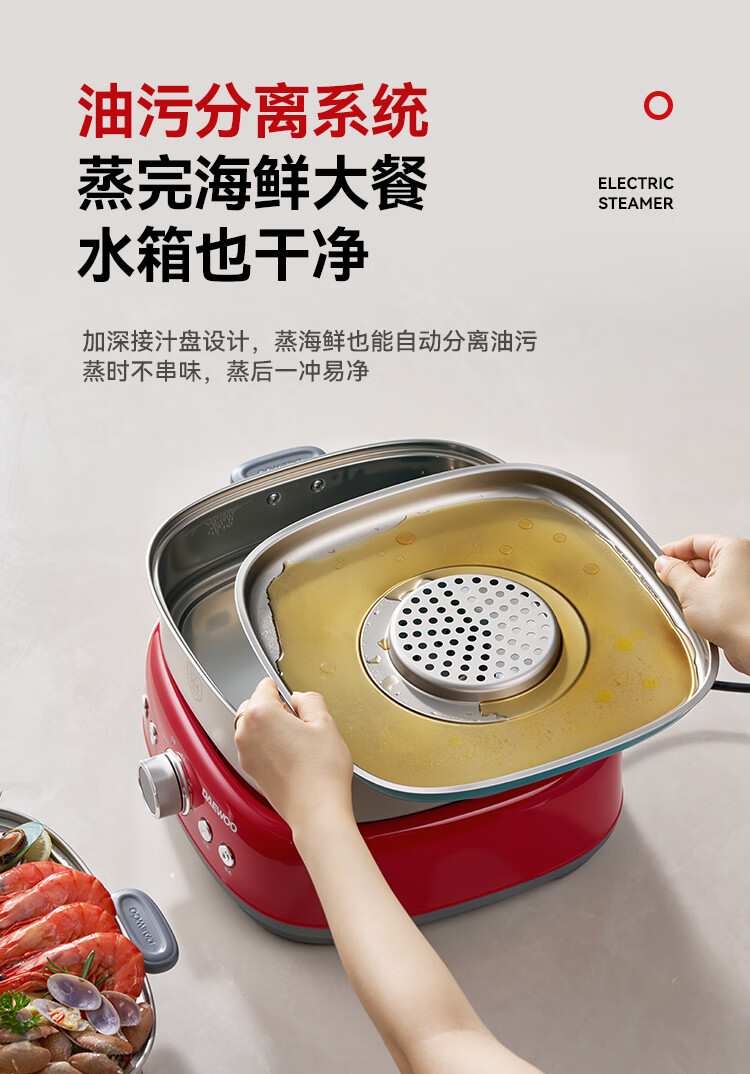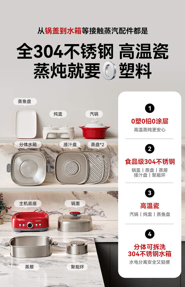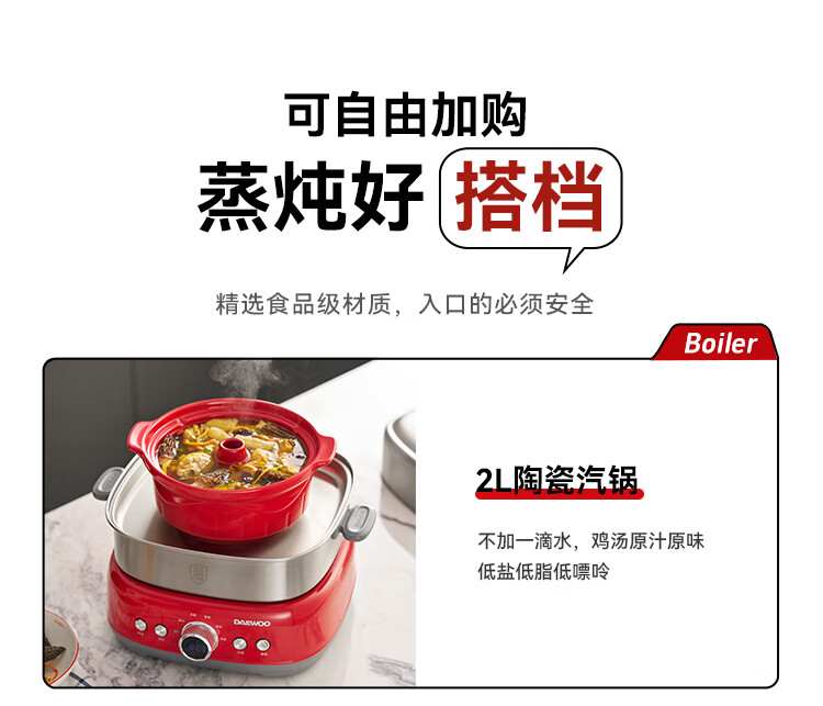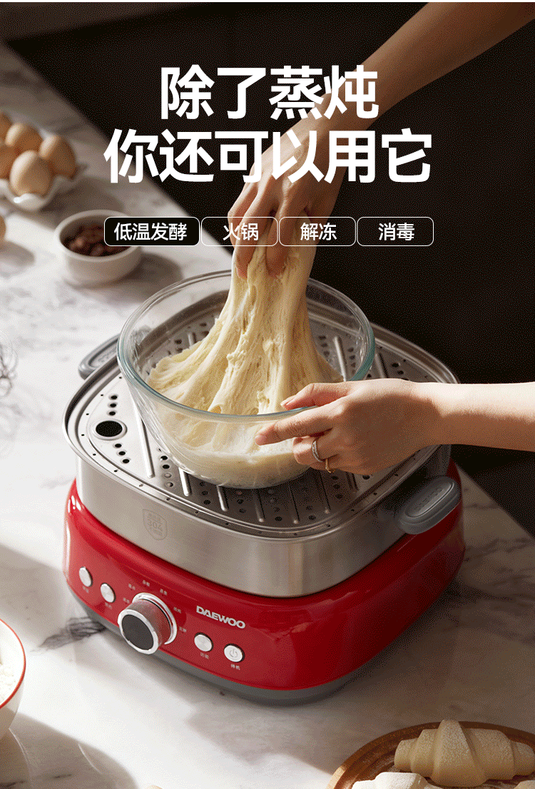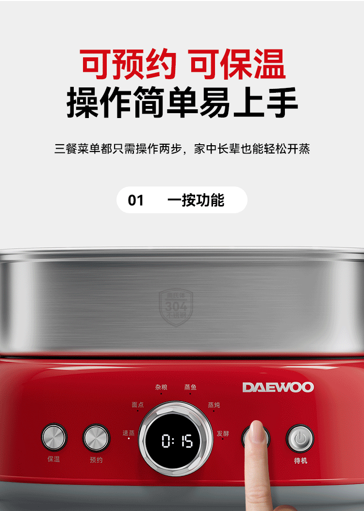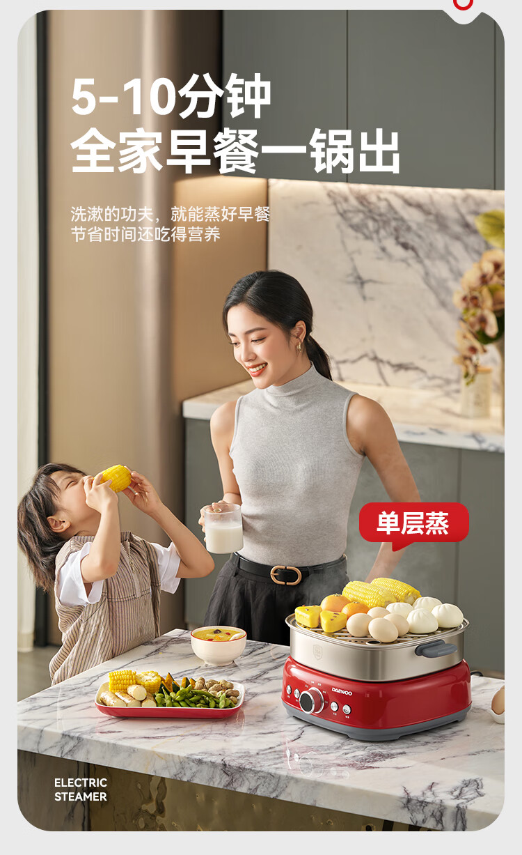 大宇(DAEWOO)电蒸锅火锅蒸炖煮一体多功能汽锅 全304不锈钢0涂层 20升3层大容量家用可拆卸 预约定时 防干烧S38