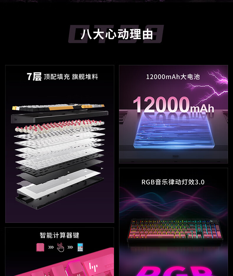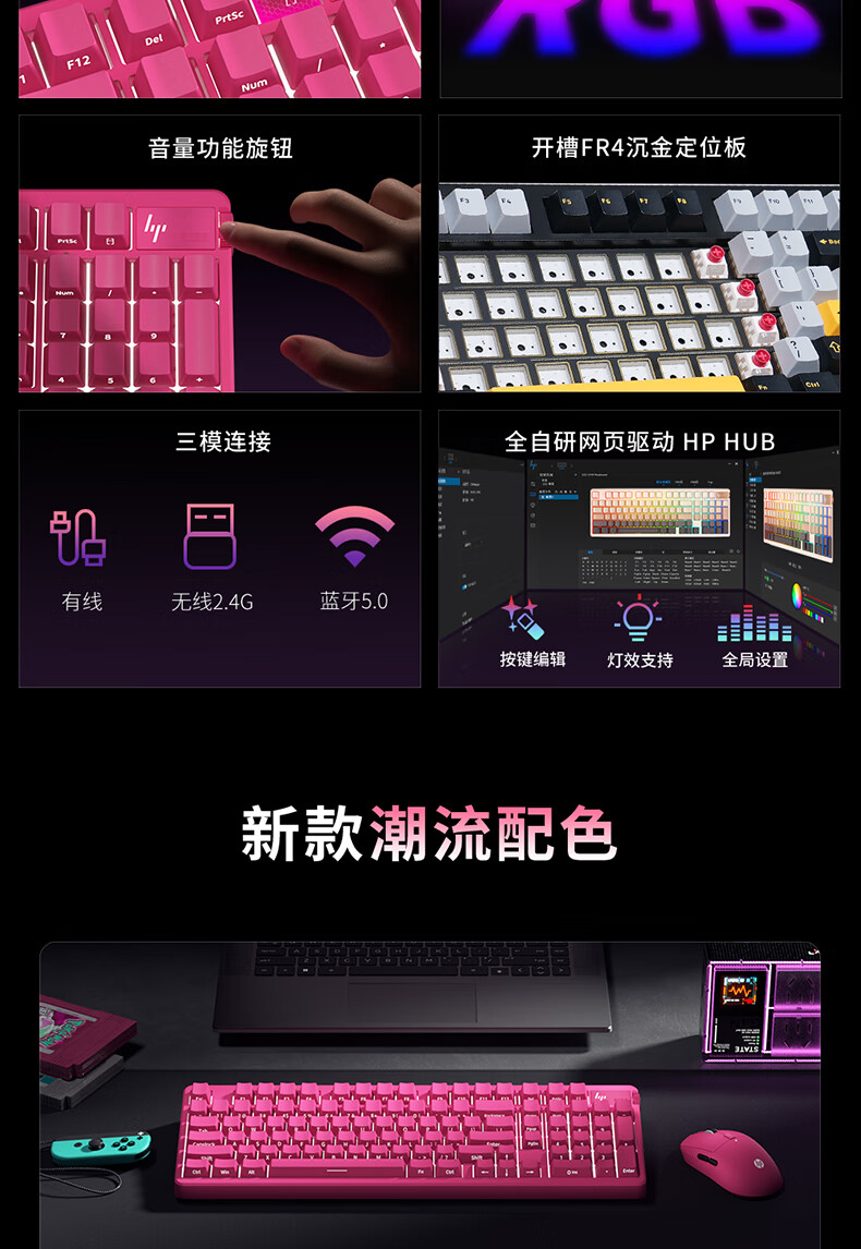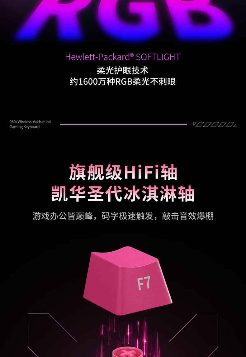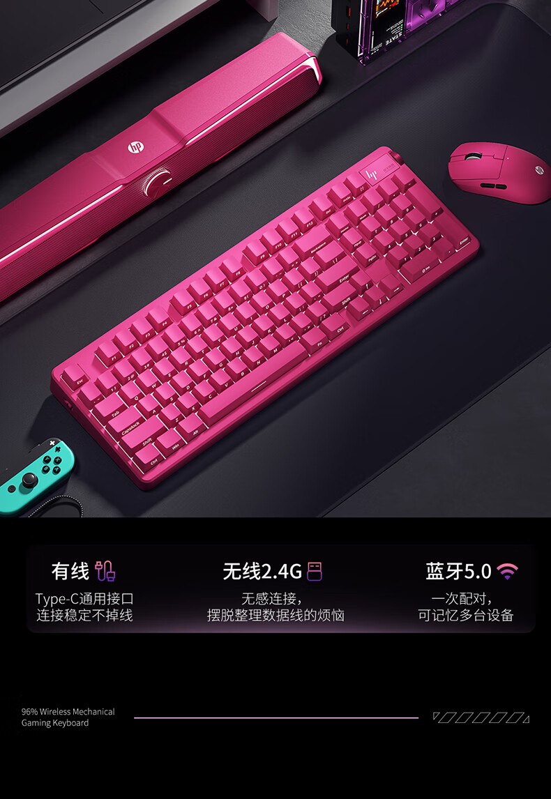 惠普(HP)GT98机械键盘无线有线蓝牙三模gasket客制化电竞游戏键盘办公电脑 星辰黑碧玉轴