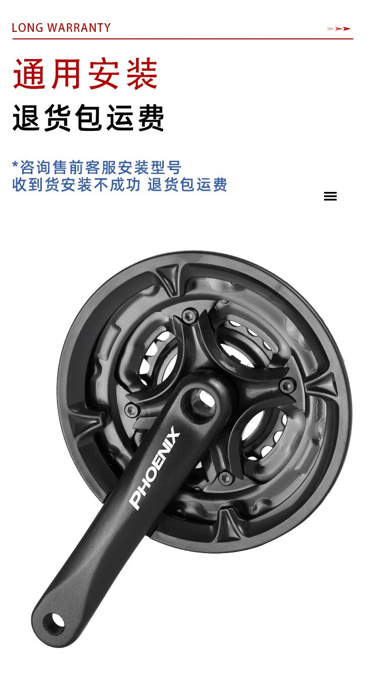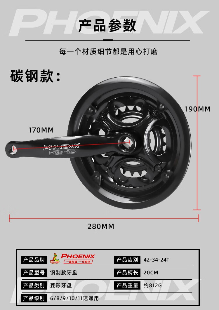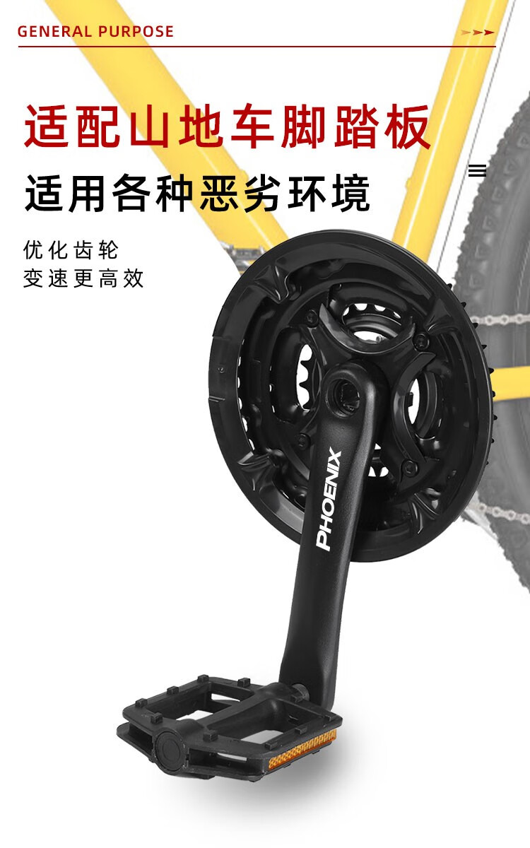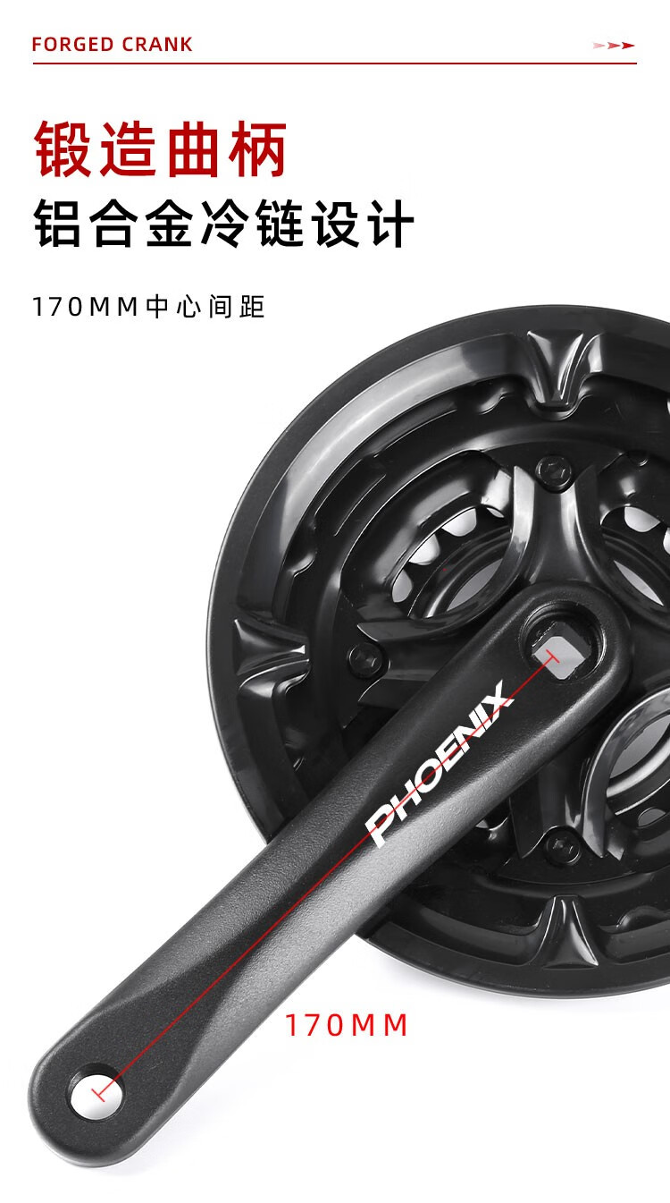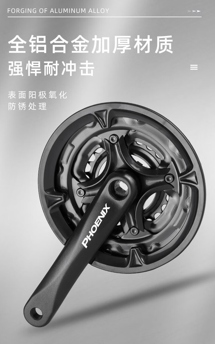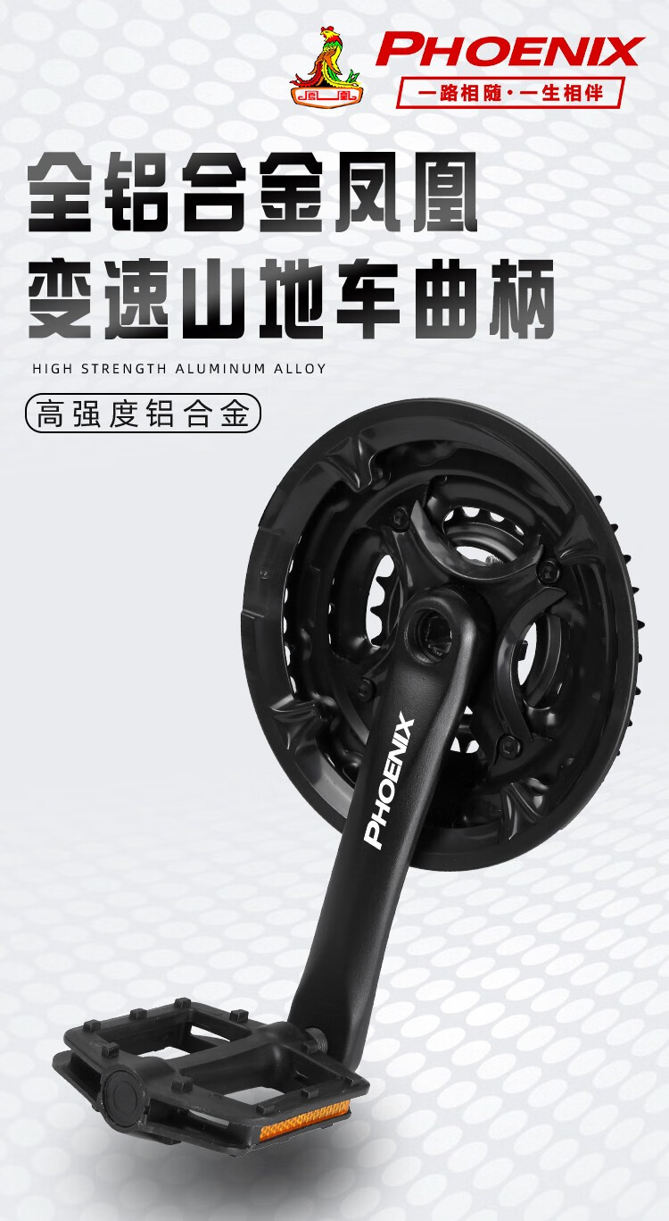 欧米尼凤凰山地自行车牙盘脚踏连接杆脚拐脚蹬杆铝合金左曲柄左柄腿配件 凤凰高碳钢曲柄牙盘一套(左+右)