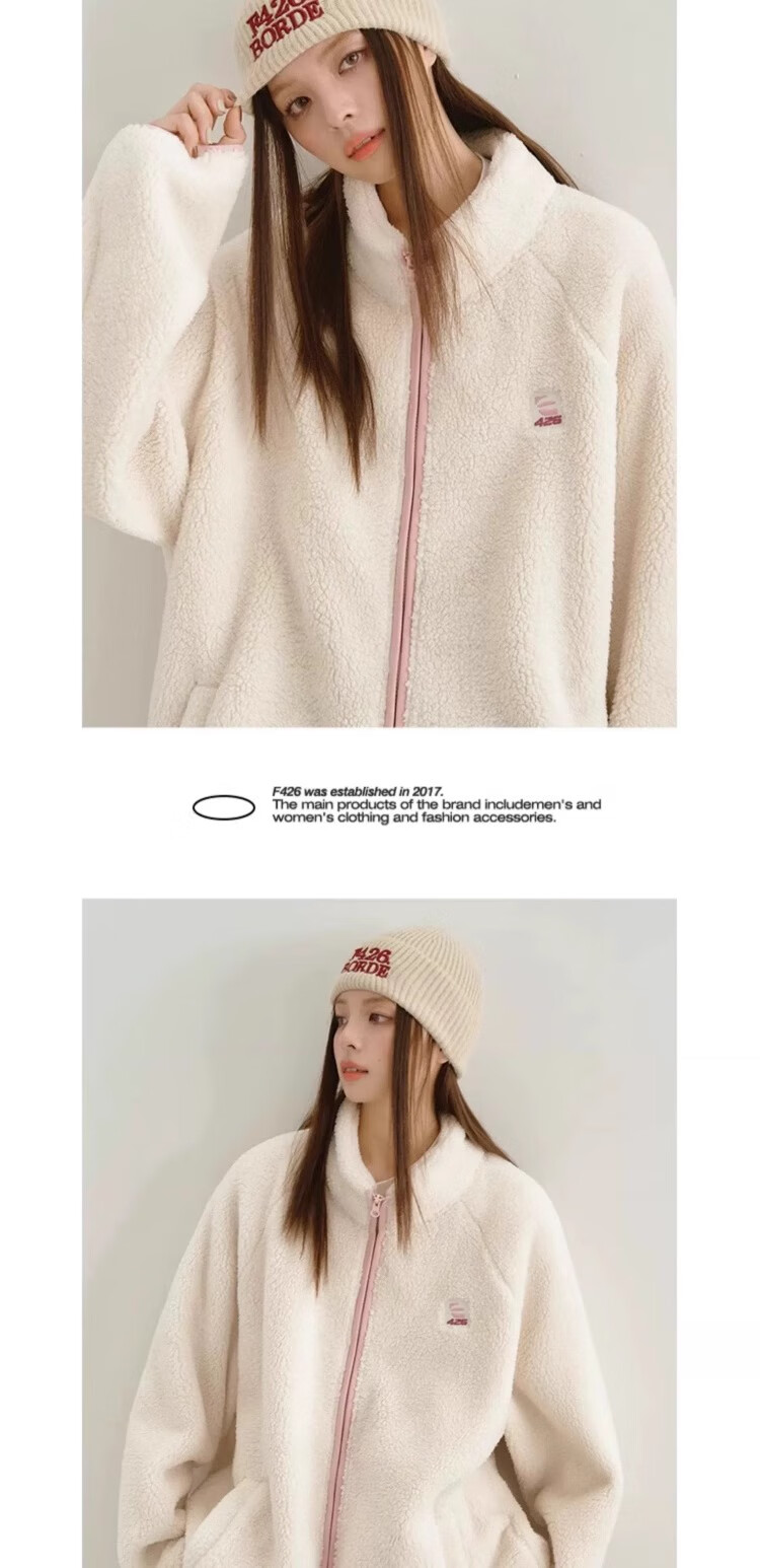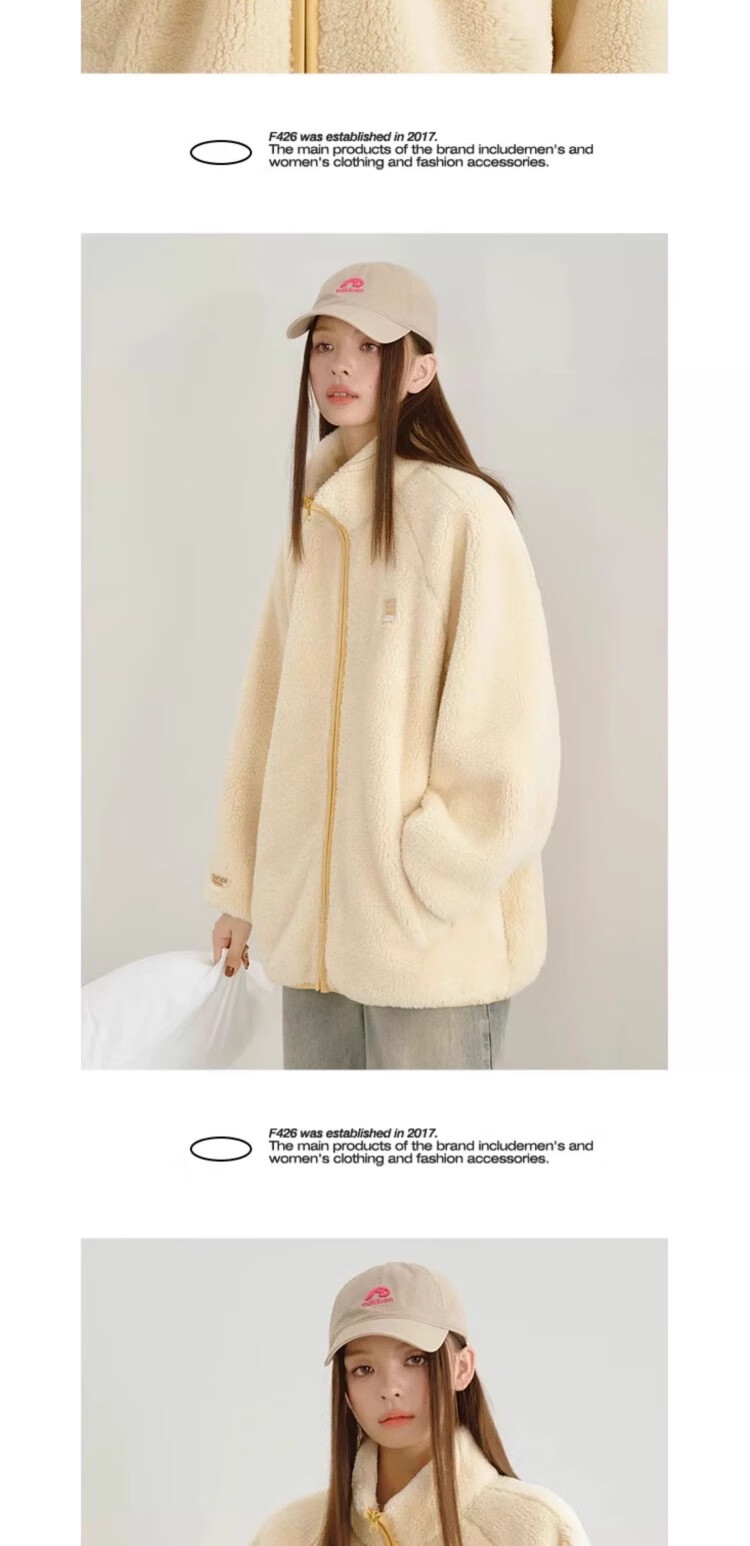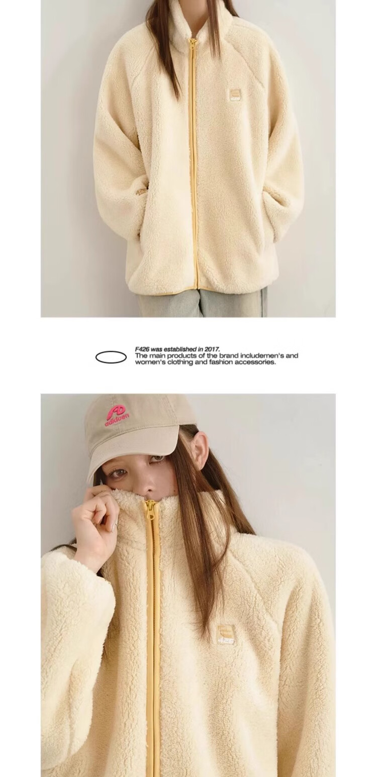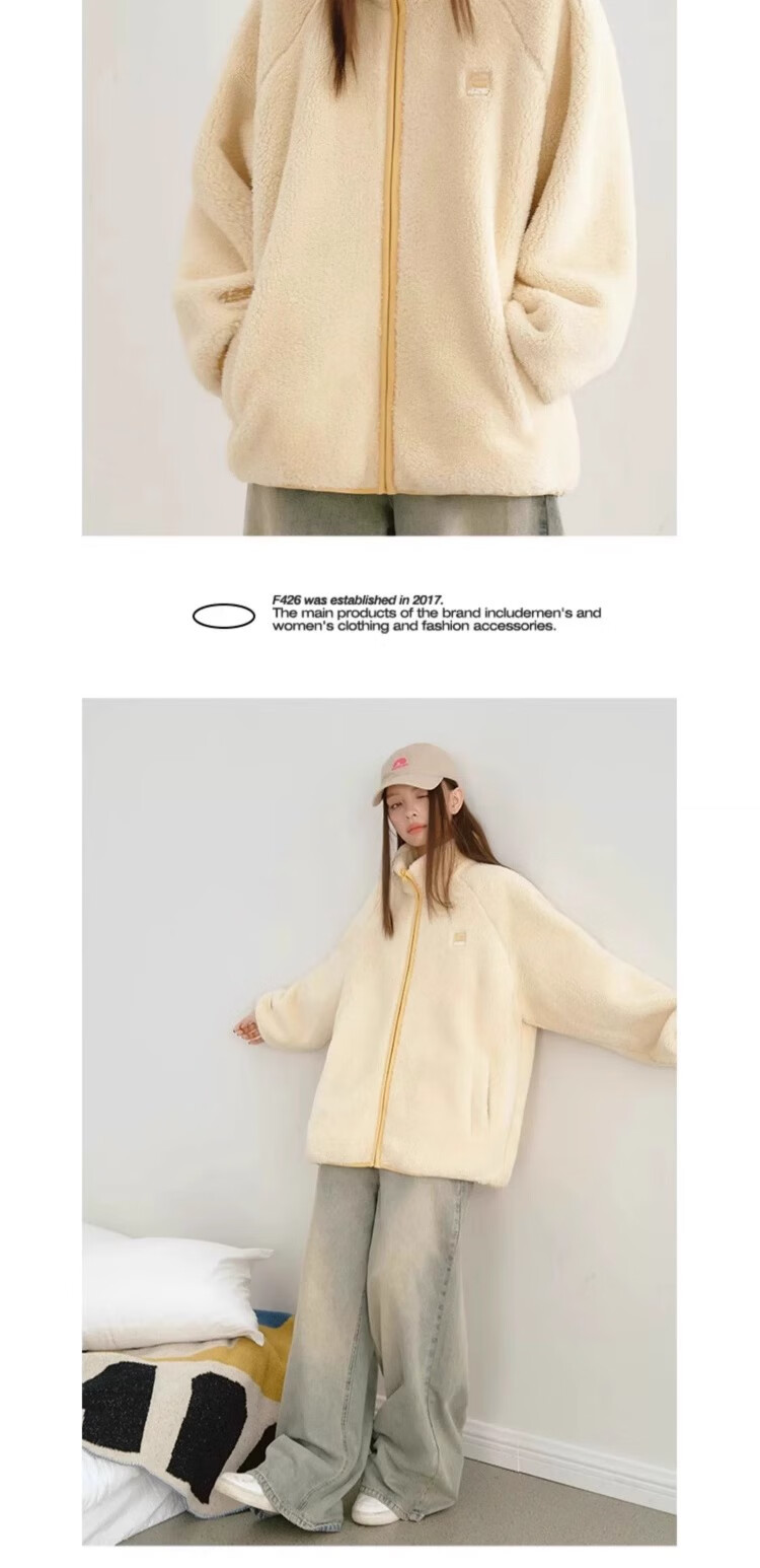 F426【赵露思许妍同款】国潮牌情侣秋季宽松撞色舒棉绒毛绒外套 柠檬黄 加绒 S