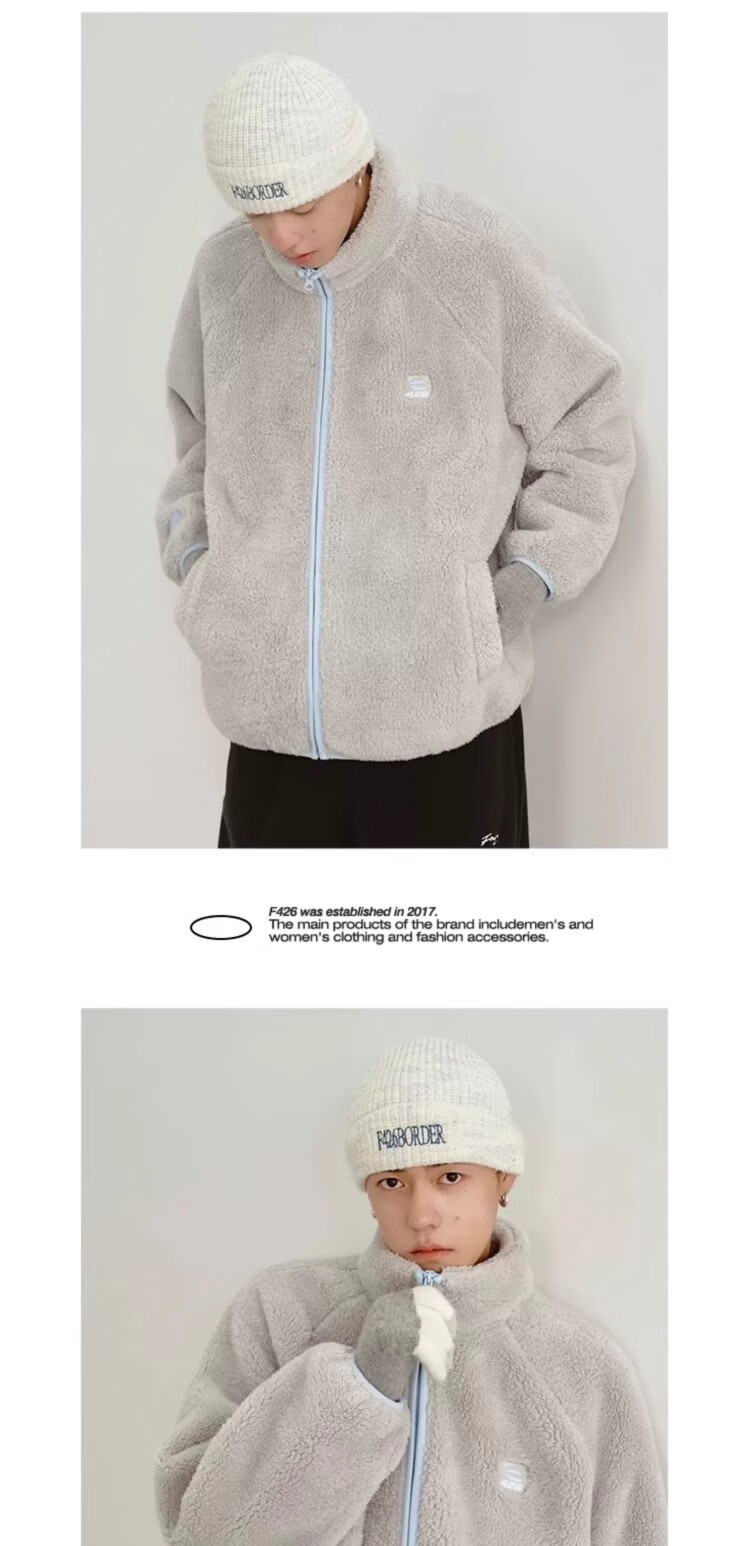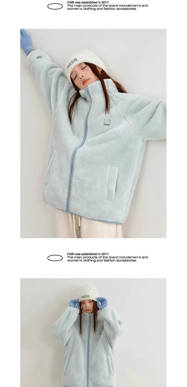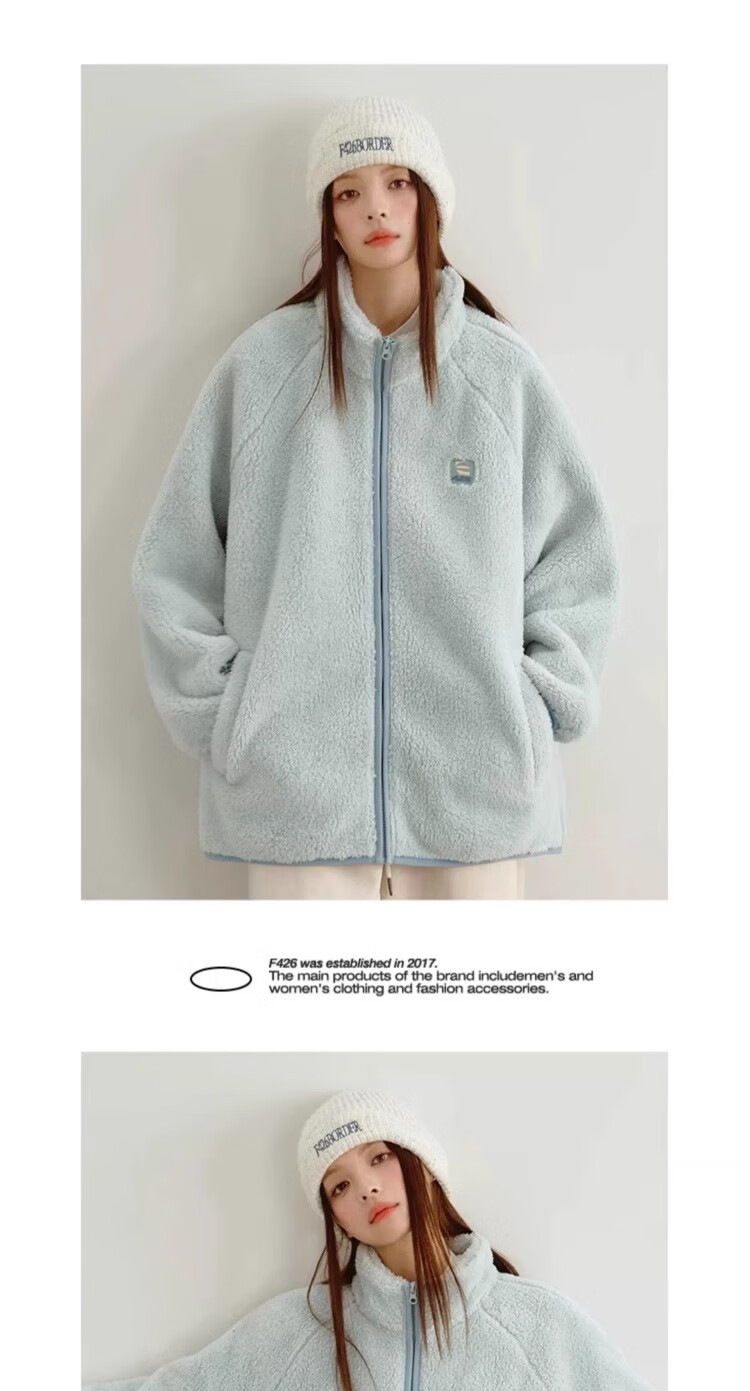 F426【赵露思许妍同款】国潮牌情侣秋季宽松撞色舒棉绒毛绒外套 柠檬黄 加绒 S