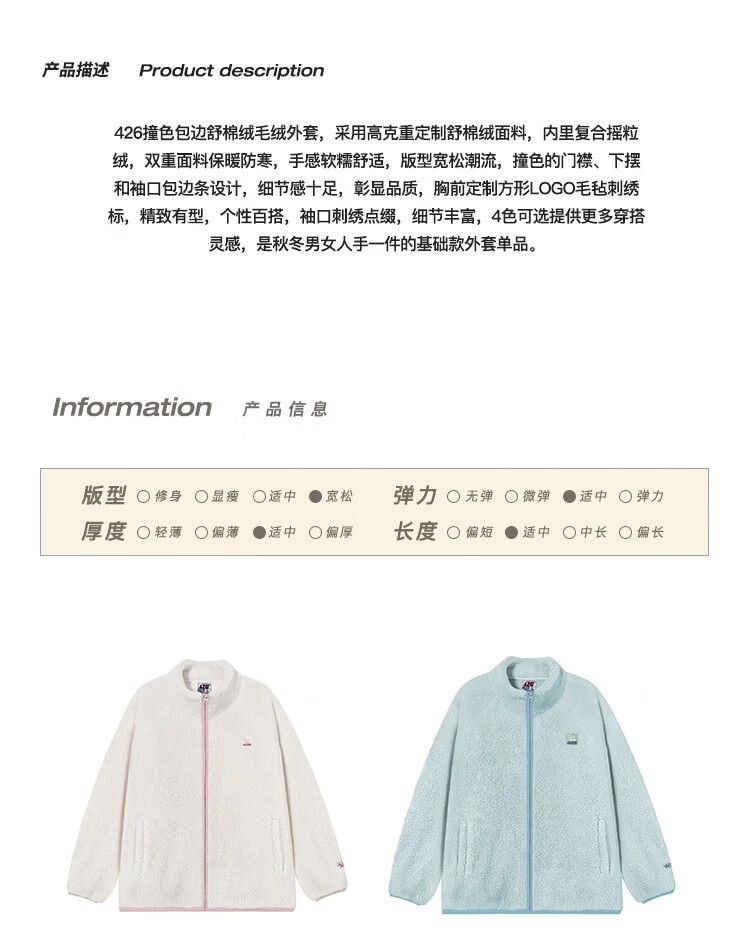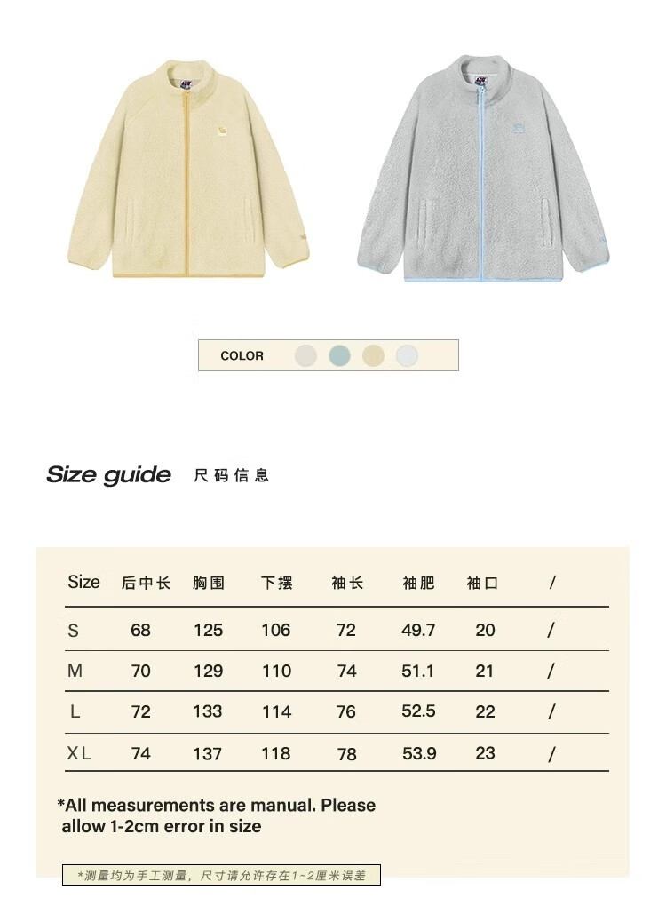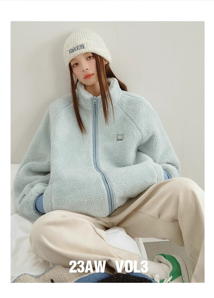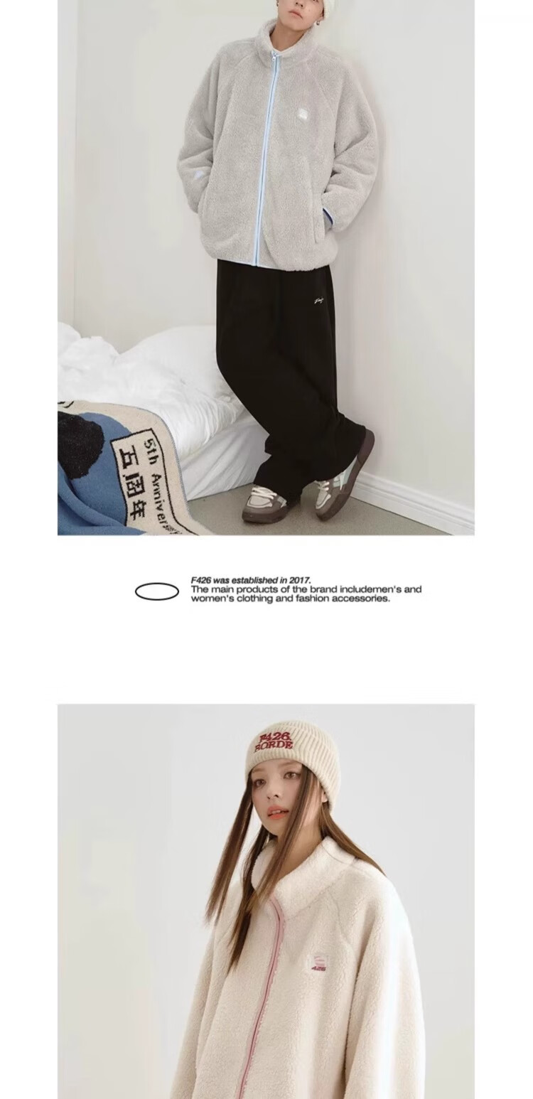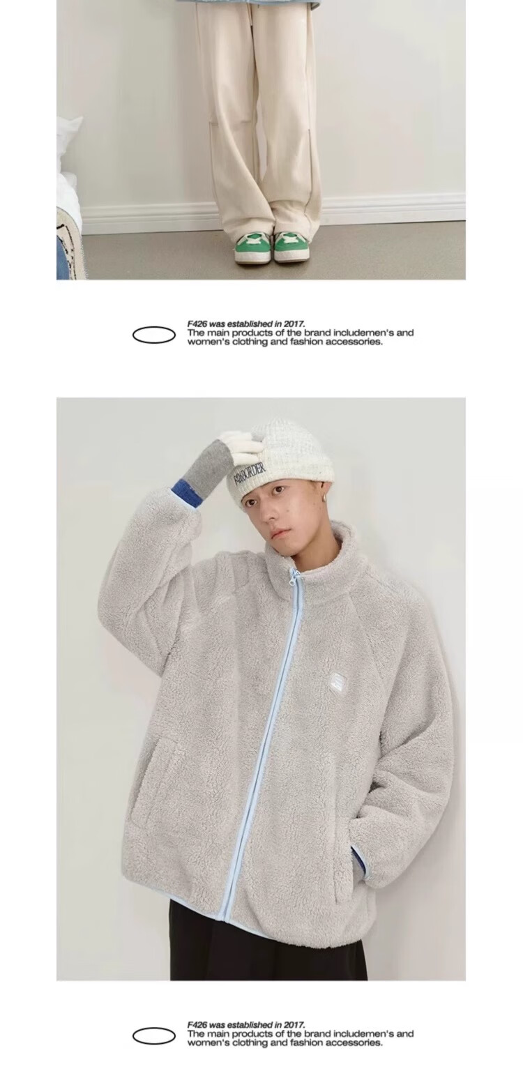F426【赵露思许妍同款】国潮牌情侣秋季宽松撞色舒棉绒毛绒外套 柠檬黄 加绒 S