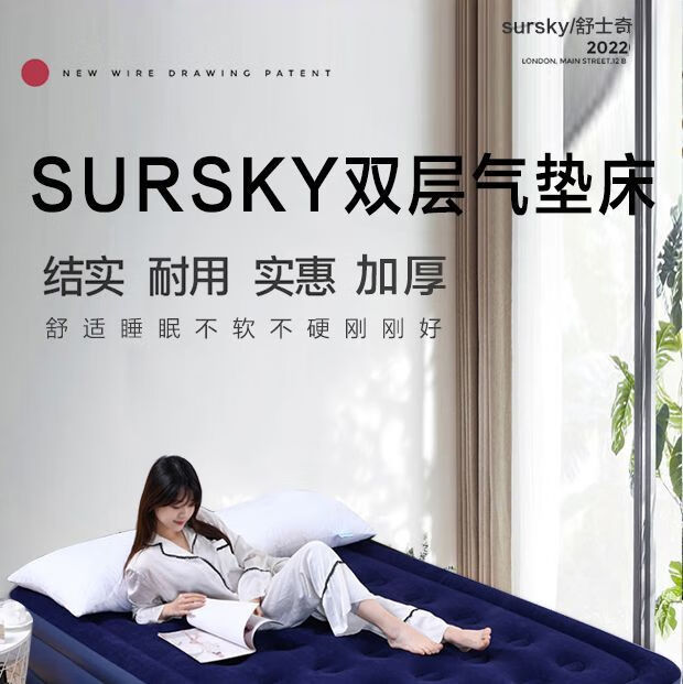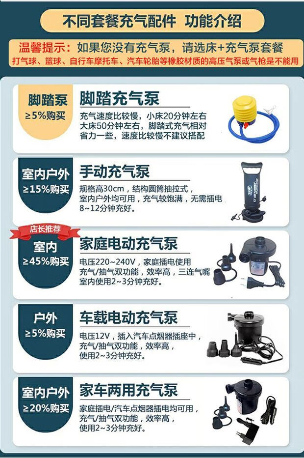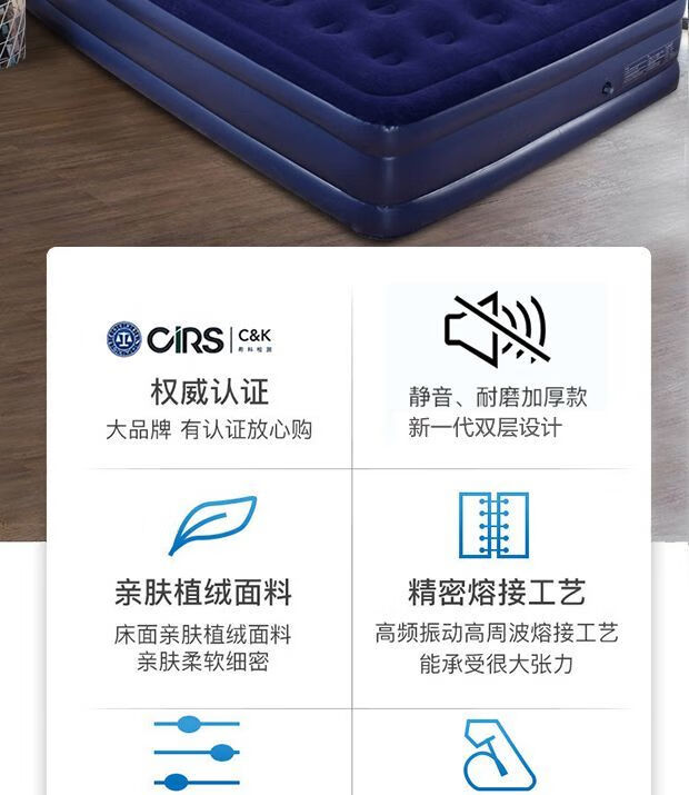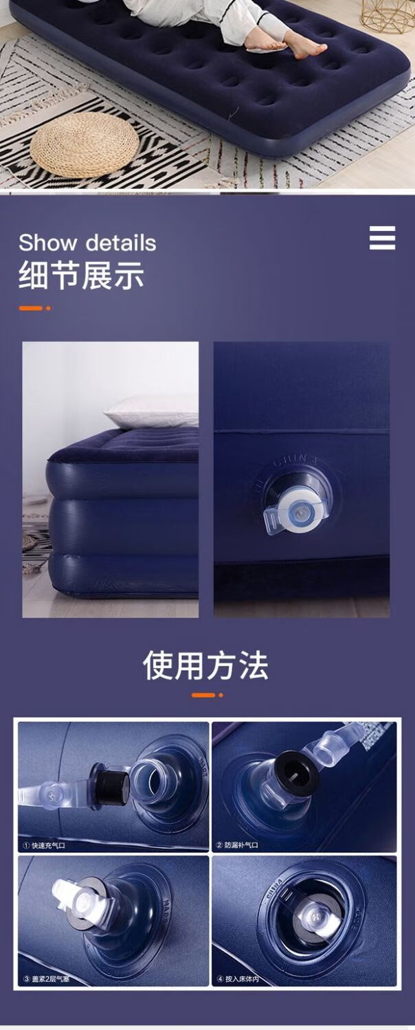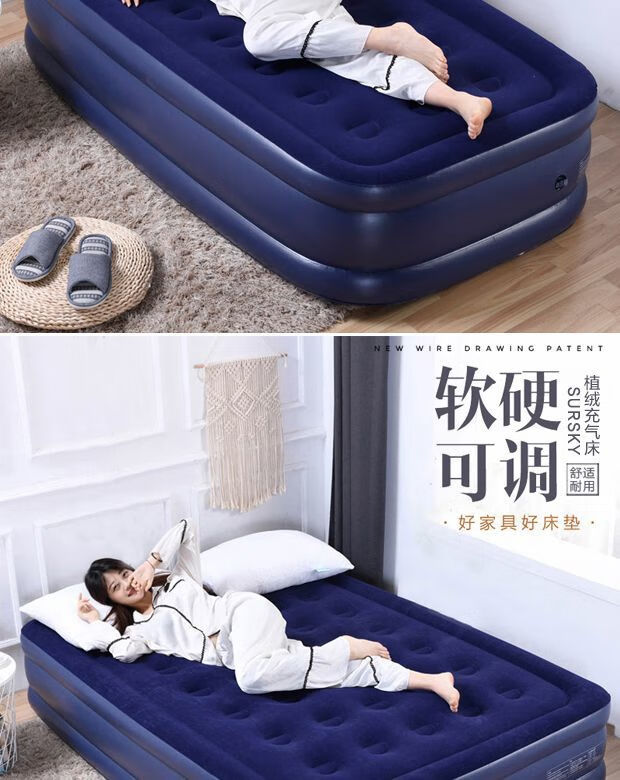 宰搂充气式充气床气垫床打地铺可折叠型地上睡觉床出租屋宿舍床垫 主图款 长200宽150高22单层双人