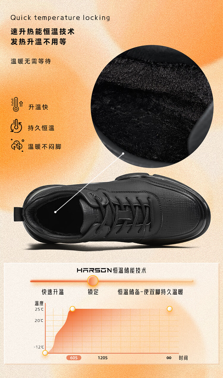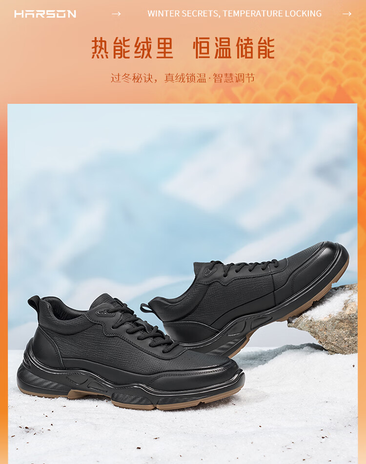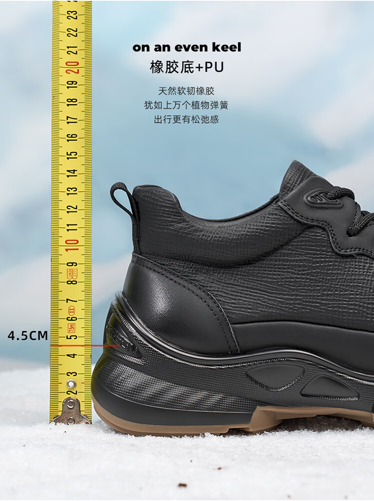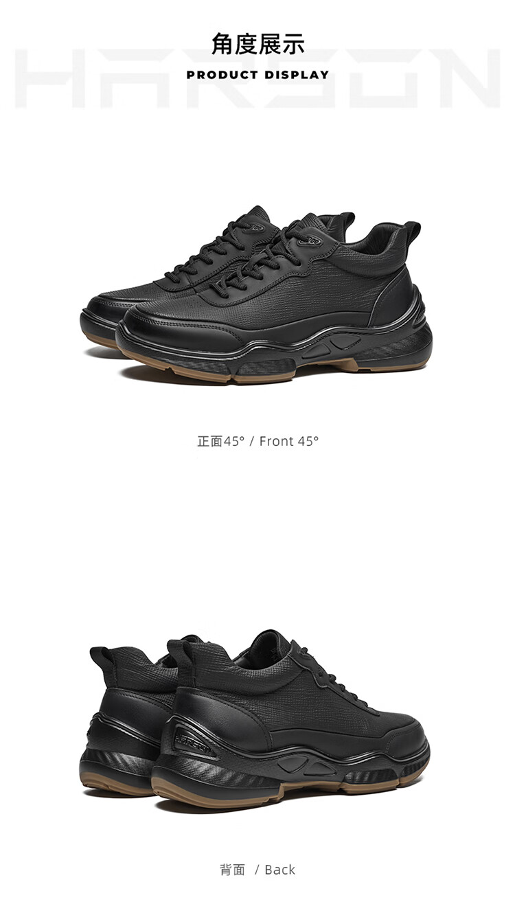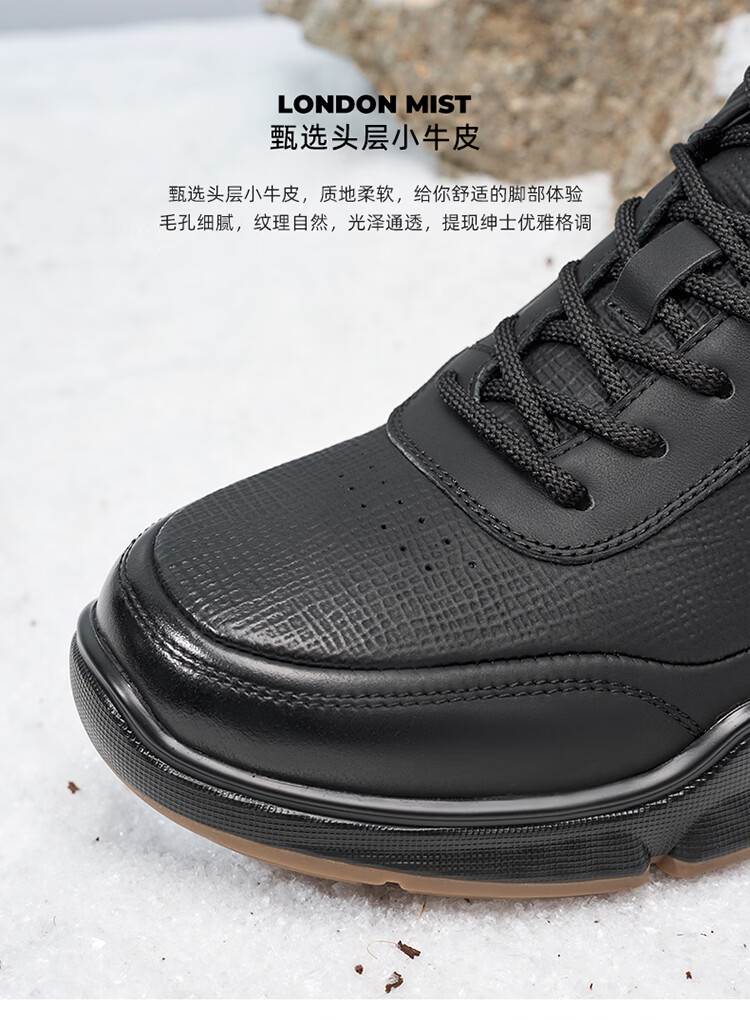 哈森(Harson)牛皮革男鞋秋冬运动皮鞋厚底商务休闲鞋公务通勤健步鞋2025年新款 黑色加绒(6148) 43