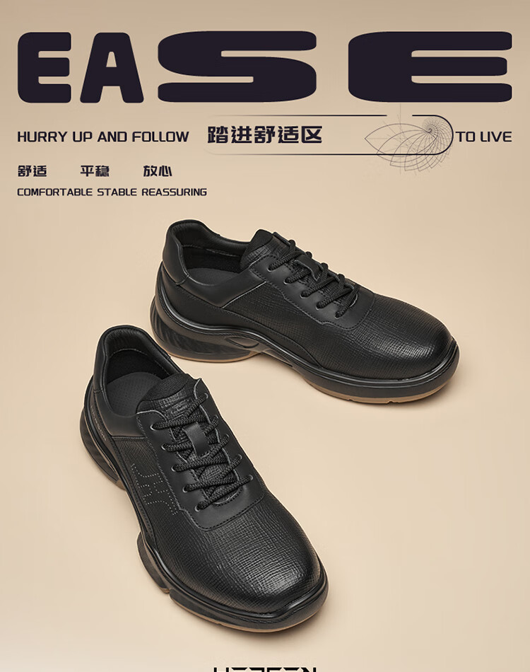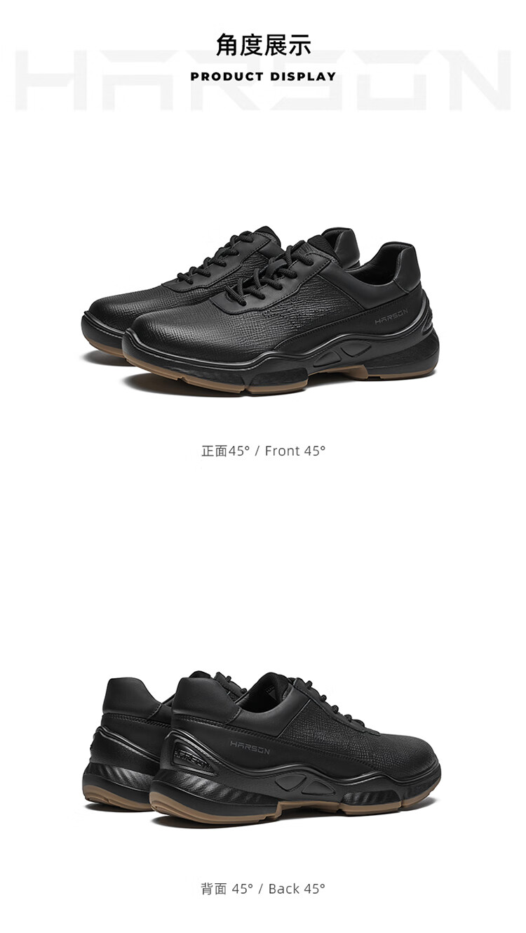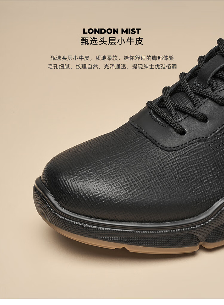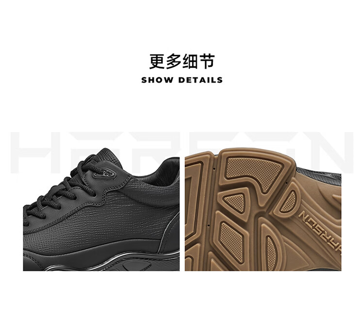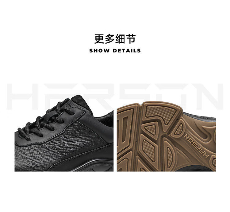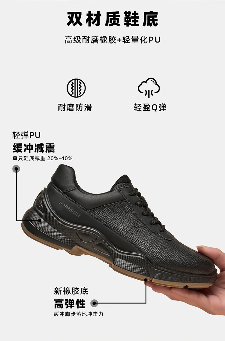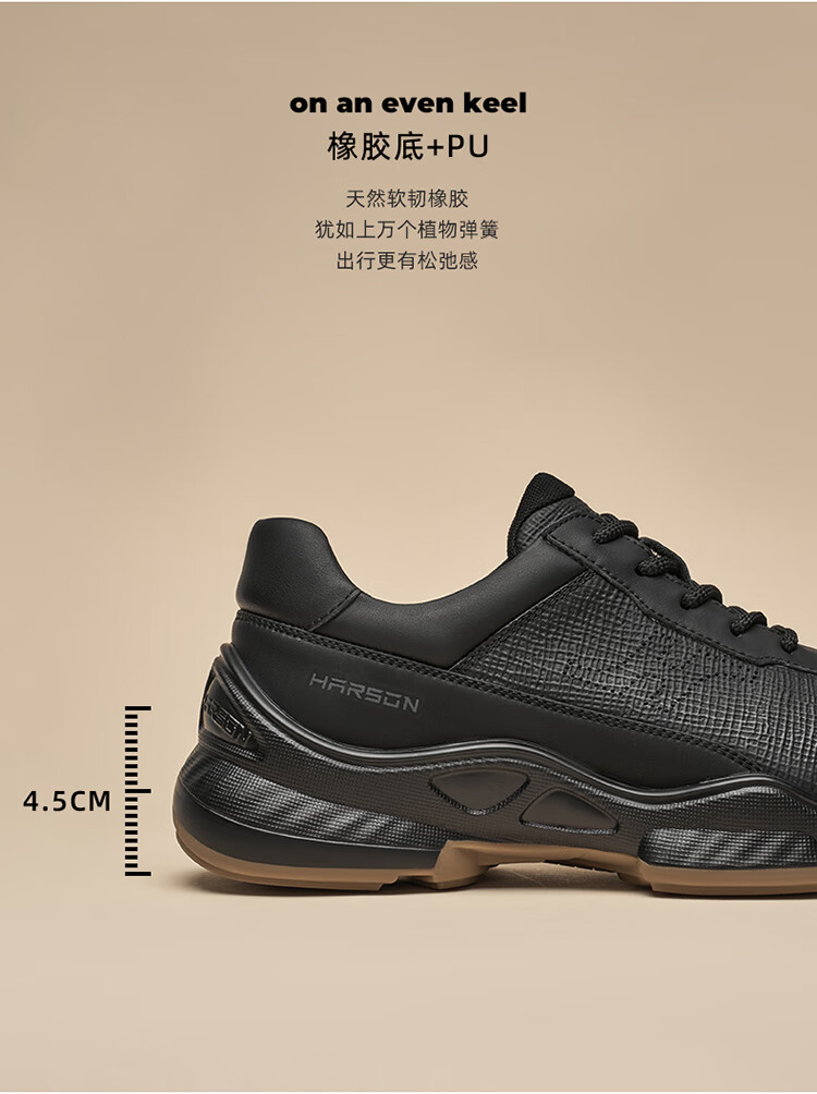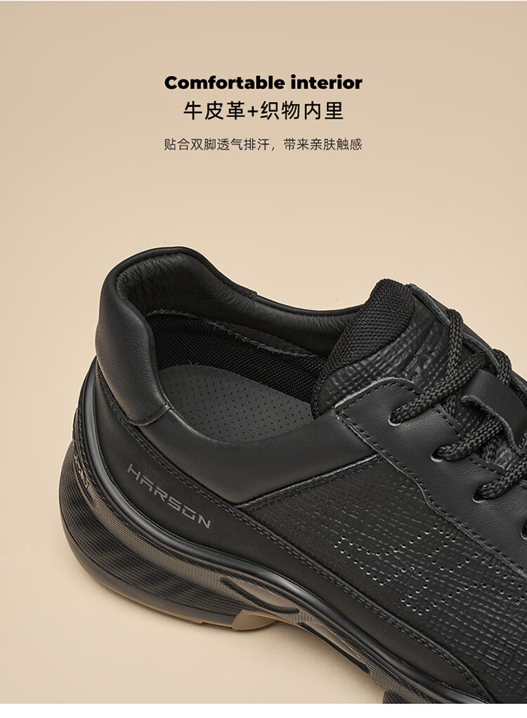 哈森(Harson)牛皮革男鞋秋冬运动皮鞋厚底商务休闲鞋公务通勤健步鞋2025年新款 黑色 41