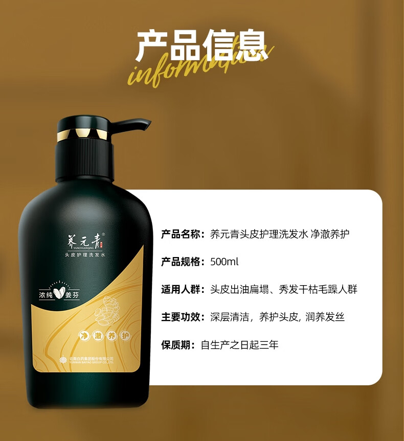 养元青生姜洗发水控油无硅油健发去油脂洗发护发洗头膏 【大规格】控油蓬松洗发水500ml