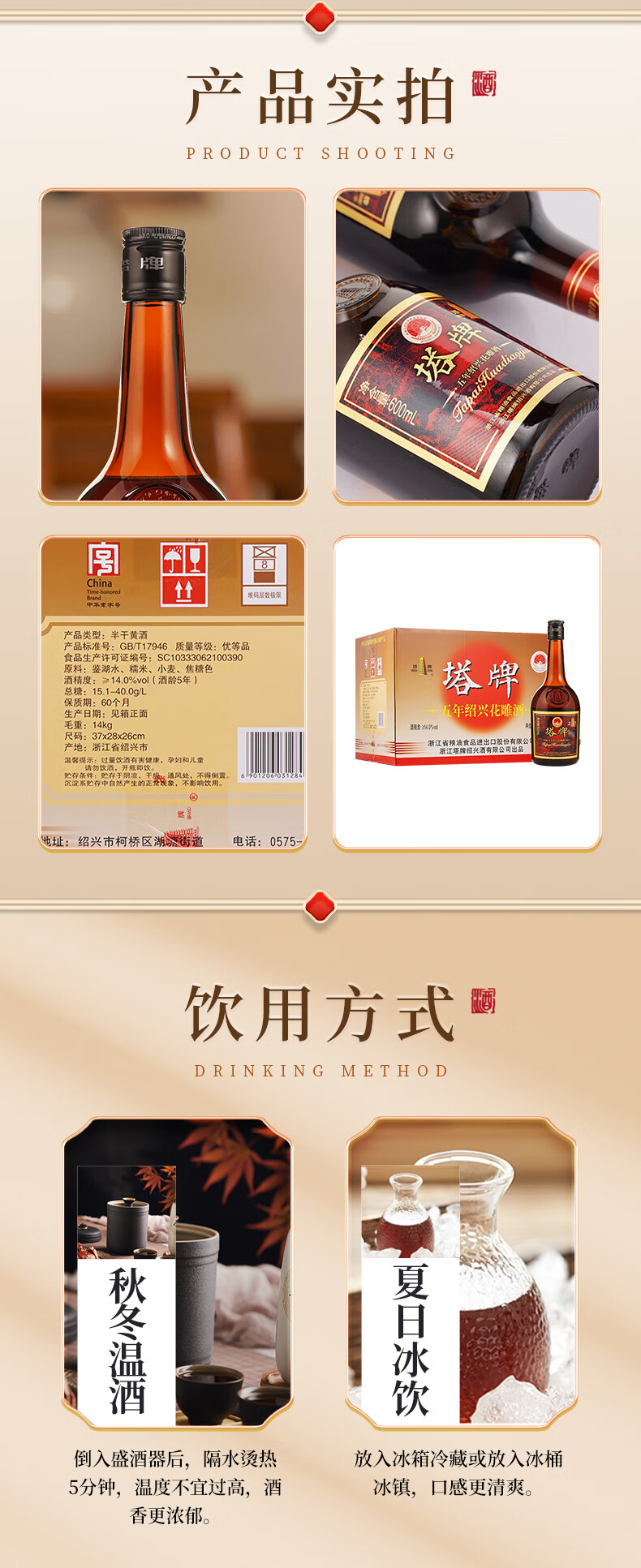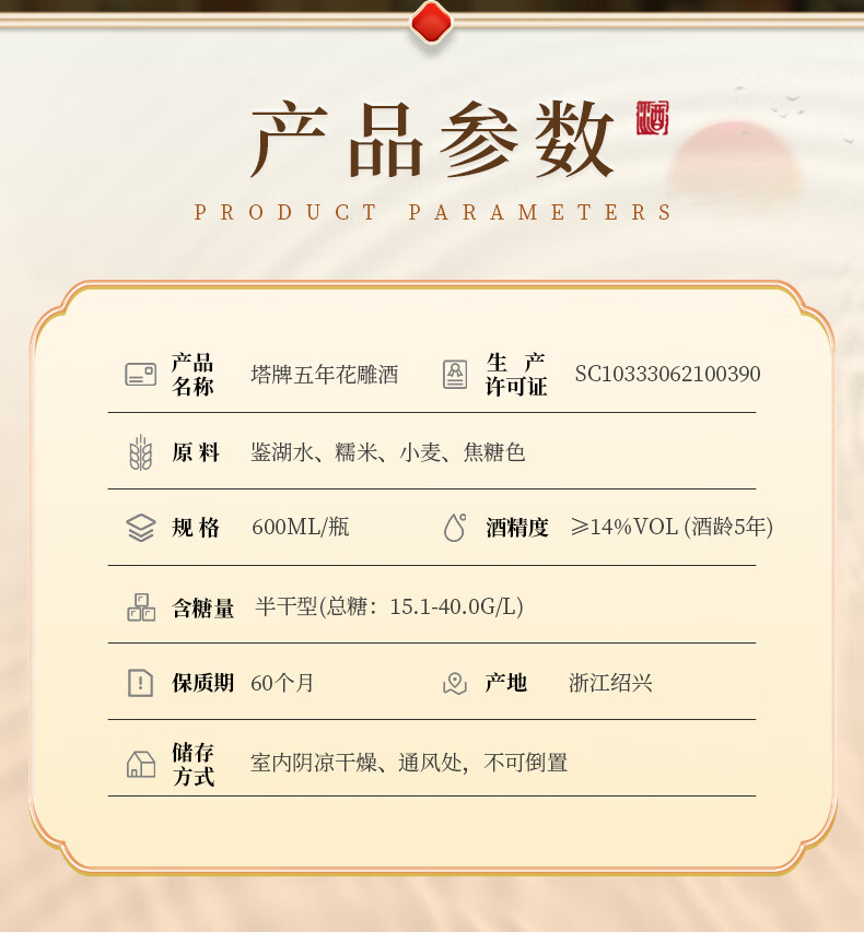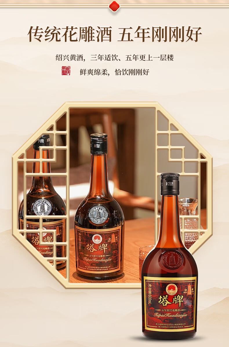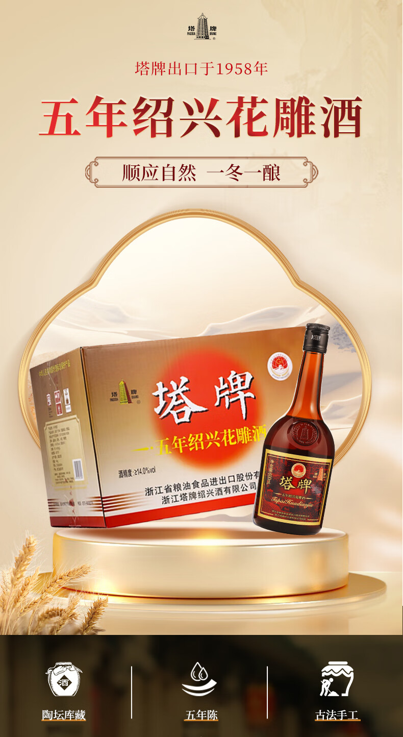 塔牌 五年陈花雕酒 绍兴黄酒 半干型手工冬酿糯米酒 600mL 12瓶