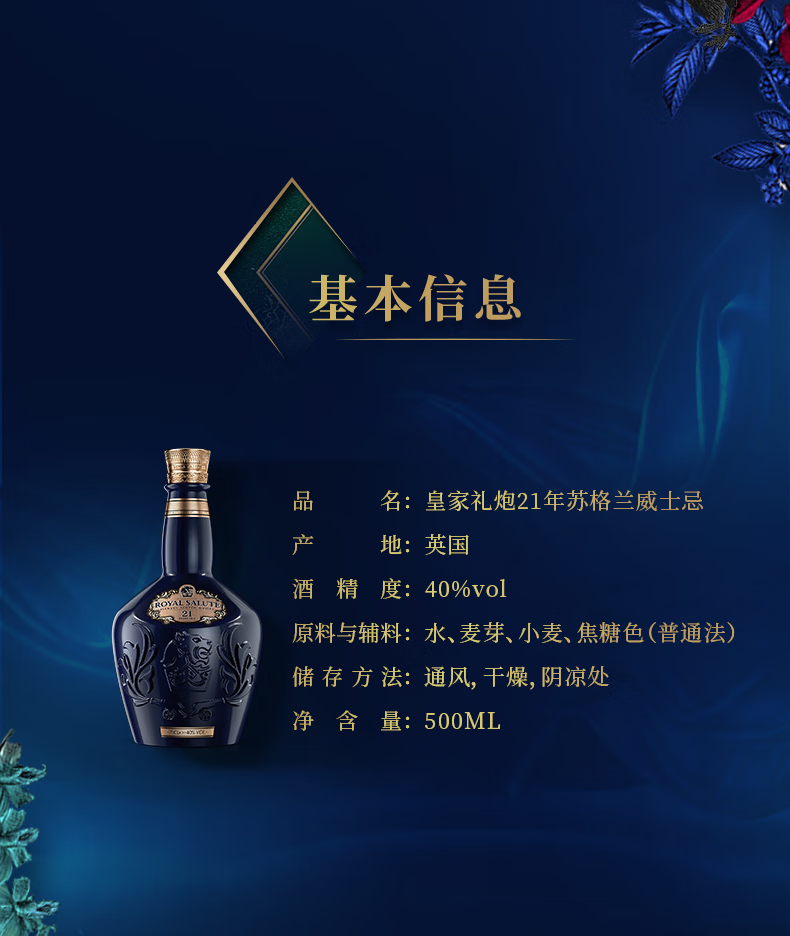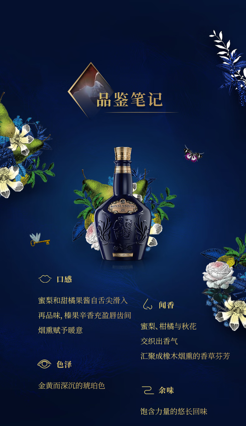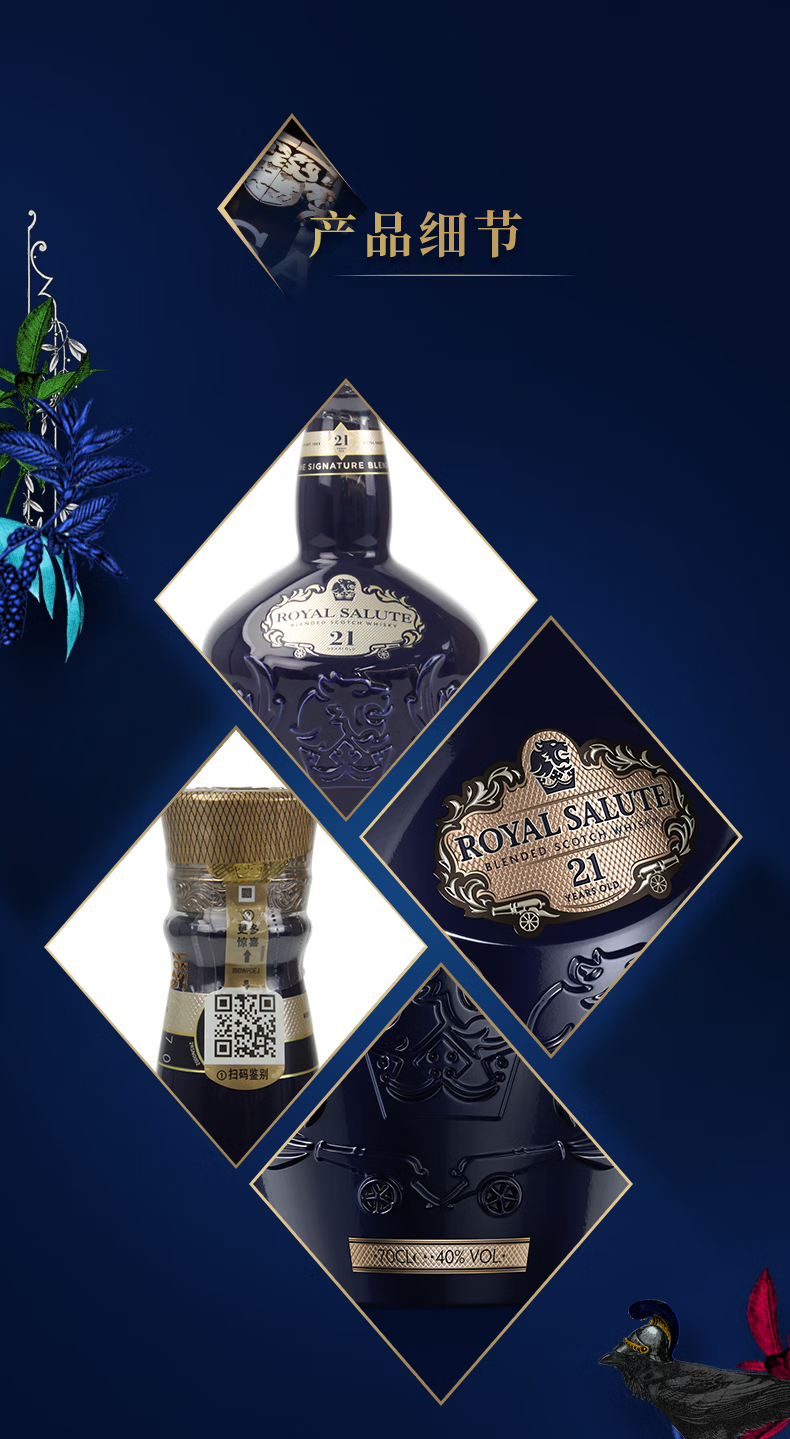 皇家礼炮(Royal Salute)苏格兰进口洋酒 调和型威士忌 保乐力加官方行货 皇家礼炮21年法兰西菊限定 700mL