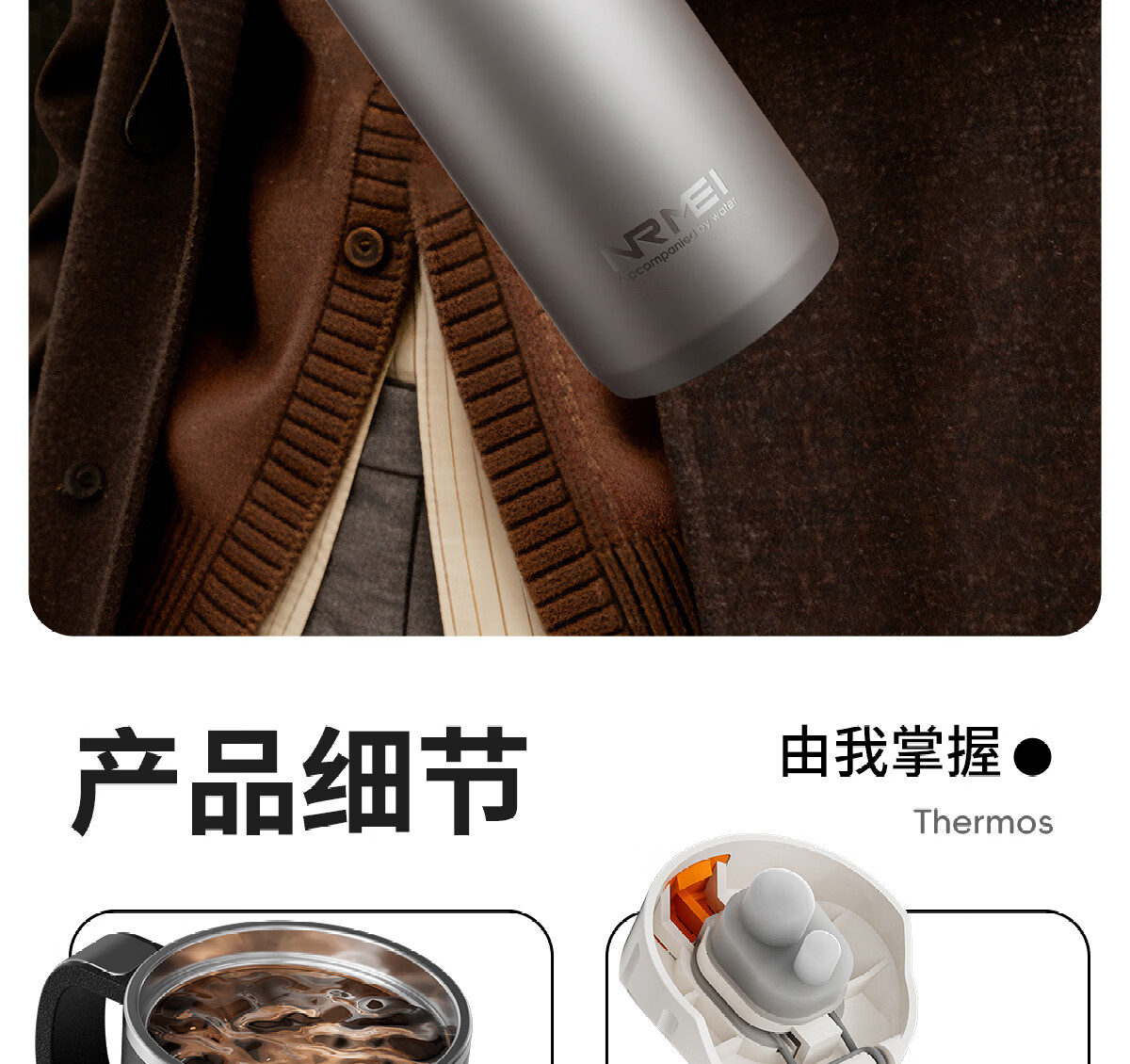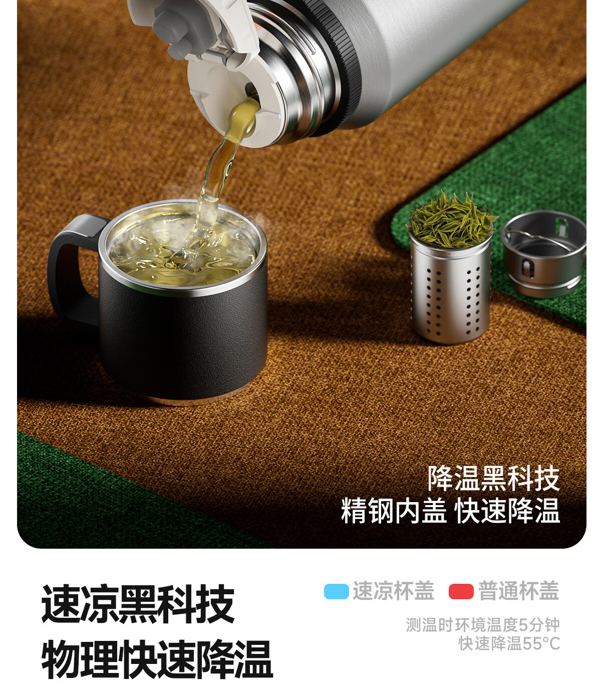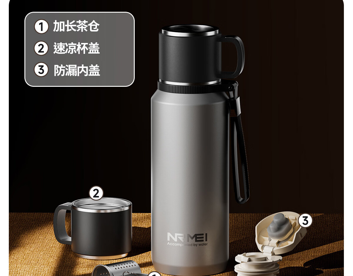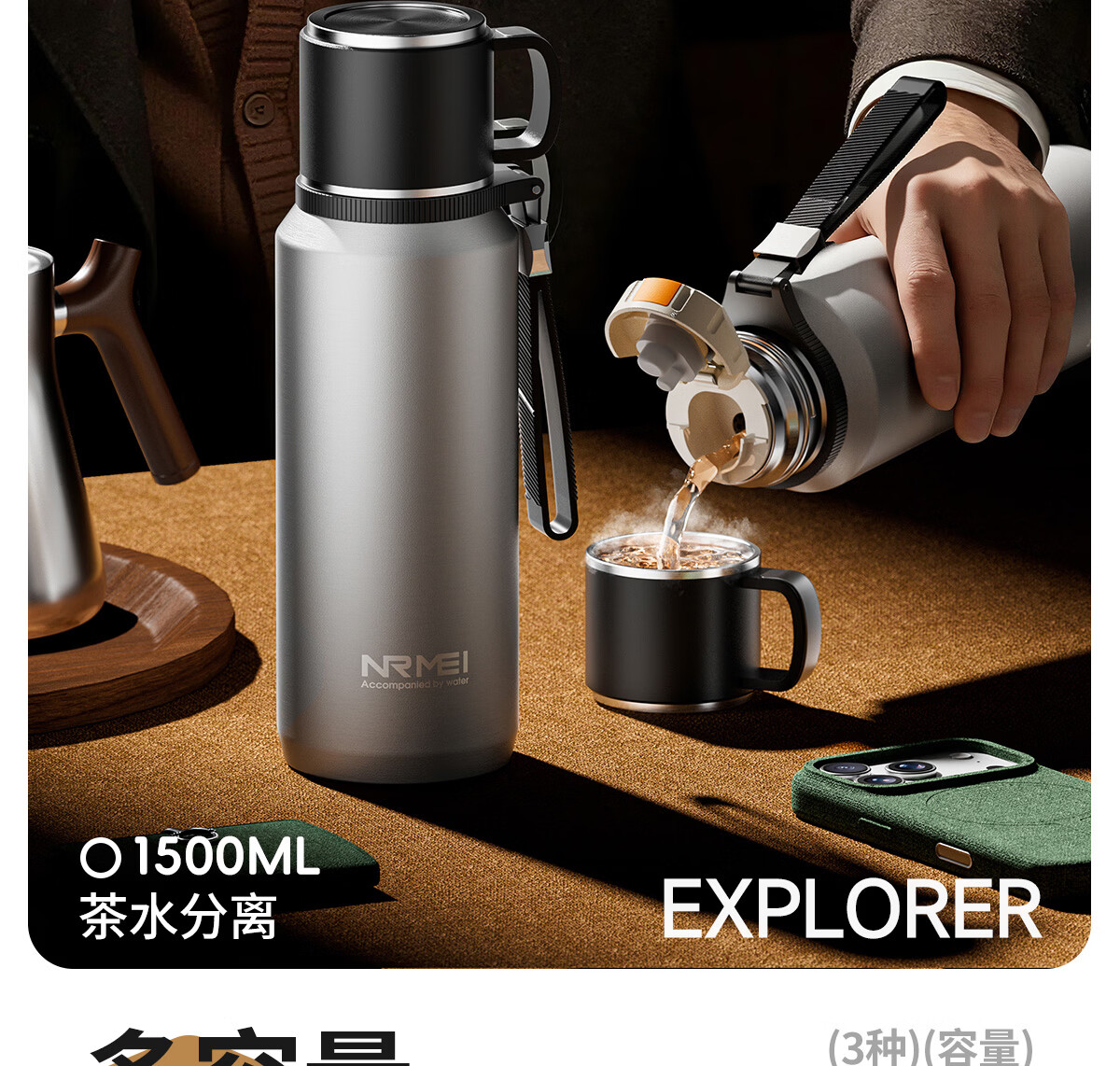 恩尔美(nRMEi)保温杯大容量茶水分离焖泡茶杯316不锈钢男士便携高档水杯新款 【流光银】800毫升/茶水分离
