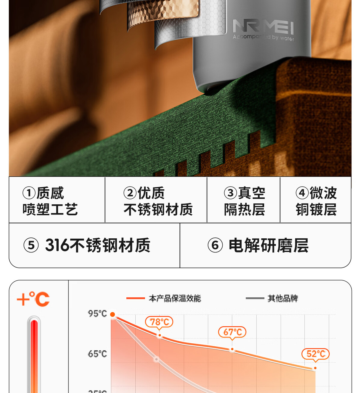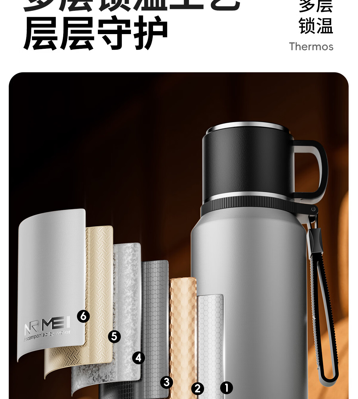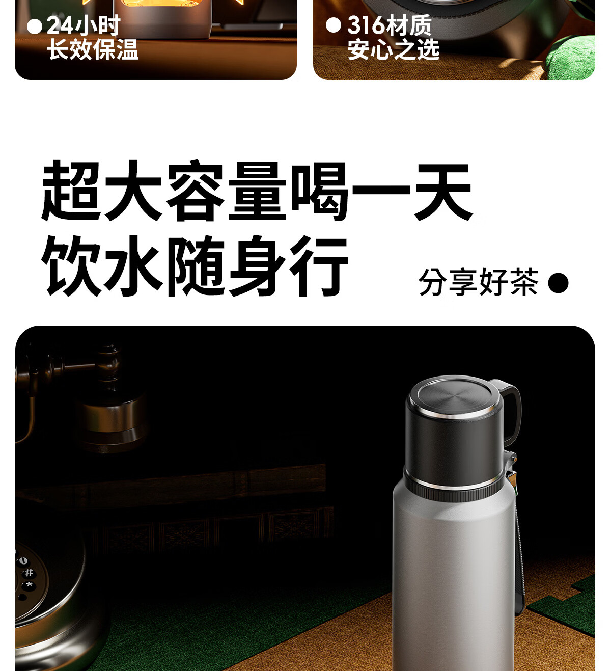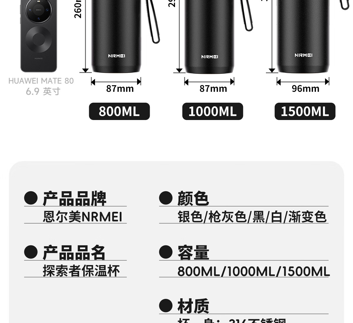 恩尔美(nRMEi)保温杯大容量茶水分离焖泡茶杯316不锈钢男士便携高档水杯新款 【流光银】800毫升/茶水分离