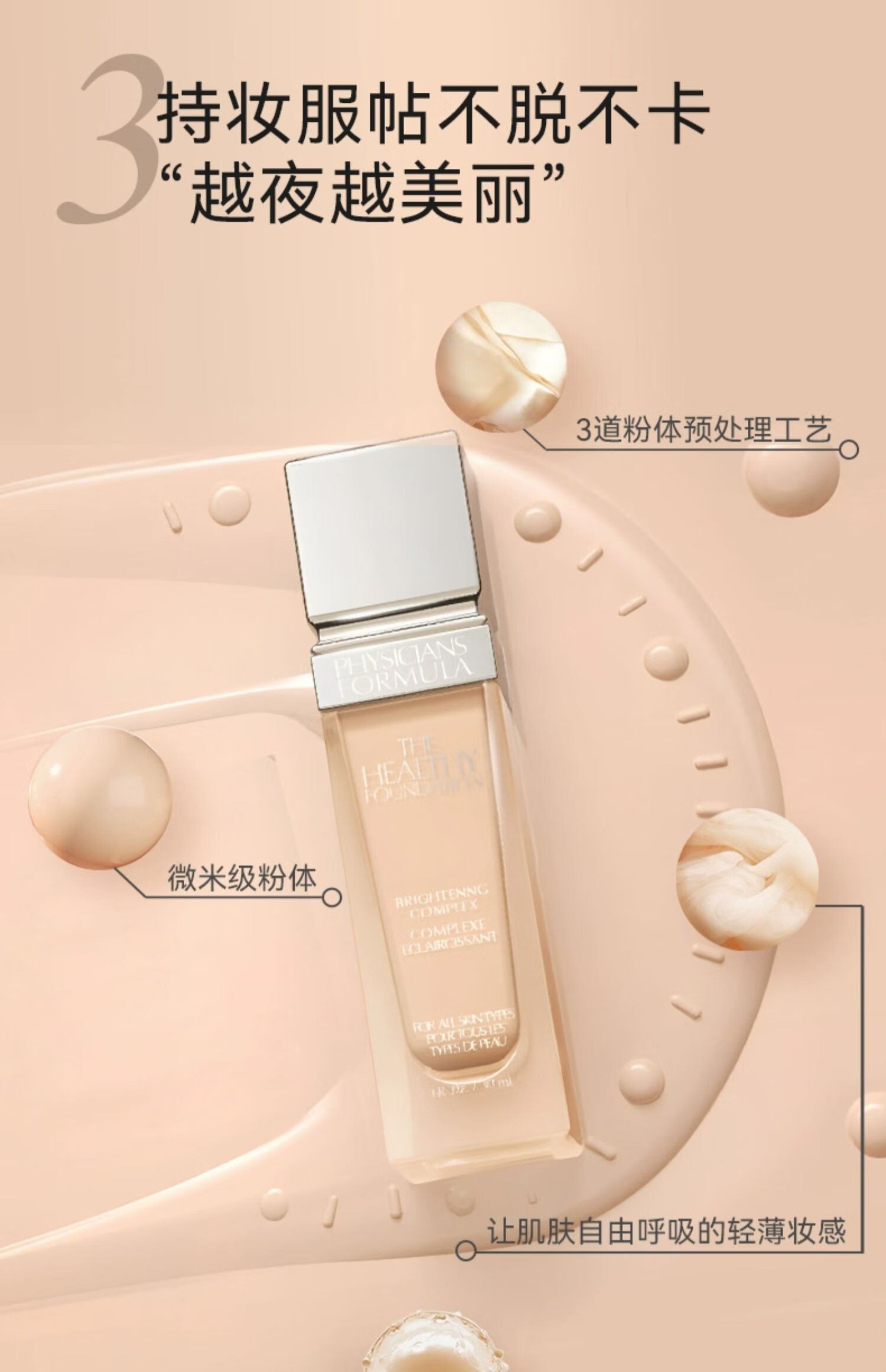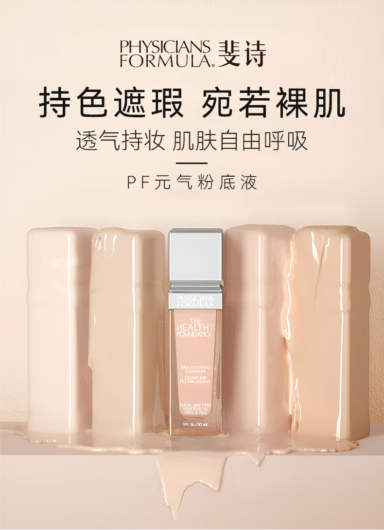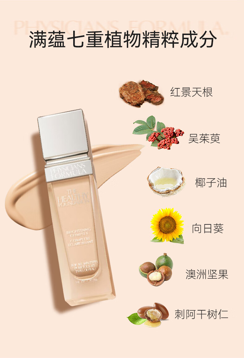 PHYSICIANS FORMULA斐诗元气舒焕粉底液油皮遮瑕持久不易脱妆奶油肌粉底液30ml雾面 元气两瓶装 象牙白