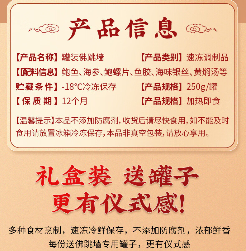 满家乐佛跳墙 花胶鸡加热即食年夜饭半成品菜套餐熟食速冻菜肴方便菜 1.25kg家庭版佛跳墙(8鲍8段参)