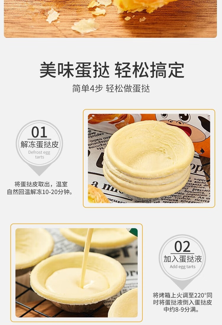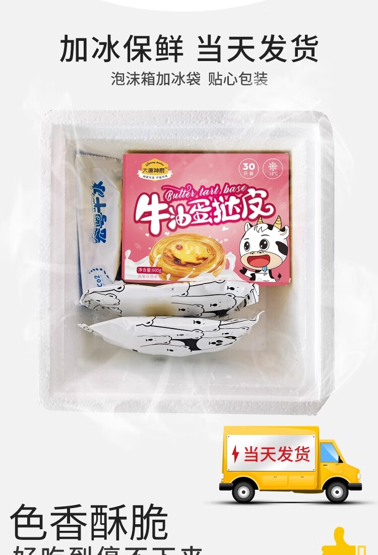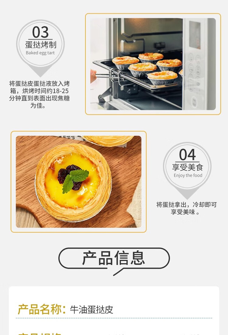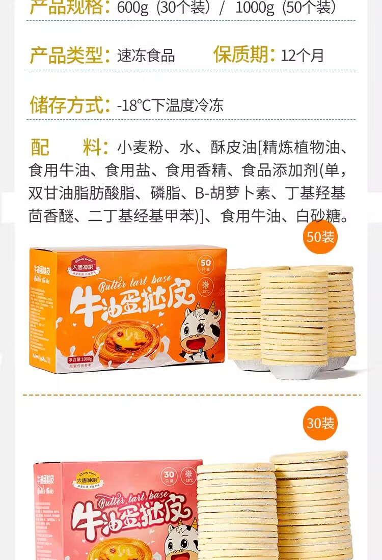 宴遇牛油蛋挞皮空气炸锅半成品家用烘焙起酥蛋挞液套餐组合烘焙原料 大蛋挞皮600g*1盒(内含30个)