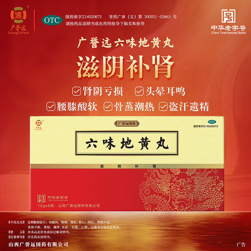 [广誉远]六味地黄丸 12g*6瓶 10盒装 滋阴补肾 头晕耳鸣 腰膝酸软 盗汗遗精 肾阴亏损