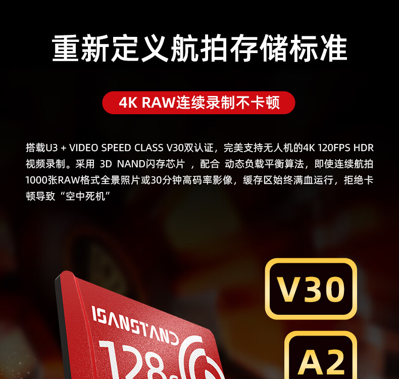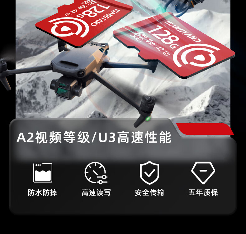 ISANSTAN存储卡适用于大疆无人机内存卡mini3/mavic2/Mini4 Pro/Flip/Avata 2高速V30高清4k microSD卡 【TF128G】无人机内存卡+送卡盒 读卡器