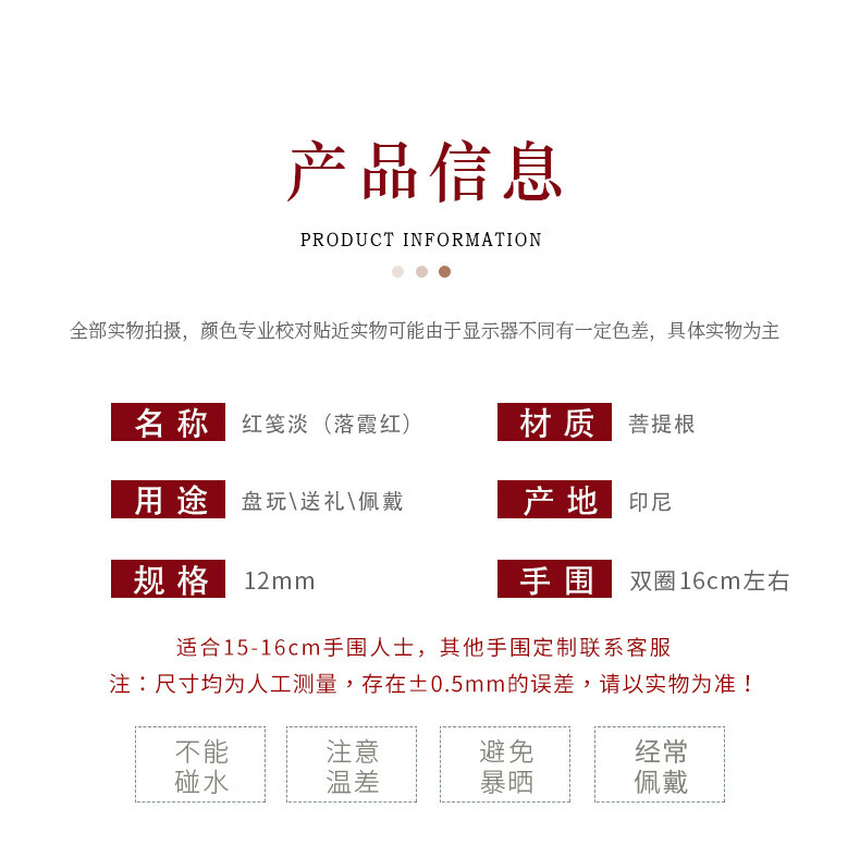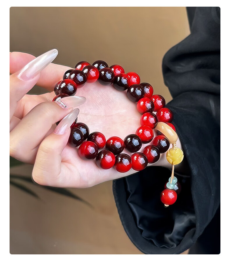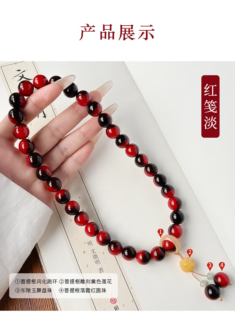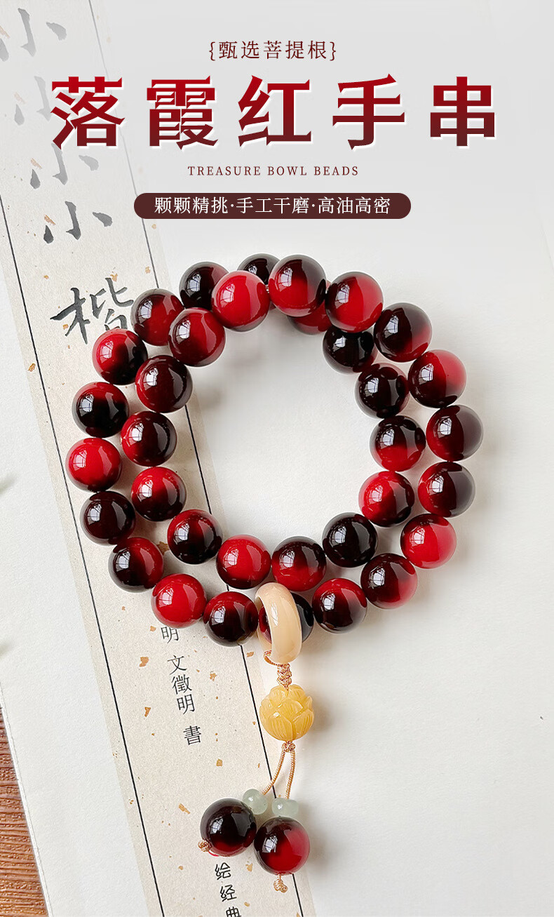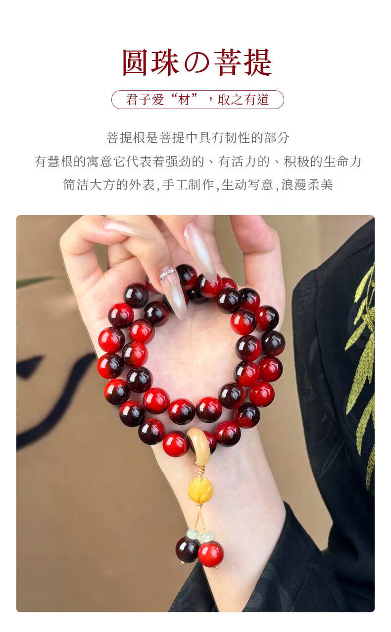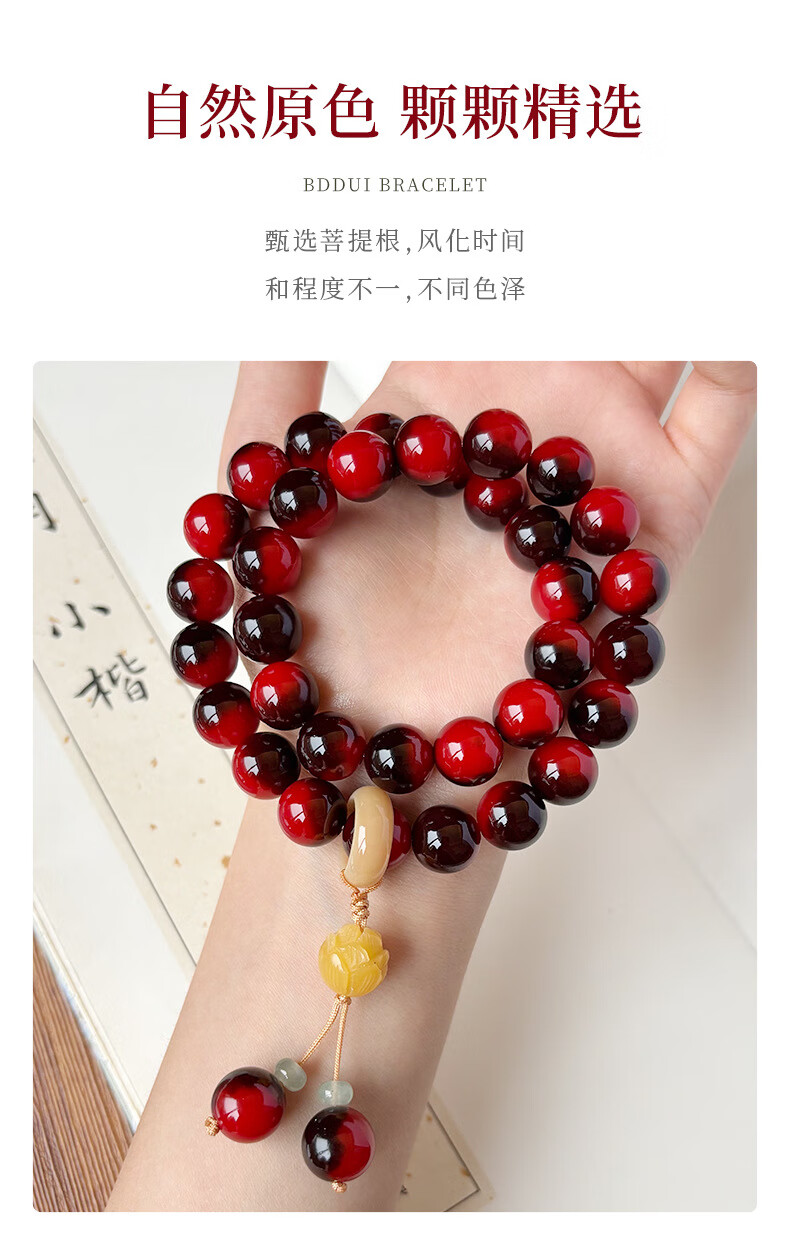DUTRIEUX落霞红新品菩提手串双圈手持男女菩提子佛珠念珠文玩手链 落霞红【单圈】 11-12MM