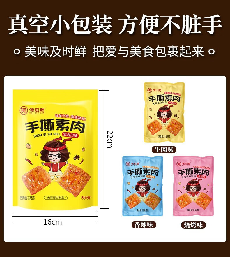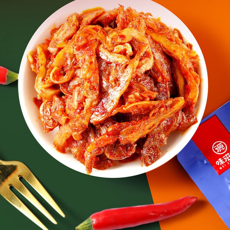味滋源 麻辣小零食脆骨香辣鸭脖子素食金针菇办公室休闲小零食 手撕素肉 128g 1件