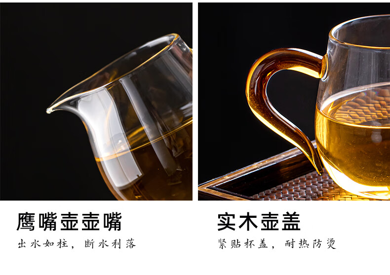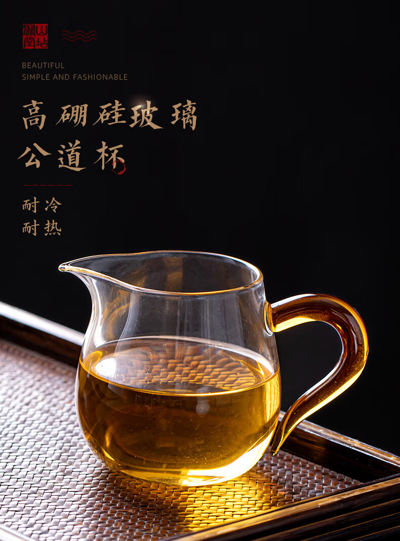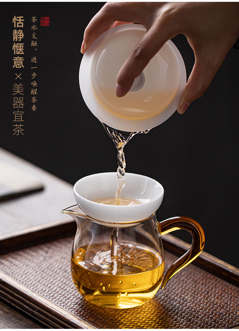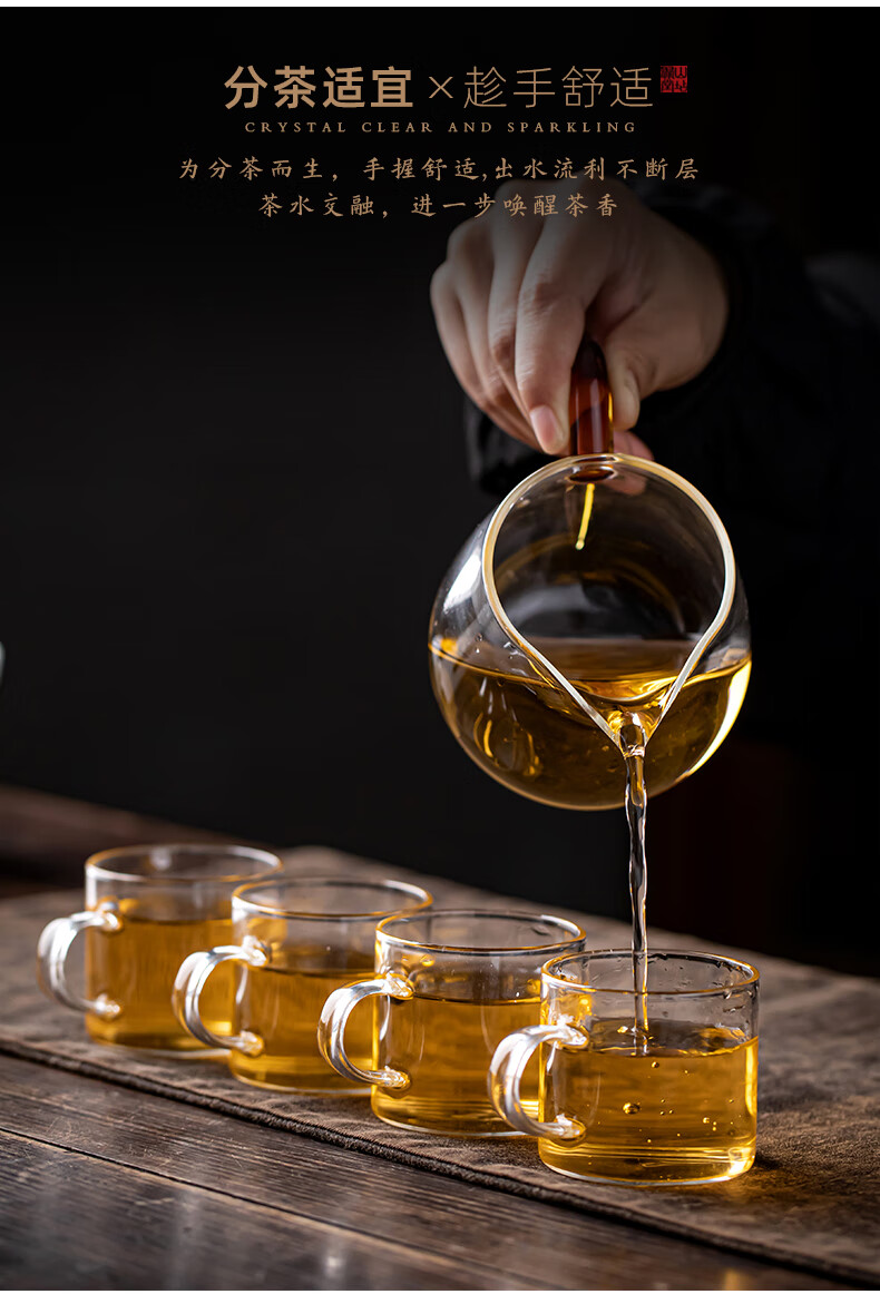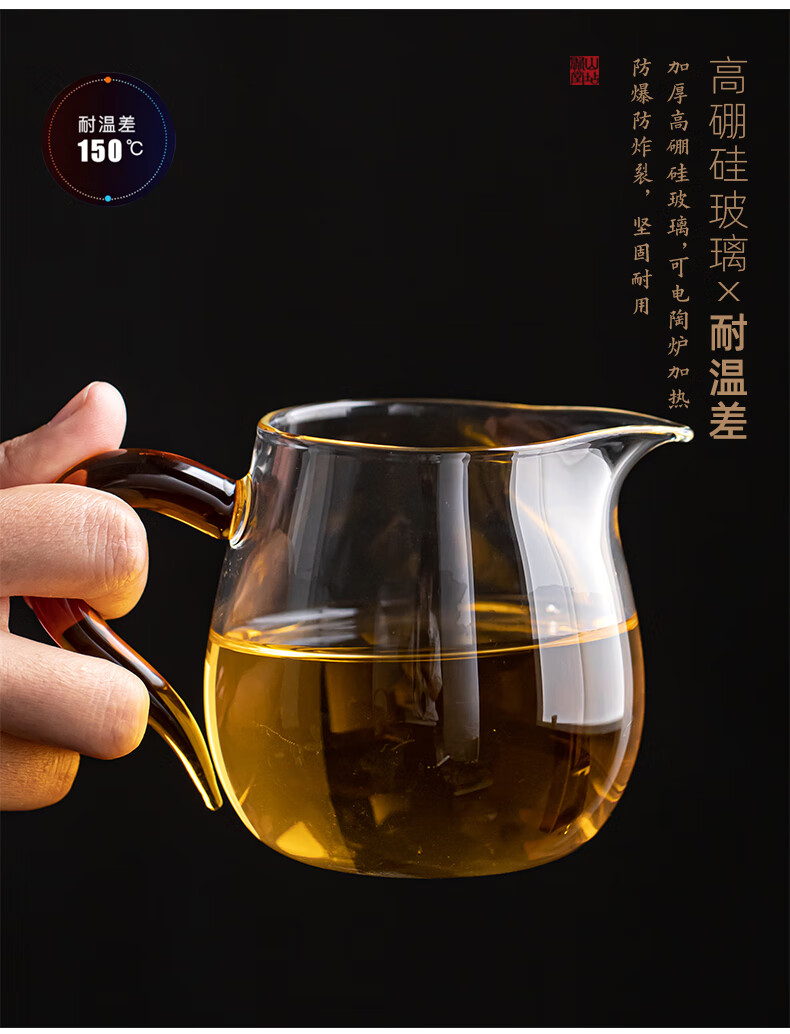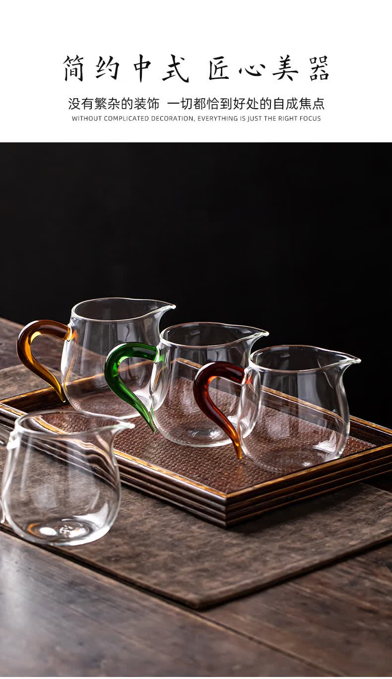 流影日式玻璃公道杯耐热家用茶海分茶器透明公杯加厚高档功夫茶具茶盅 企鹅公道杯-绿把450ml+分体式茶漏套组