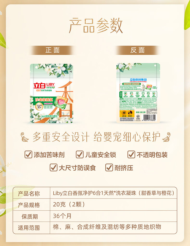 立白天然香氛洗衣凝珠持久留香柔顺护衣去渍 试用装洗衣凝珠1袋