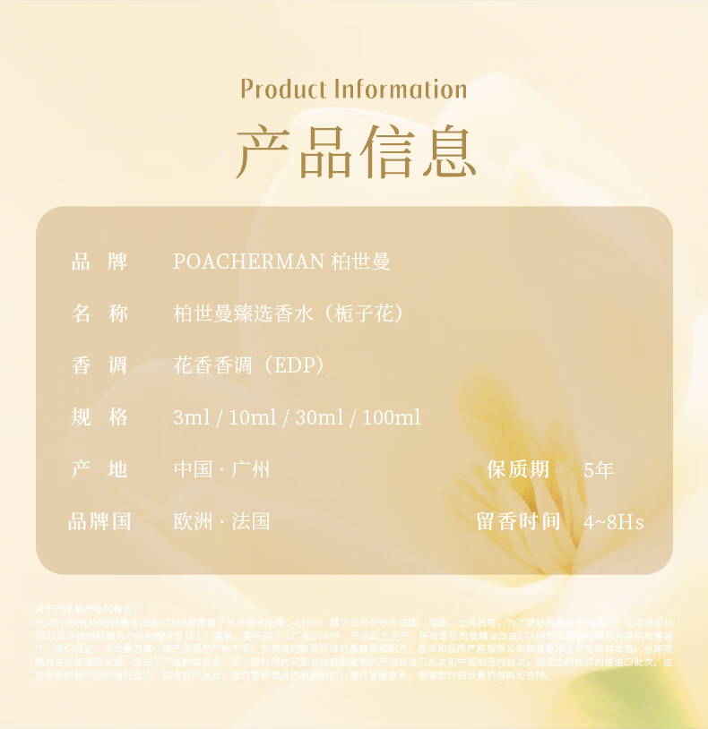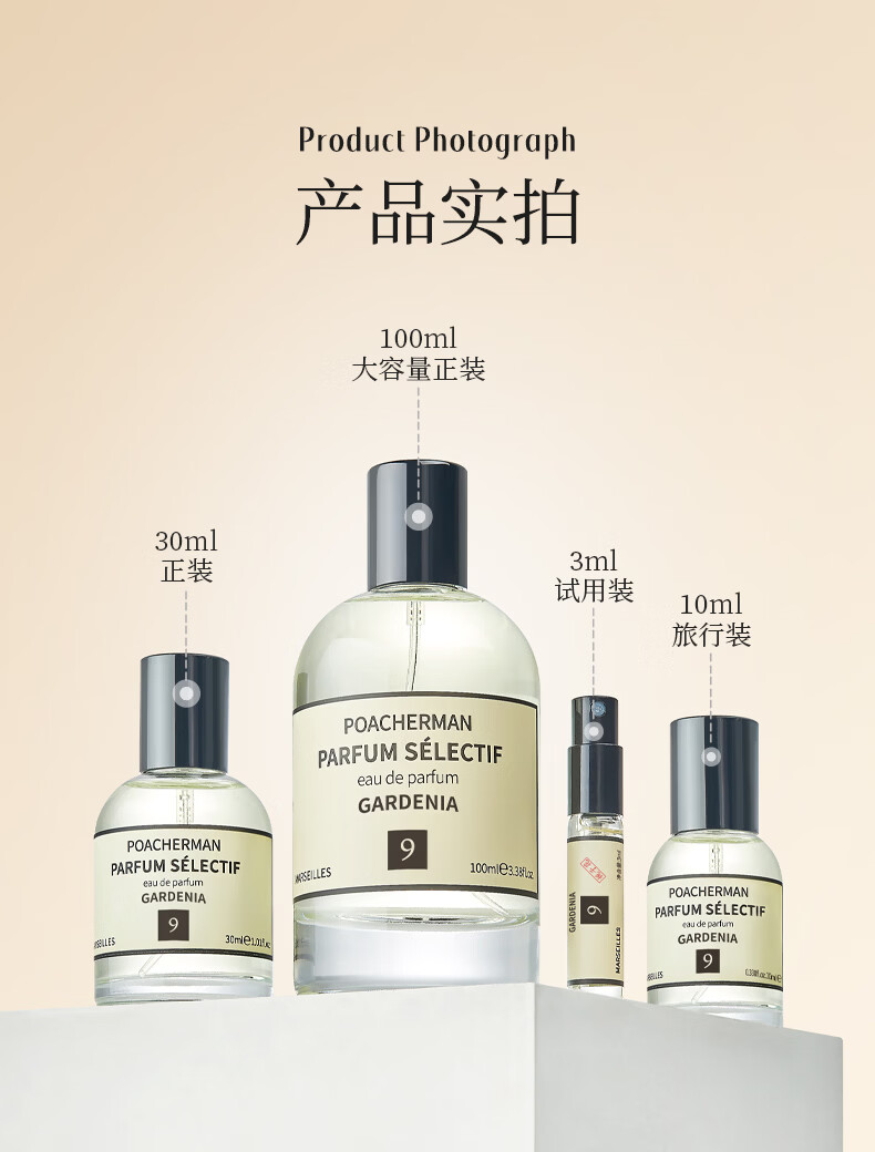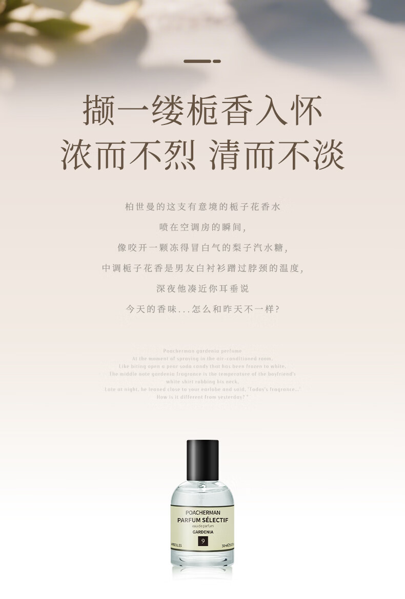 柏世曼(poacherman)9号栀子花香水正品女士天然花香持久香氛甜美淡雅淡香香水小样 9栀子花10ml