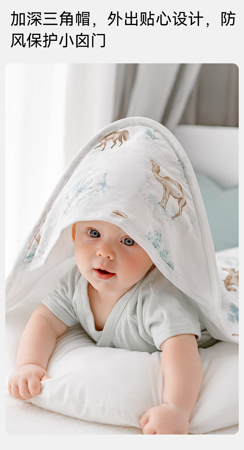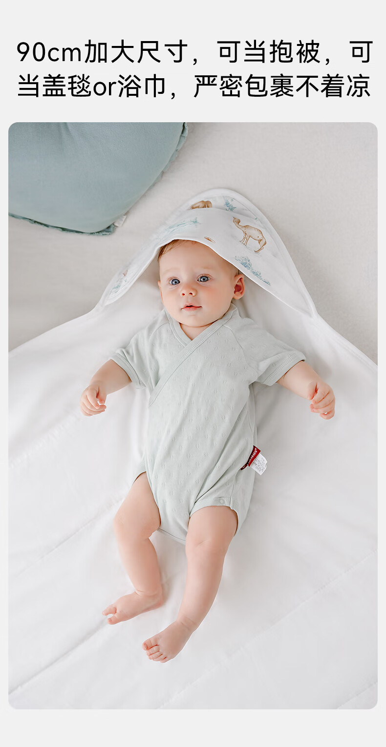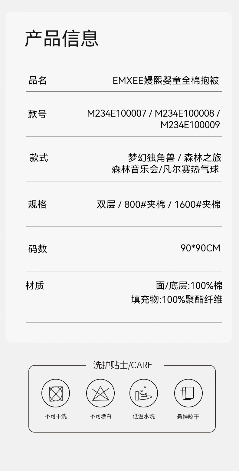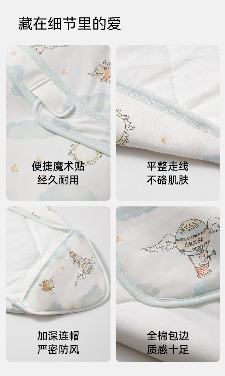 嫚熙(EMXEE)婴儿包被新生儿宝宝抱被四季纯棉防惊跳产房包单 【四季款】秋奢童话 室温18-26℃ 90×90cm
