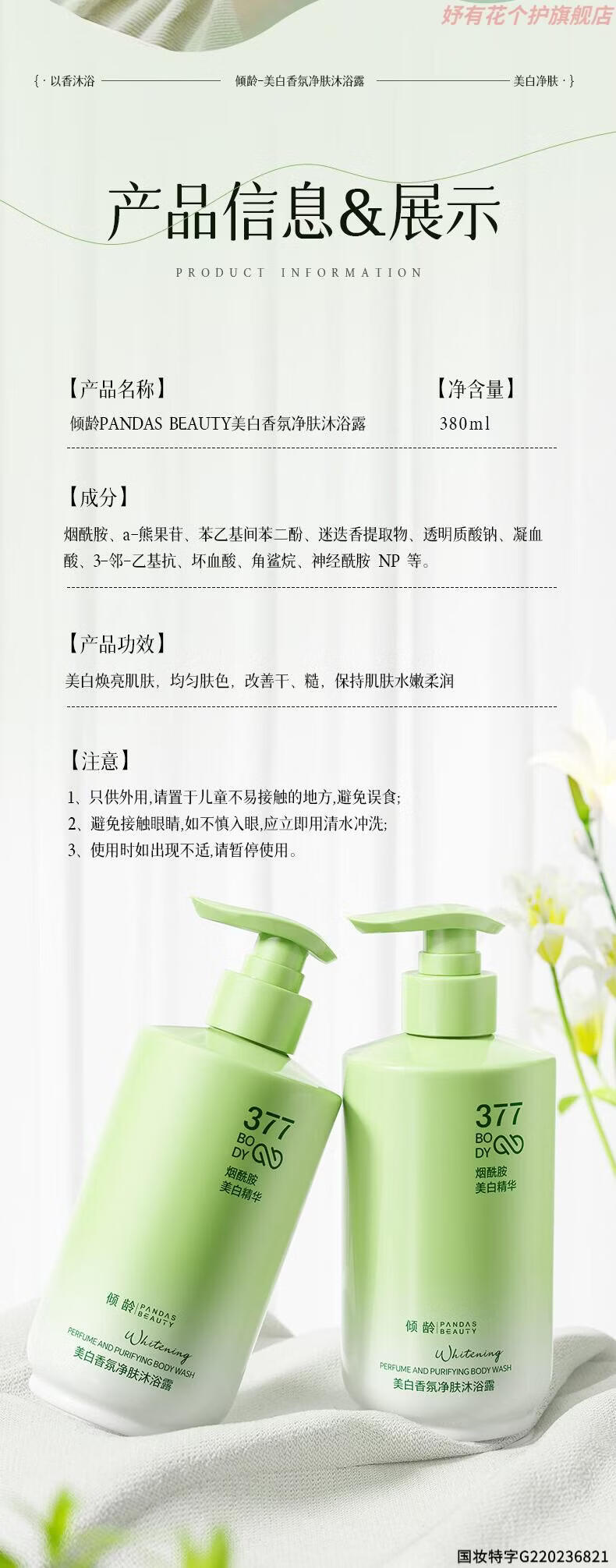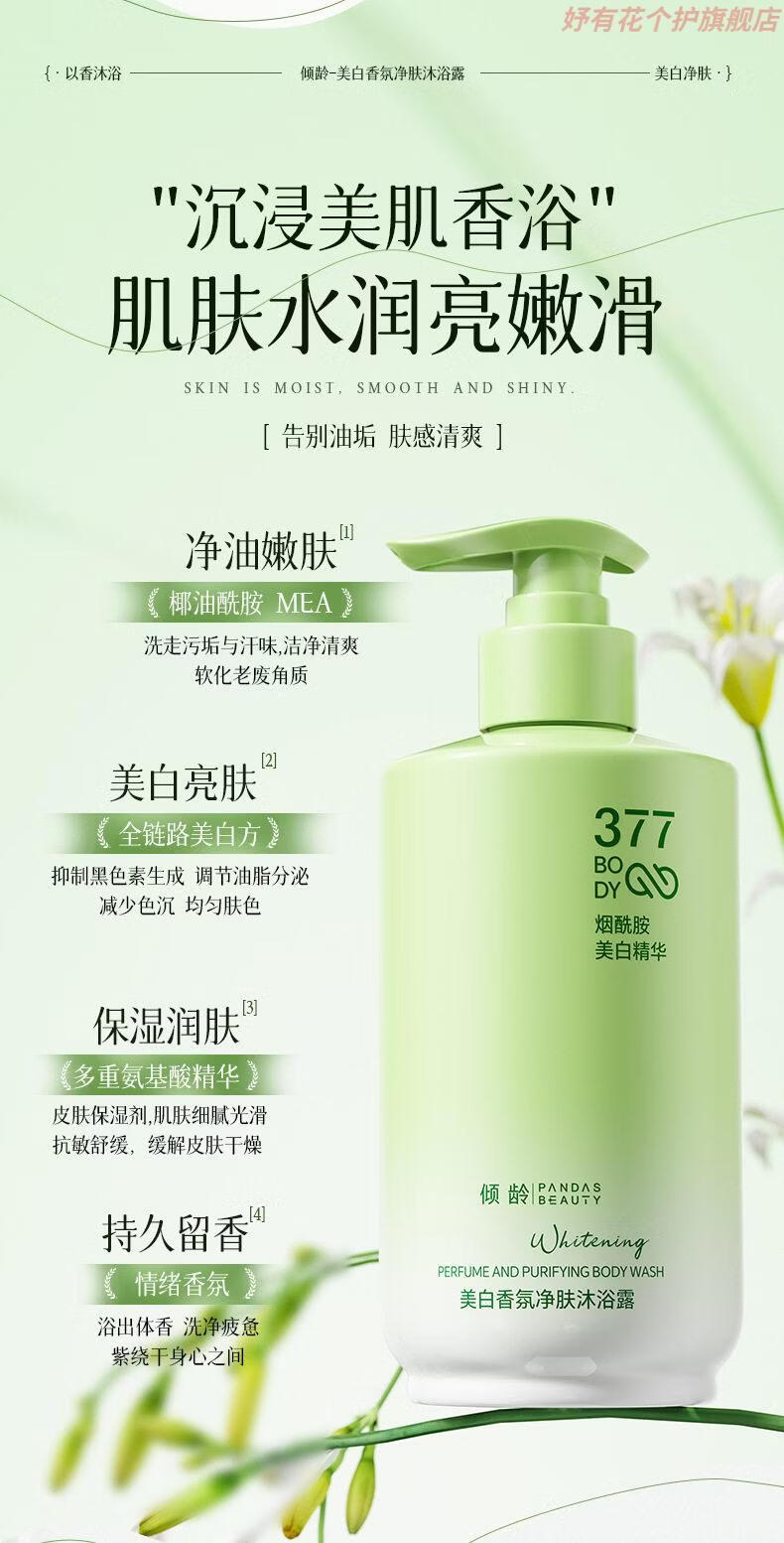 熏姿颜肌临沐浴露377烟酰胺美白香氛净肤持久留香花香保湿润肤深层清洁 5瓶 囤货装 官方自售