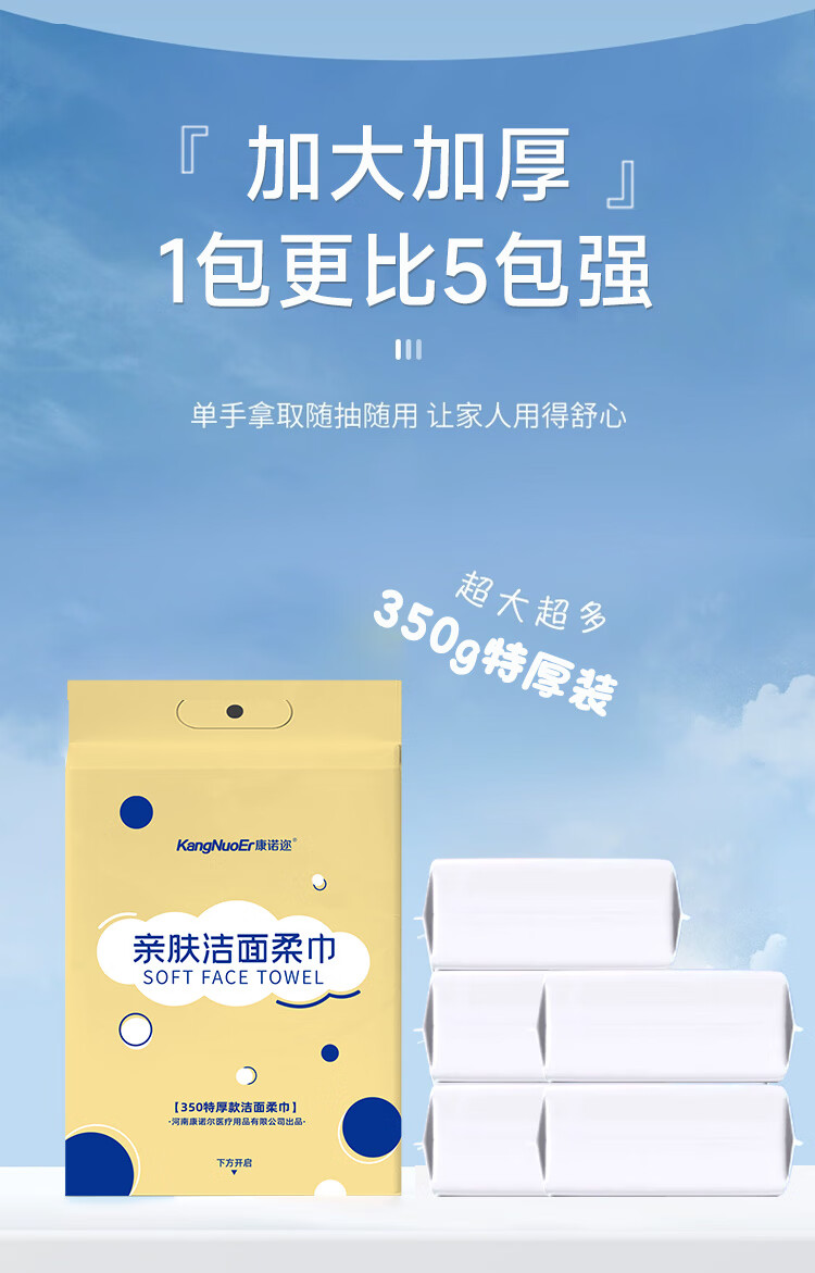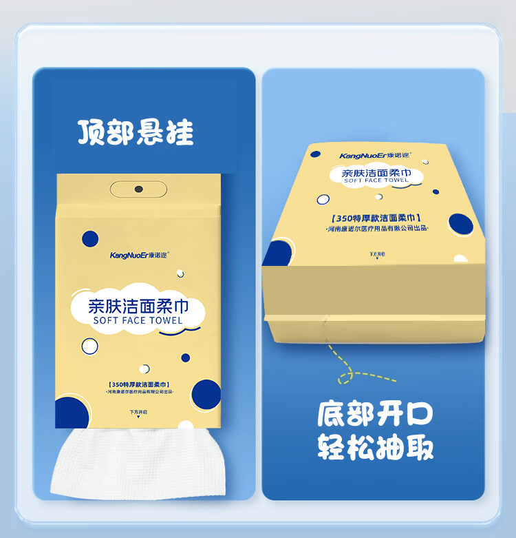 康诺迩棉柔巾悬挂式一次性洗脸巾干湿两用加厚婴童双面纹棉柔擦脸巾 120抽*2提【波波兔新春款】