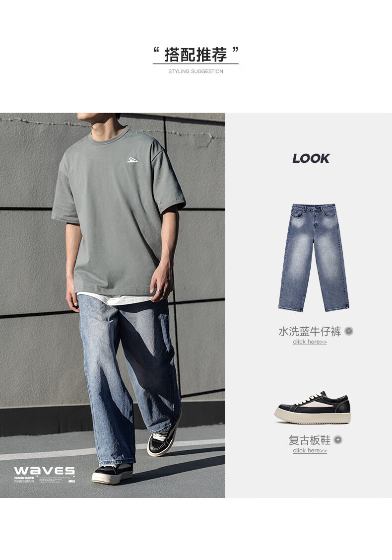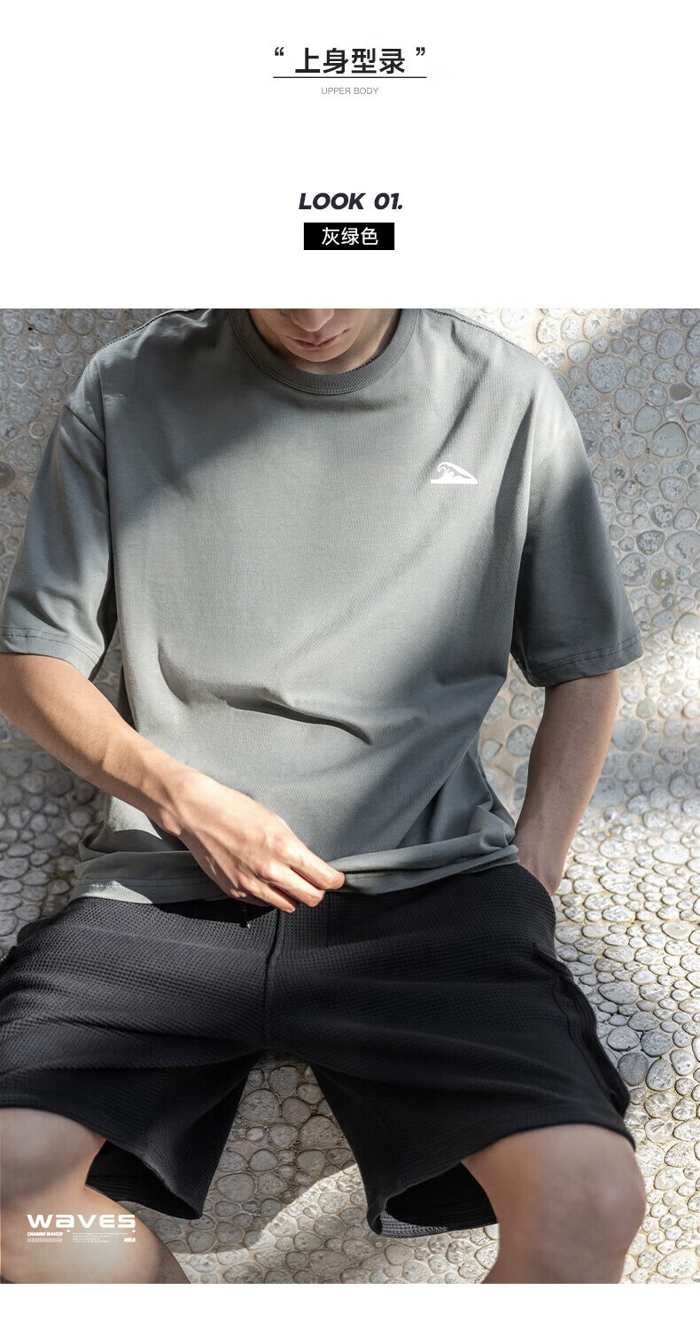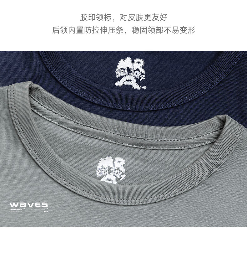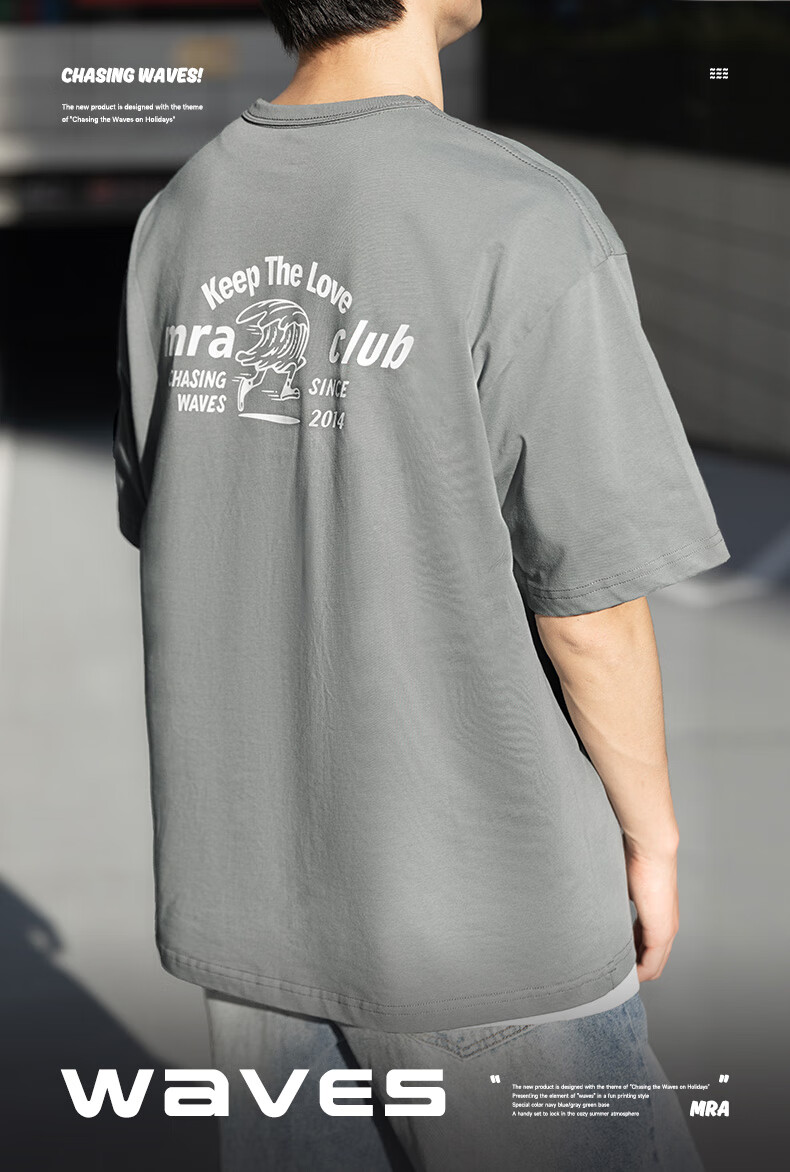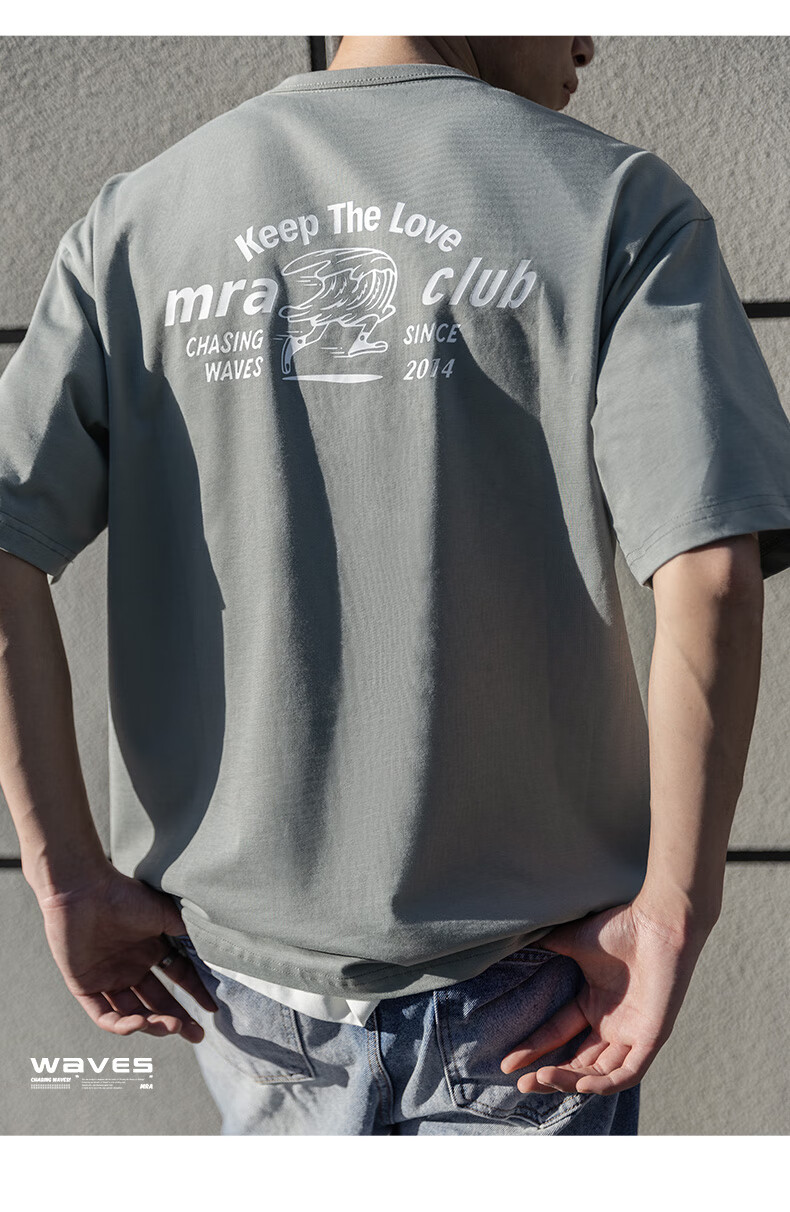 Mr.A美式海浪印花纯棉t恤2025新款宽松半袖纯色复古短袖男夏MRA男装 灰绿色 2XL
