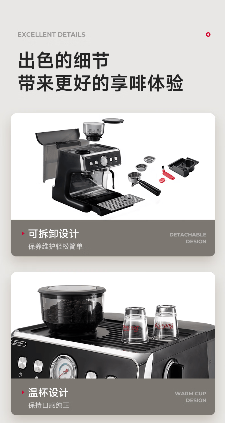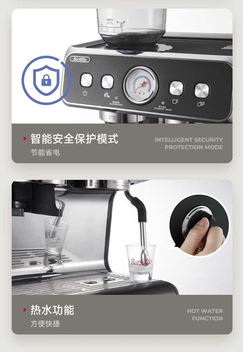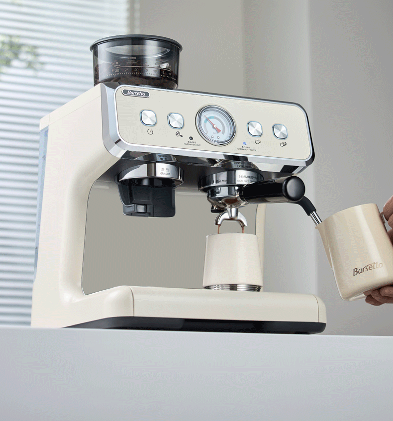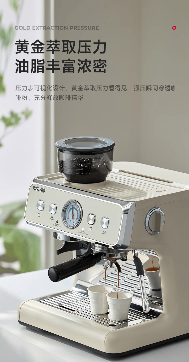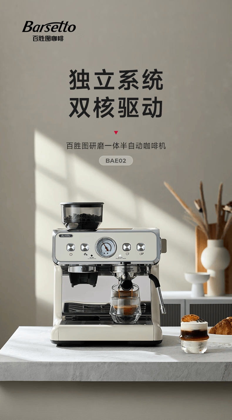 Barsetto意大利百胜图BAE02二代研磨咖啡机双锅炉双泵意式咖啡机半自动咖啡机带现研磨豆一体奶茶店小商用 BAE02(白色) 经济型震动泵
