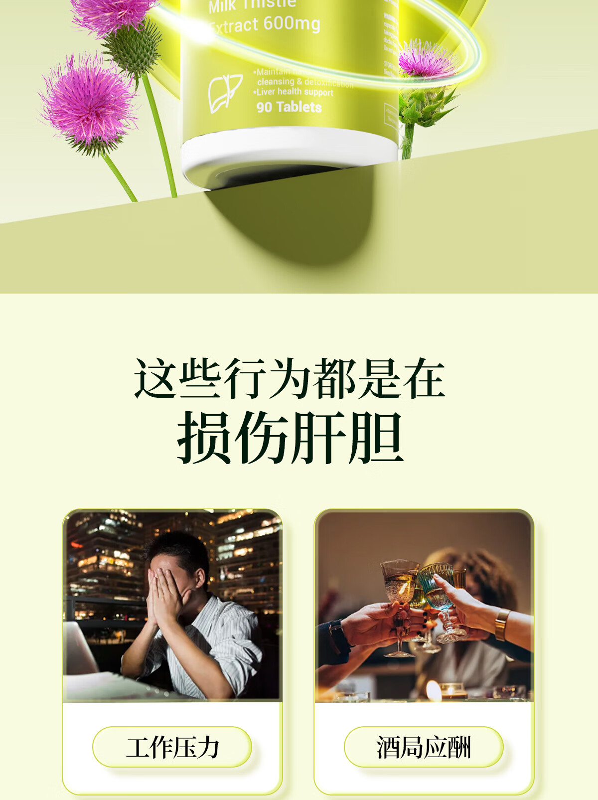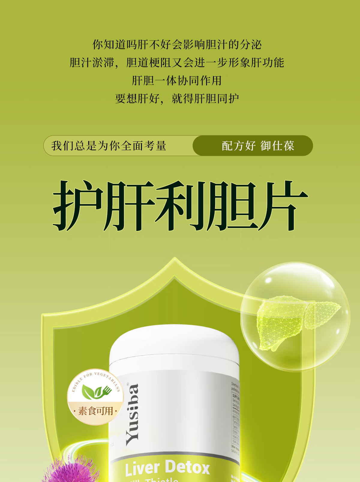 Yusiba御仕葆水飞蓟护肝片600mg90粒奶蓟净肝姜黄去脂解酒应酬黄脸熬夜 【姜黄+牛磺酸/净肝去脂】*1瓶