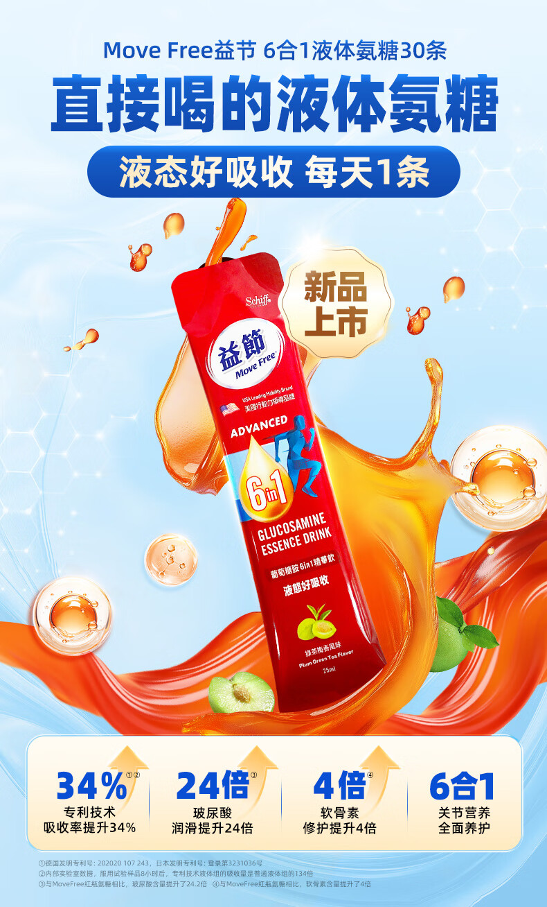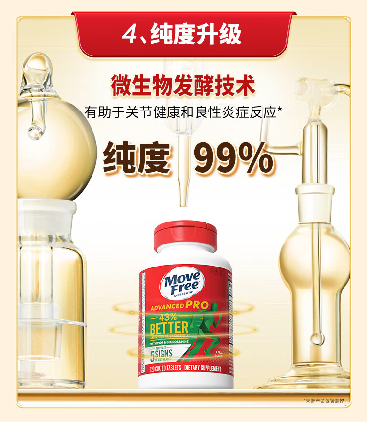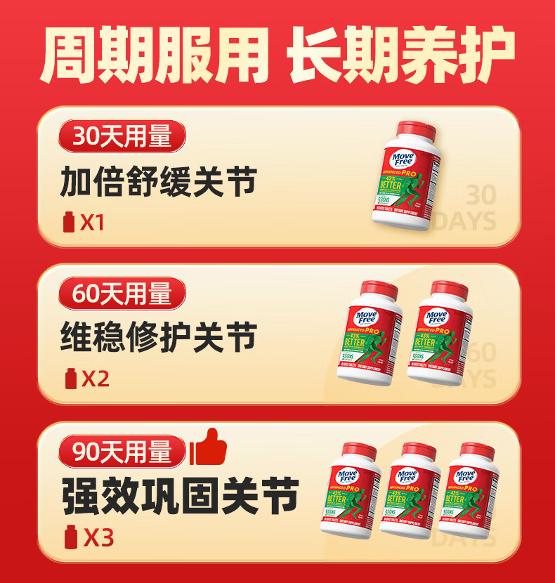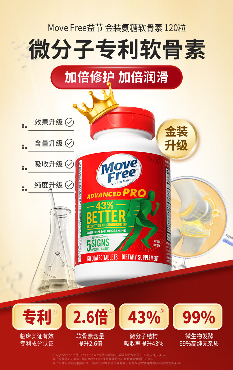 益节(Move Free)金装氨糖软骨素绿瓶升级版120 维骨力 美国原装进口 中老年营养品 【加倍舒缓】升级金装氨糖 120粒*1瓶