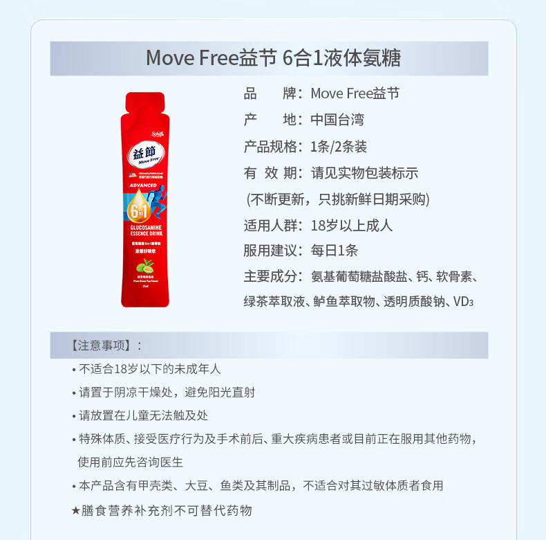 Move Free益节女士男士氨糖软骨素120粒 美国原装进口维骨力 成年中老年人 【女士氨糖】7效合1 活力养颜- 120粒*1瓶
