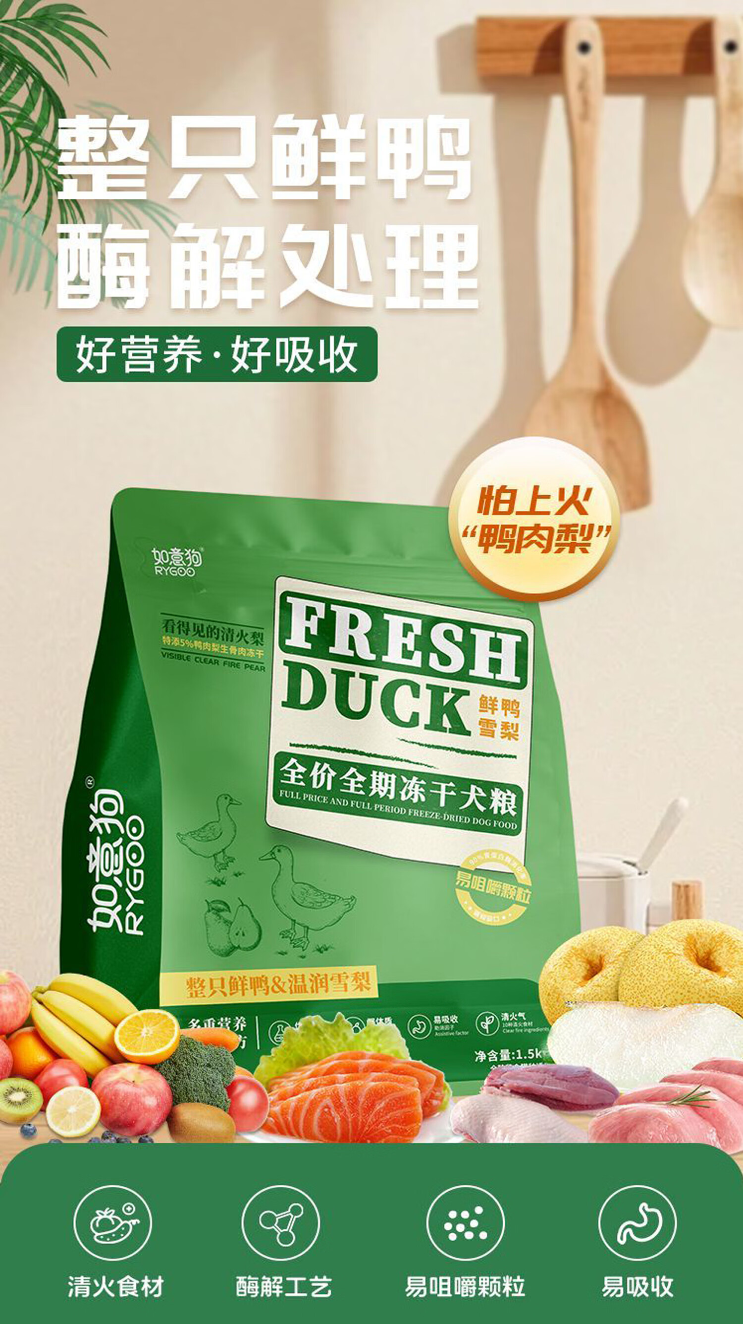 如意狗鸭肉梨狗粮中小型犬比熊雪纳瑞博美专用全价全阶段犬粮 1.5kg 【酶解处理】1.5kg*1袋(三斤)