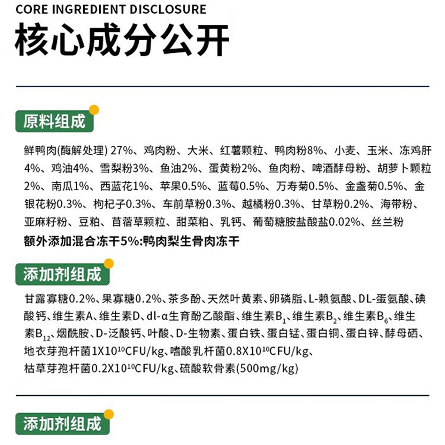 耐吉斯鲜肉烘焙狗粮1.5kg泪痕管理100%真鲜肉鸭肉梨狗粮成犬幼犬犬粮3斤