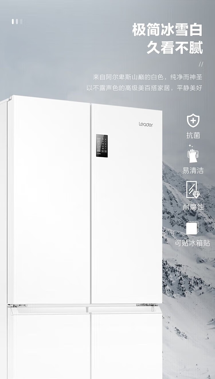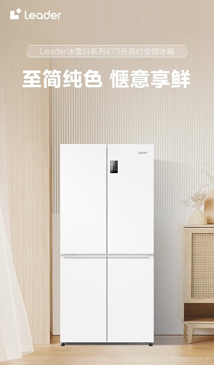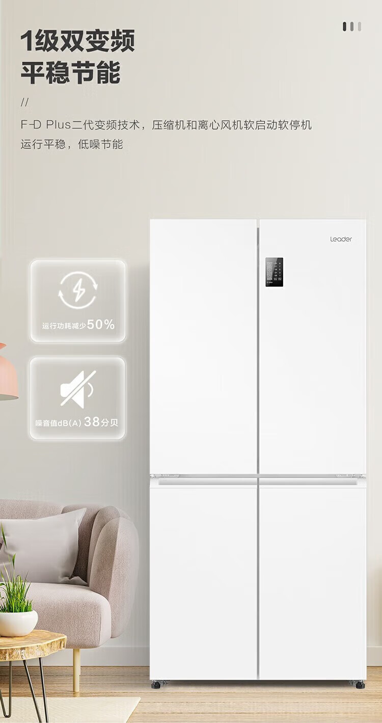 海尔出品统帅冰箱473升十字对开门四门一级能效双变频双循环风冷无霜大容量家用黑金净化白色电冰箱 【leader】一级能效+黑金净化+母婴三挡变温