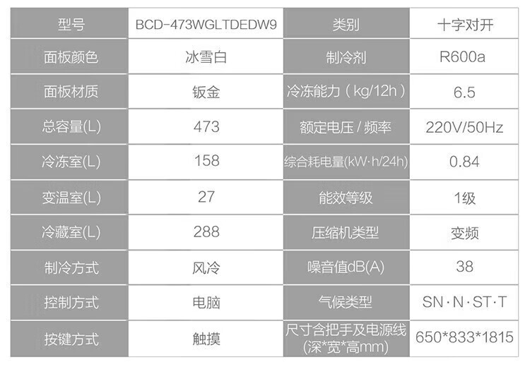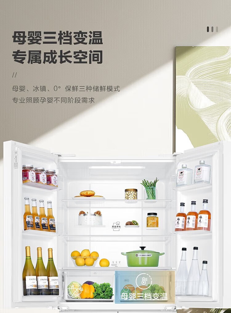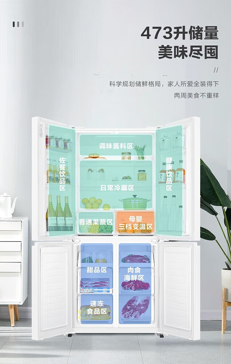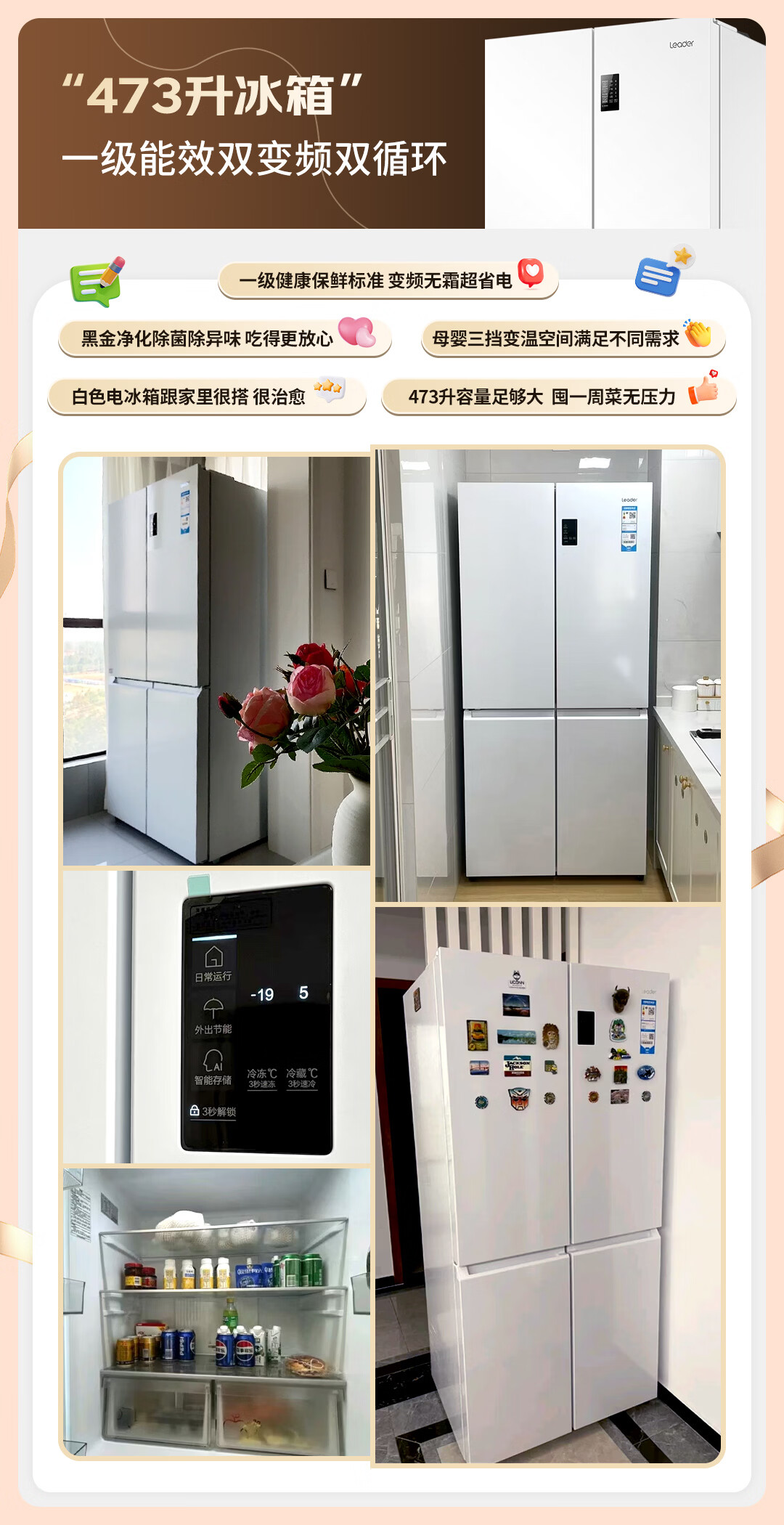 海尔出品统帅冰箱473升十字对开门四门一级能效双变频双循环风冷无霜大容量家用黑金净化白色电冰箱 【leader】一级能效+黑金净化+母婴三挡变温